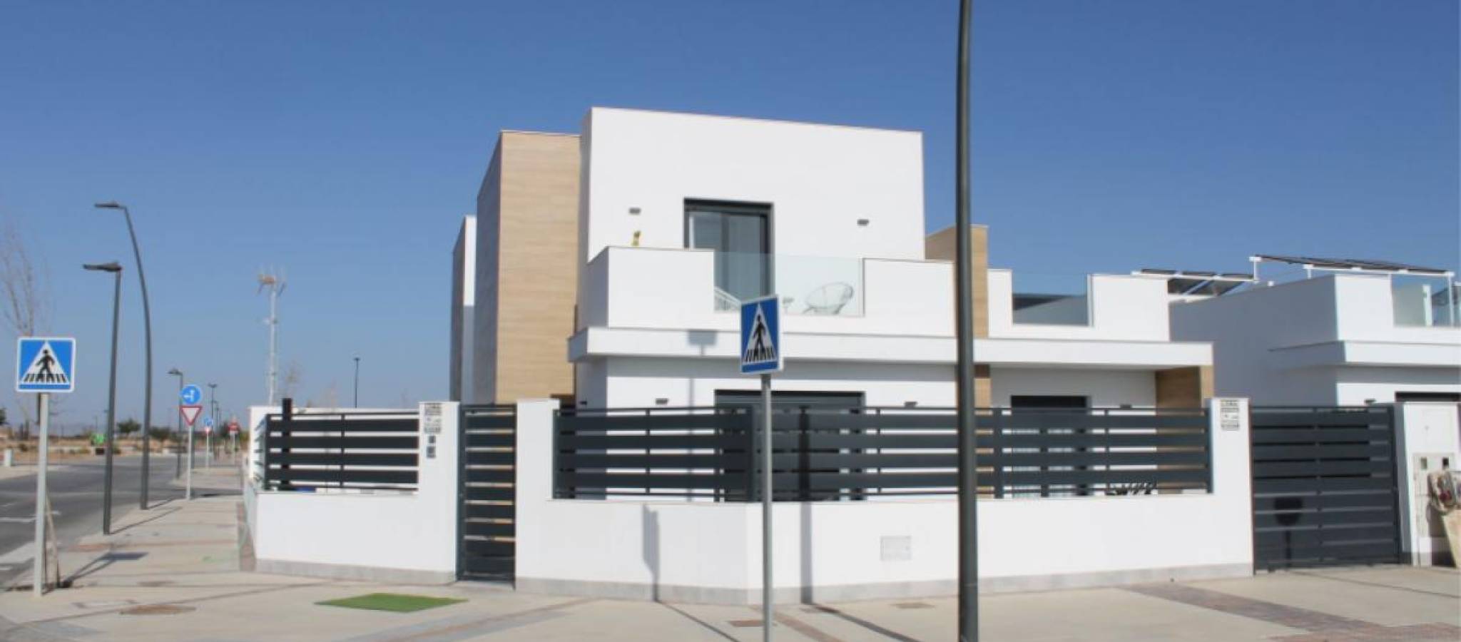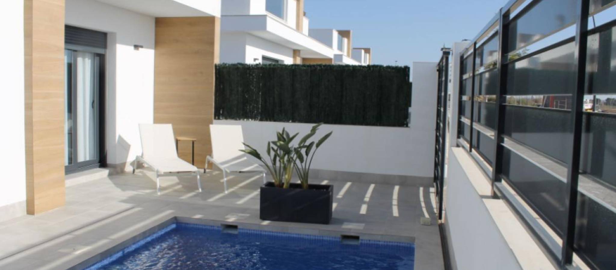 Oppdag et eksepsjonelt boliganlegg med villaer som gir maksimal komfort og moderne stil. Med alternativer fra 2 til 3 soverom, har disse elegante boligene fullt utstyrte bad og et moderne design som kombinerer et åpent kjøkken, stue og spisestue i en harmonisk enhet. Beliggende i et privilegert område i Torre Pacheco, tilbyr disse villaene privatliv innenfor et lukket kompleks med kontrollert tilgang. Bare minutter fra strendene, omgitt av tjenester, grønne områder, sportsfasiliteter og flere golfbaner, gir de roen og bekvemmeligheten du leter etter. Hver villa er bygget med de høyeste kvalitetsstandardene og inkluderer: ✔ Privat basseng ✔ Solarium med sommerkjøkken ✔ Utstyrt kjøkken ✔ LED-belysning i hele boligen og utendørsområdene ✔ Moderne bad ✔ Pre-installasjon av klimaanlegg ✔ Privat parkeringsplass på tomten. Med en prisklasse fra 299 900 € til 404 900 €, representerer disse under bygging villaene en unik mulighet. Den moderne konstruksjonen reflekteres i detaljer som porselenfliser, PVC-vinduer med termisk brudd, og vannoppvarmingssystem med varmepumpe. I tillegg sikrer en monolagsfasade et attraktivt og holdbart design. Ved å bo i denne livlige byen, vil du nyte en middelhavsstil preget av mange muligheter. Med fritids-, kultur- og underholdningstilbud på alle kanter, vil lokaliteten til disse eiendommene tillate deg å dra nytte av alt Torre Pacheco har å tilby. Ikke gå glipp av muligheten til å besøke dette fantastiske prosjektet og oppdage ditt drømmehus. Kontakt oss for mer informasjon og for å avtale en visning. For presentasjoner og mer informasjon, følg følgende lenke: presentasjoner URL.