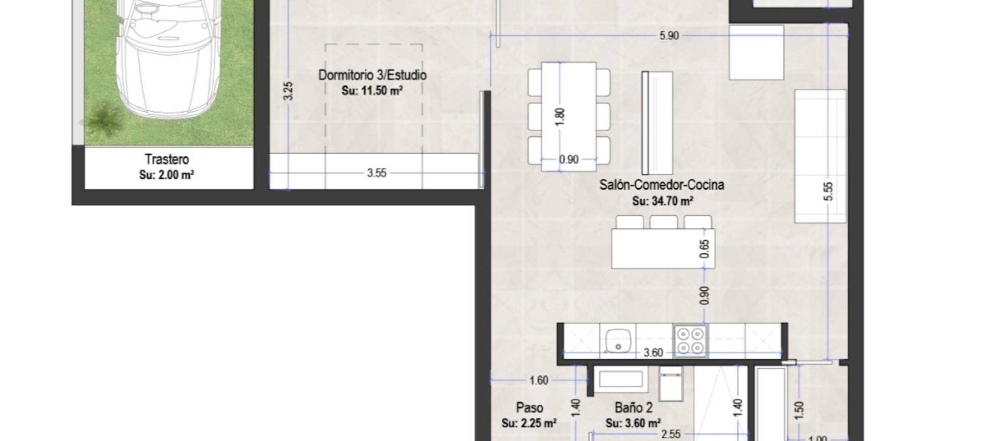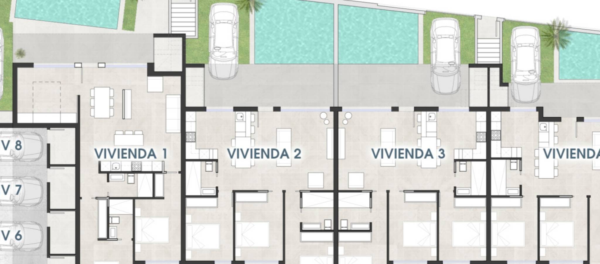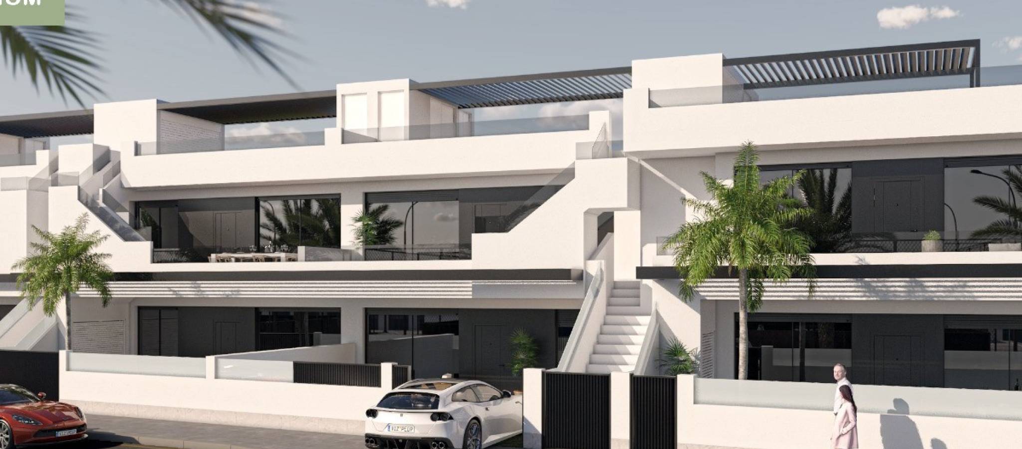 Oppdag moderne duplexer med tre soverom og to bad i San Pedro del Pinatar. Disse nye boligene tilbyr alternativer med hage i første etasje eller terrasser og solarium med utekjøkken i toppetasjen. Eiendommene lover komfort og eleganse, ideelle for å nyte et eksklusivt opphold. Designet med et konsept av åpen stue mot kjøkkenet, tilbyr disse boligene rom og stil. Duplexene i første etasje inkluderer store terrasser med privat svømmebasseng, parkeringsplass og bod innenfor tomten. Enhetene i toppetasjen har en privat balkong og en takterrasse med privat svømmebasseng og toalett, i tillegg til parkering og bod i komplekset. De øvre duplexene er utstyrt med et komplett utekjøkken, elektrisk grill, dusj med varmt vann og en elegant metallpergola. Dette designet gir en ekstra flate som kan nytes året rundt, med skygge i de varme sommermånedene. Plassert ved Mar Menor av Costa Cálida i Murcia, er San Pedro del Pinatar en sjarmerende by kjent for sin fiskerihavn og nærhet til den spektakulære lagunen La Manga. Tilbyr mange tjenester, inkludert barer, restauranter og shoppingområder. Denne destinasjonen er kjent for sine vakre strender, som Playa de la Torre Derribada og Playa de Llana, med diverse kulinariske alternativer og rikelig med parkering. Bare 46 km fra Murcia og 87 km fra Alicante, San Pedro del Pinatar er det perfekte stedet for å nyte den middelhavsstranda i et dynamisk og praktisk miljø. Eiendommene presenteres i et prisspenn fra 409 000 € til 489 000 €, med en boareal på 87 m² til 249 m².