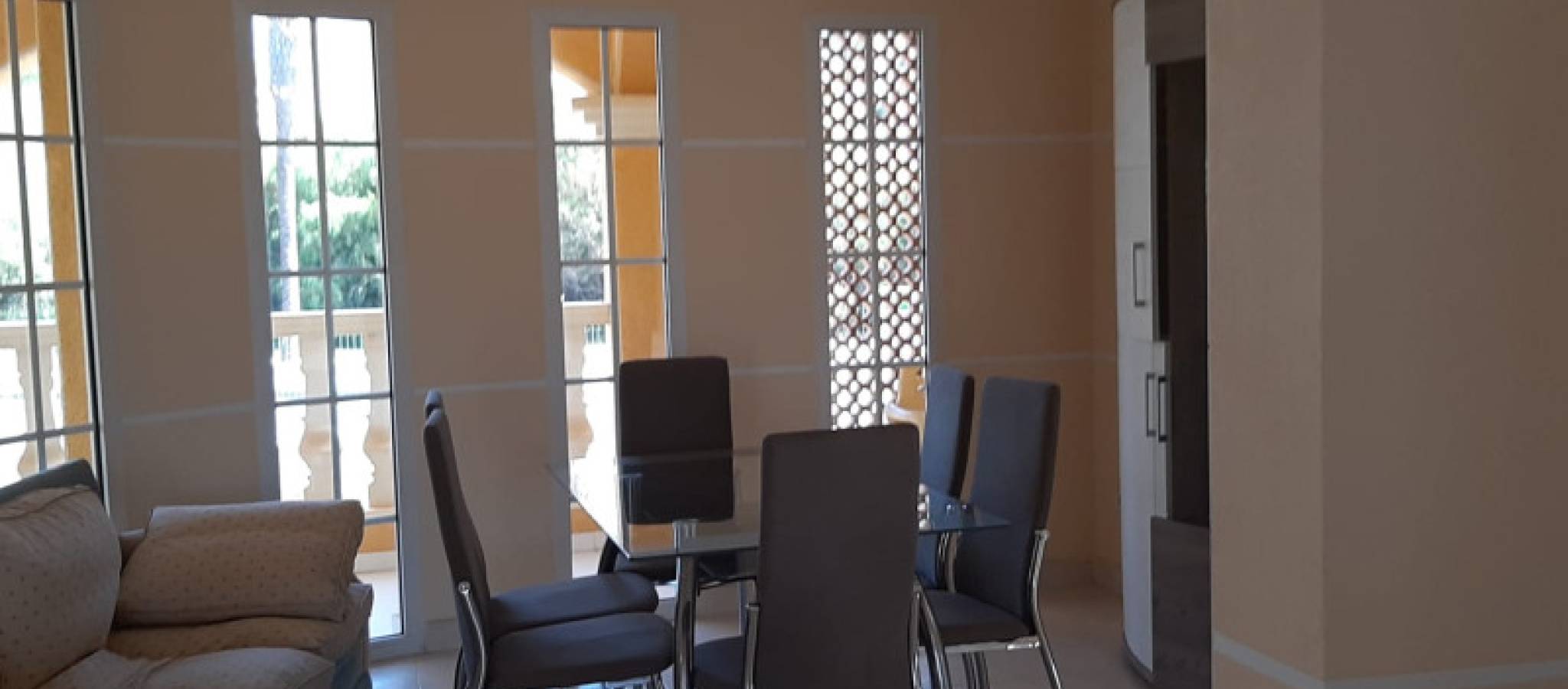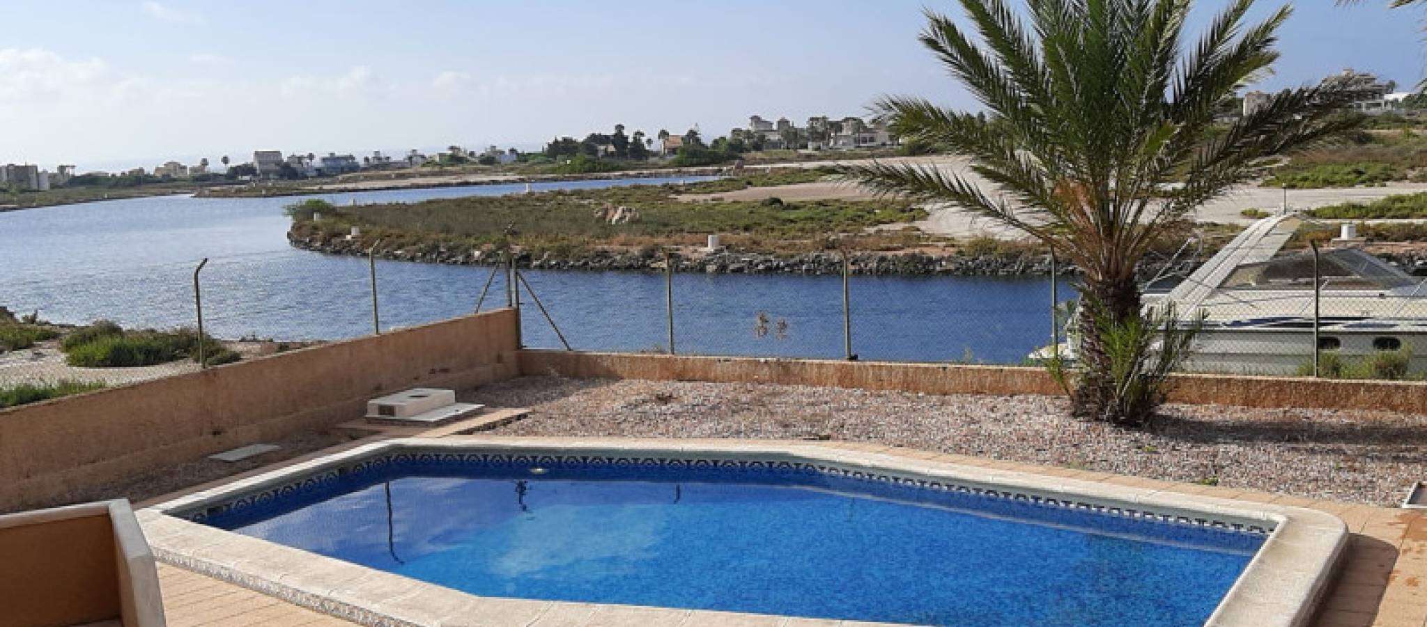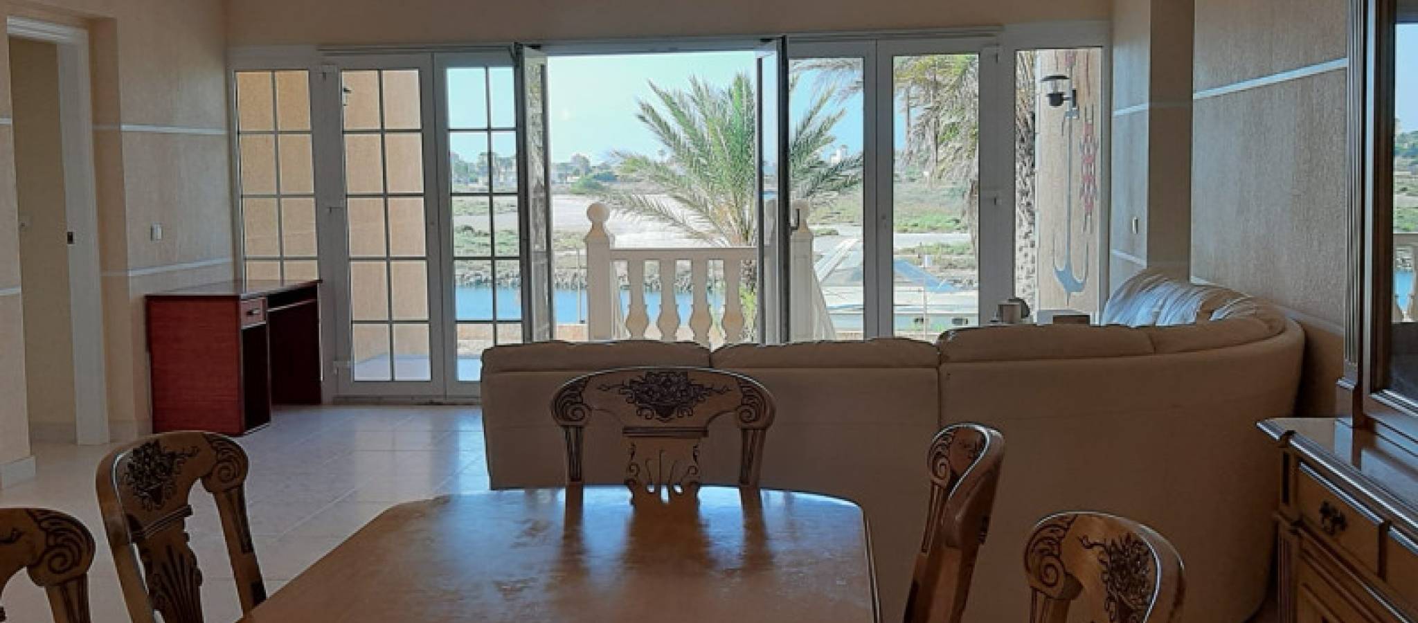 Villaen tilbyr et privilegert miljø mellom to hav i Murcia, og blir en luksusperle i regionen. Beliggende i La Manga Del Mar Menor gir denne boligen imponerende utsikt og ligger kun et steinkast fra havet, ideell for de som søker ro og skjønnhet i omgivelsene. I et av de mest eksklusive områdene har eiendommen en privat båtplass som tillater eiere å nyte navigasjon i kanaler designet for rekreasjon. Denne nye konstruksjonen skiller seg ut med sin overlegne kvalitet på overflater, noe som gir en følelse av eksklusivitet og komfort. Med et areal på 465 m² tilbyr eiendommen en plettfri arkitektonisk design. Første etasje har tre romslige soverom og to bad, sammen med en stue med peis, et separat spiserom, og et kjøkken utstyrt med edelt tremøbler. Spiskammeret med stor kapasitet sikrer effektiv lagring. Uteområdet kompletteres med verandaer designet for å nyte friluftslivet, mens to store terrasser og et solarium på 72 m² gir spektakulær utsikt over Mar Menor. Hagen, designet for effektiv vedlikehold, har et privat svømmebasseng som innbyr til avslapning og nytelse av middelhavsklimaet. Eiendommen inkluderer en allsidig garasje på 239 m², ideell for å utvikle områder som et personlig treningsstudio eller et spillrom. Nærheten til strendene gjør det mulig med en avslappet livsstil nær naturen. Denne eksklusive eiendommen er klar til umiddelbar levering og til å bli drømmehjemmet.
