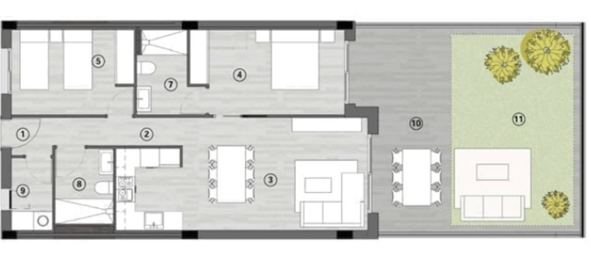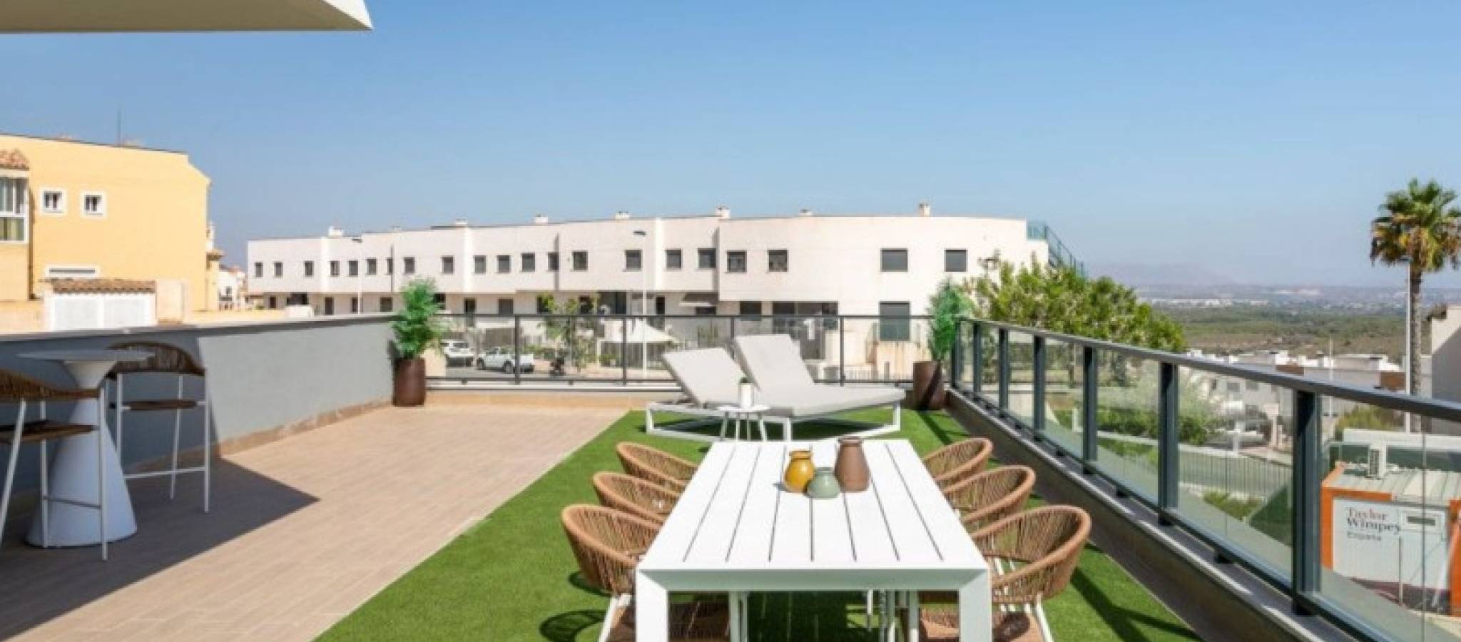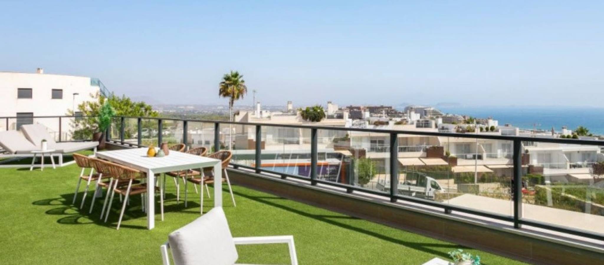 Oppdag de moderne leilighetene tilgjengelig i det prestisjetunge området rundt Alicante. I den andre fasen presenteres boliger med moderne design og imponerende havutsikt fra Gran Alacant. Dette eksklusive komplekset, med totalt 170 eiendommer, tilbyr en privilegert panoramautsikt over Middelhavet og direkte tilgang til en vakker blått flagg-strand perfekt for å nyte solen og naturen. Med tre soverom og to bad er leilighetene utformet for å maksimere utsikten mot havet, stranden og fellesområdene, som inkluderer det fellesskapsbassenget og de nøye vedlikeholdte hagene. Bygget med materialer av høy kvalitet, gir disse hjemmene eksepsjonelle fasiliteter, som privat underjordisk parkering, bod, hageområder, et bio-sunt kretsløp, sykkelparkering og en lekeplass. Kun 15 minutter å gå fra stranden, garanterer komplekset både komfort og direkte tilgang til kysten av El Carabassi. Å investere i en eiendom i denne utviklingen representerer en eksepsjonell mulighet av flere grunner. Hver leilighet er designet for å tilby en moderne og funksjonell livsstil, supplert med toppmoderne fasiliteter tilgjengelig på dagens marked. Å bo i Gran Alacant er synonymt med velvære og en utmerket livskvalitet. Strategisk plassert mellom El Altet og Santa Pola, og kjent for sine spektakulære sanddyne strender, har Gran Alacant befestet seg som en privilegert plassering for å bo. Den harmoniske kombinasjonen av et naturlig miljø, nærhet til essensielle tjenester og utmerket tilkobling til resten av provinsen, tilfører betydelig verdi for de som velger dette paradiset som sitt hjem.