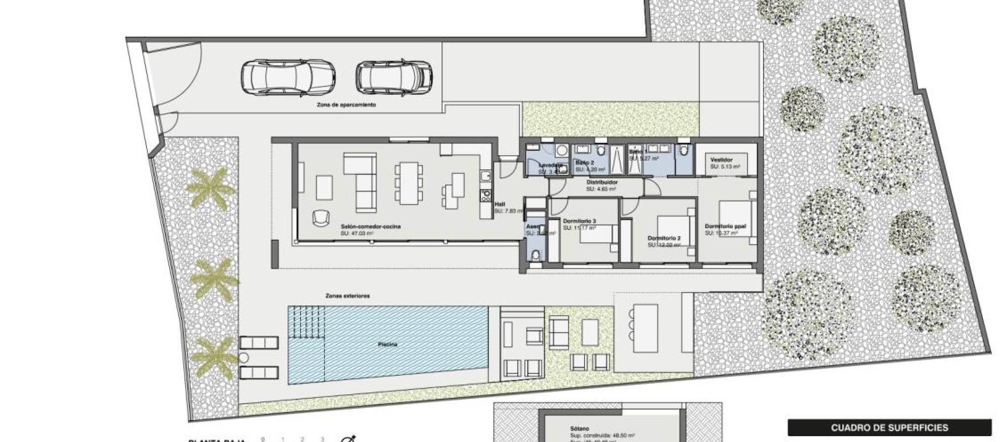 Med en pris i området 789 000 €, utmerker disse eiendommene seg med sitt moderne design og en smart utforming som inkluderer tre soverom i hver villa, noe som sikrer komfort og stil. Et areal på 190 m² gir god plass til å nyte familielivet eller å ta imot gjester, og integrerer elegant interiør med idylliske uteområder.