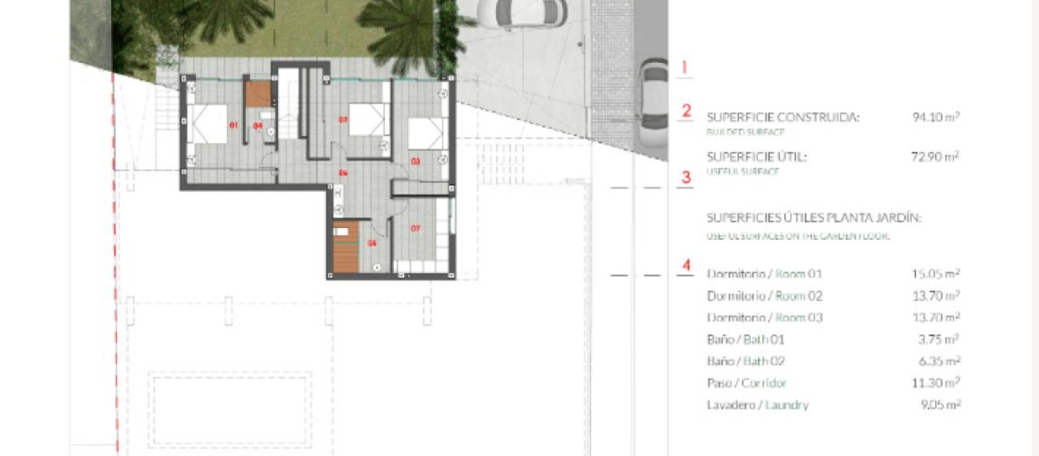 Disse boligene tilbyr tomter på 500 m² med 4 eller 5 romslige soverom, akkompagnert av 4 elegante bad. Åpne områder er designet for å maksimere naturlig lys, mens du nyter en privat hage utstyrt med et basseng, ideell for å utnytte middelhavsklimaet året rundt.