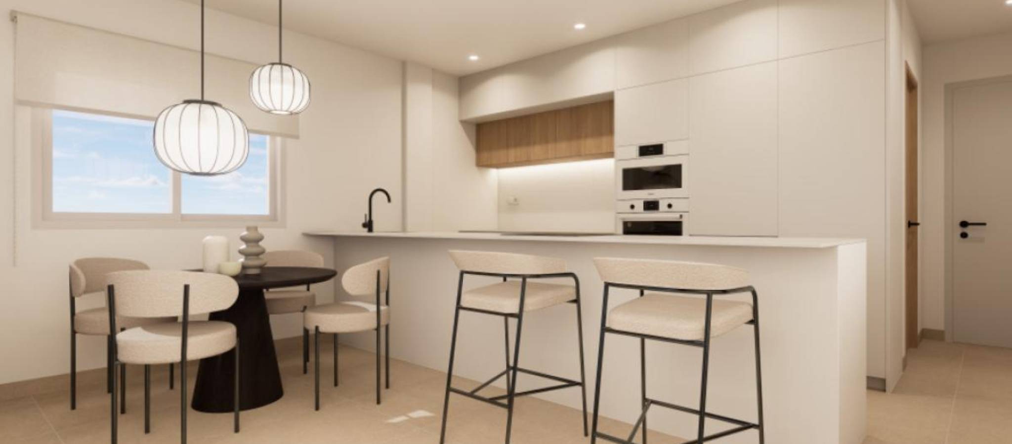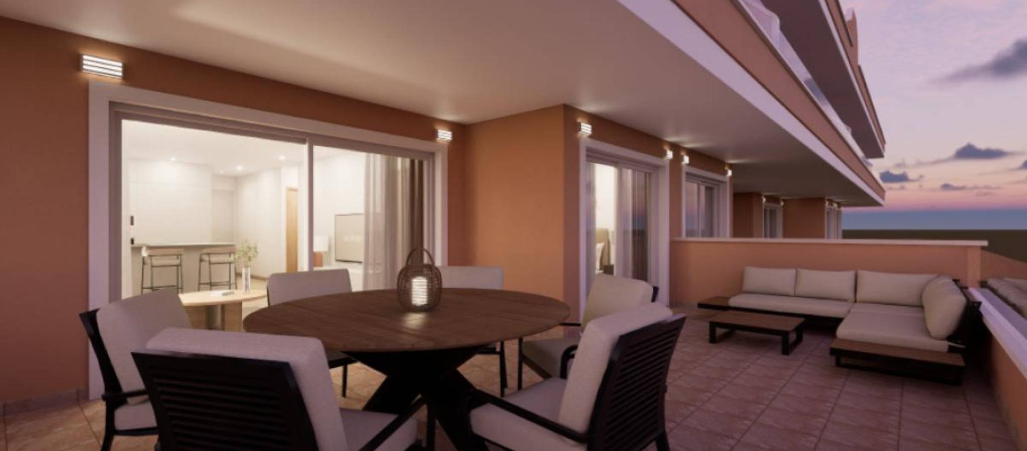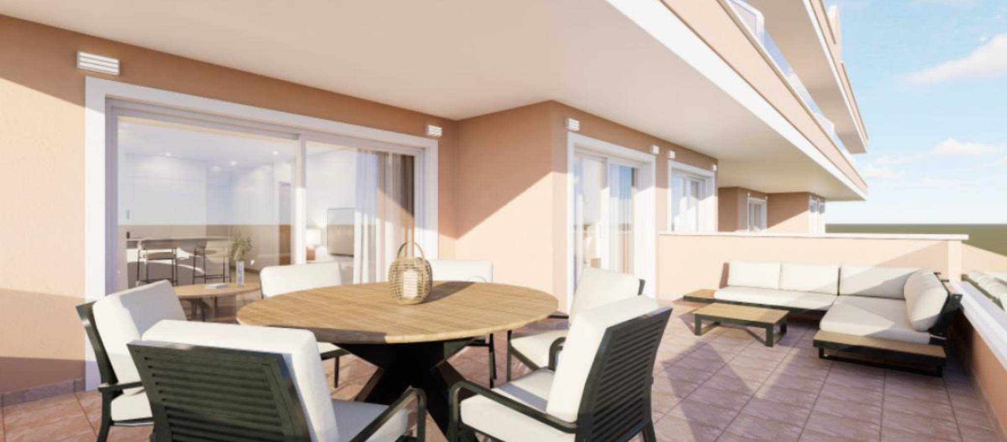 Eksklusivt nytt boligområde i byen Pilar de la Horadada, på den vakre Costa Blanca. Beliggende kun 2 km fra sjøen, tilbyr dette komplekset moderne boliger med 3 soverom og 2 bad, inkludert privat parkeringsplass i prisen. Boligområdet har store og behagelige fellesarealer, som et felles svømmebasseng, anlagte hager og et lekeområde for barn, perfekt for hele familiens glede. Denne promoteringen tilbyr forskjellige typologier som tilpasser seg dine behov: Førsteetasjer med privat hageMellometasjer med store terrasserToppleiligheter med privat solarium Alle boligene er designet i en moderne stil, ved bruk av materialer av høy kvalitet og moderne finish. Boligene har førsteklasses utstyr, inkludert: Forinstallasjon av luftkondisjonering via kanalerUtvendig snekkerarbeid i aluminium med termisk brudd og doble vinduerForsterket inngangsdør for større sikkerhetAerotermisystem for effektiv produksjon av varmtvannInnebygde garderober med LED-belysningBaderomsmøbler og dusjvegger inkludert Plassert sør på Costa Blanca, byr Pilar de la Horadada på et spektakulært kystmiljø, med et misunnelsesverdig klima og en eksepsjonell livskvalitet. Det livlige sentrum har et variert utvalg av butikker, supermarkeder, restauranter og nødvendige tjenester. På bare 5 minutter med bil, kan man nyte strendene i Torre de la Horadada og Mil Palmeras, med deres gyldne sand og sjarmerende strandpromenade. I tillegg har området sykkelstier, turstier og et spekter av sportsaktiviteter.