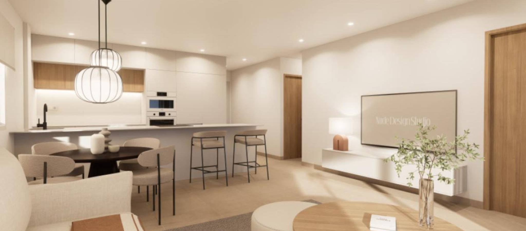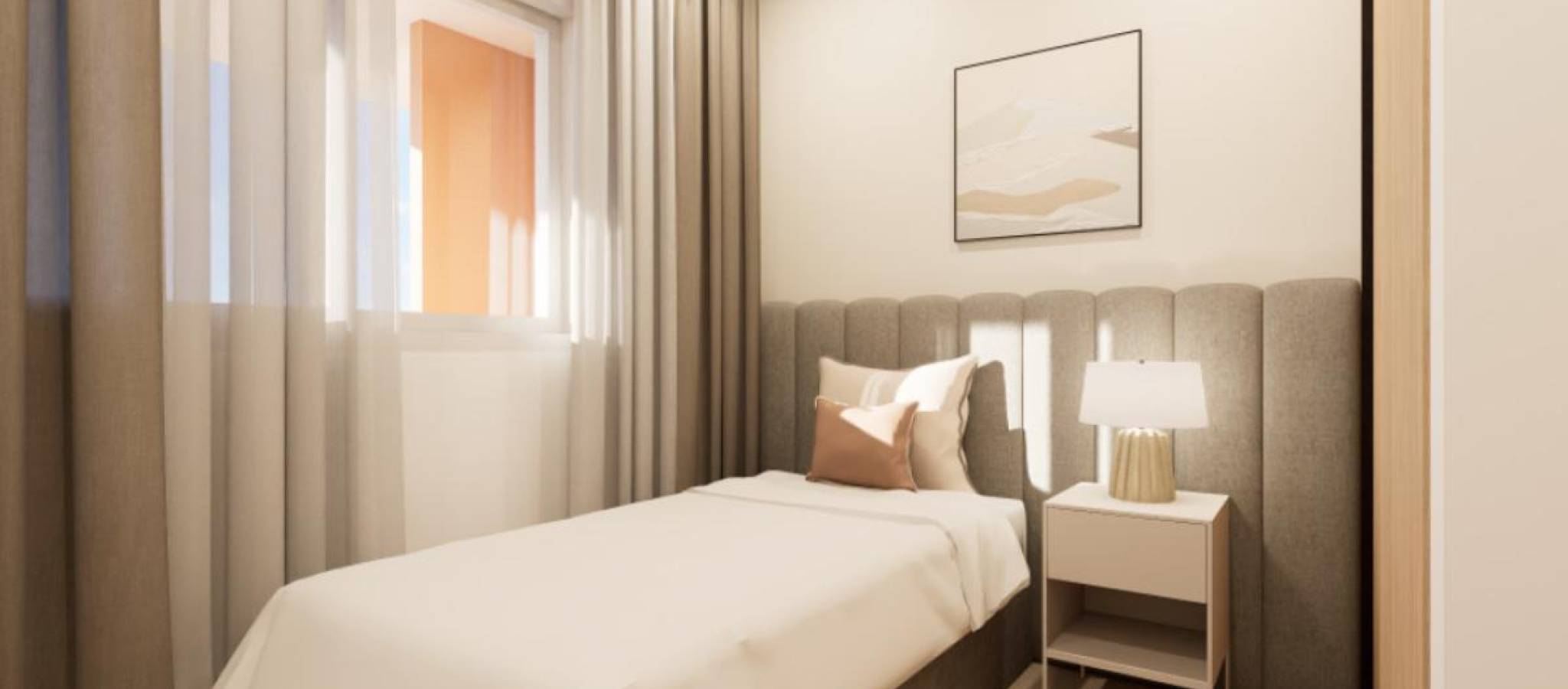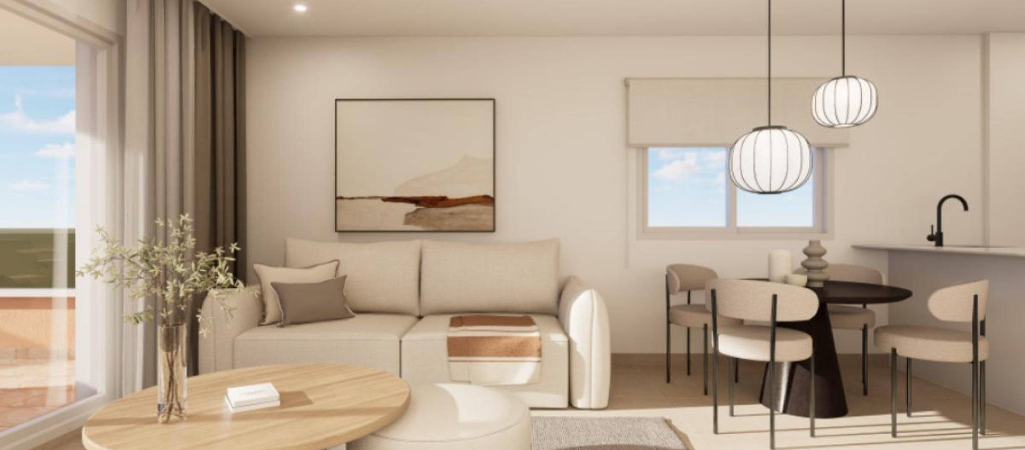 Eksklusivt nytt boligområde i byen Pilar de la Horadada, på den vakre Costa Blanca. Beliggende kun 2 km fra sjøen, tilbyr dette komplekset moderne boliger med 3 soverom og 2 bad, inkludert privat parkeringsplass i prisen. Boligområdet har store og behagelige fellesarealer, som et felles svømmebasseng, anlagte hager og et lekeområde for barn, perfekt for hele familiens glede. Denne promoteringen tilbyr forskjellige typologier som tilpasser seg dine behov: Førsteetasjer med privat hageMellometasjer med store terrasserToppleiligheter med privat solarium Alle boligene er designet i en moderne stil, ved bruk av materialer av høy kvalitet og moderne finish. Boligene har førsteklasses utstyr, inkludert: Forinstallasjon av luftkondisjonering via kanalerUtvendig snekkerarbeid i aluminium med termisk brudd og doble vinduerForsterket inngangsdør for større sikkerhetAerotermisystem for effektiv produksjon av varmtvannInnebygde garderober med LED-belysningBaderomsmøbler og dusjvegger inkludert Plassert sør på Costa Blanca, byr Pilar de la Horadada på et spektakulært kystmiljø, med et misunnelsesverdig klima og en eksepsjonell livskvalitet. Det livlige sentrum har et variert utvalg av butikker, supermarkeder, restauranter og nødvendige tjenester. På bare 5 minutter med bil, kan man nyte strendene i Torre de la Horadada og Mil Palmeras, med deres gyldne sand og sjarmerende strandpromenade. I tillegg har området sykkelstier, turstier og et spekter av sportsaktiviteter.