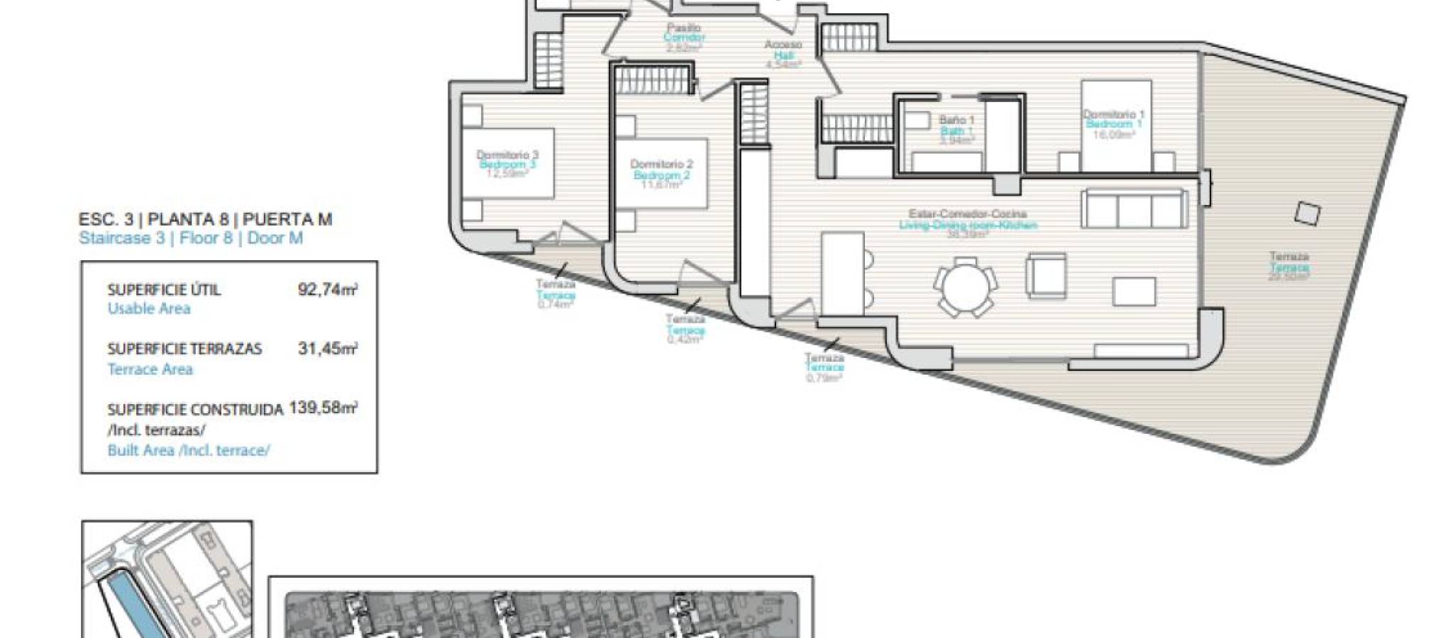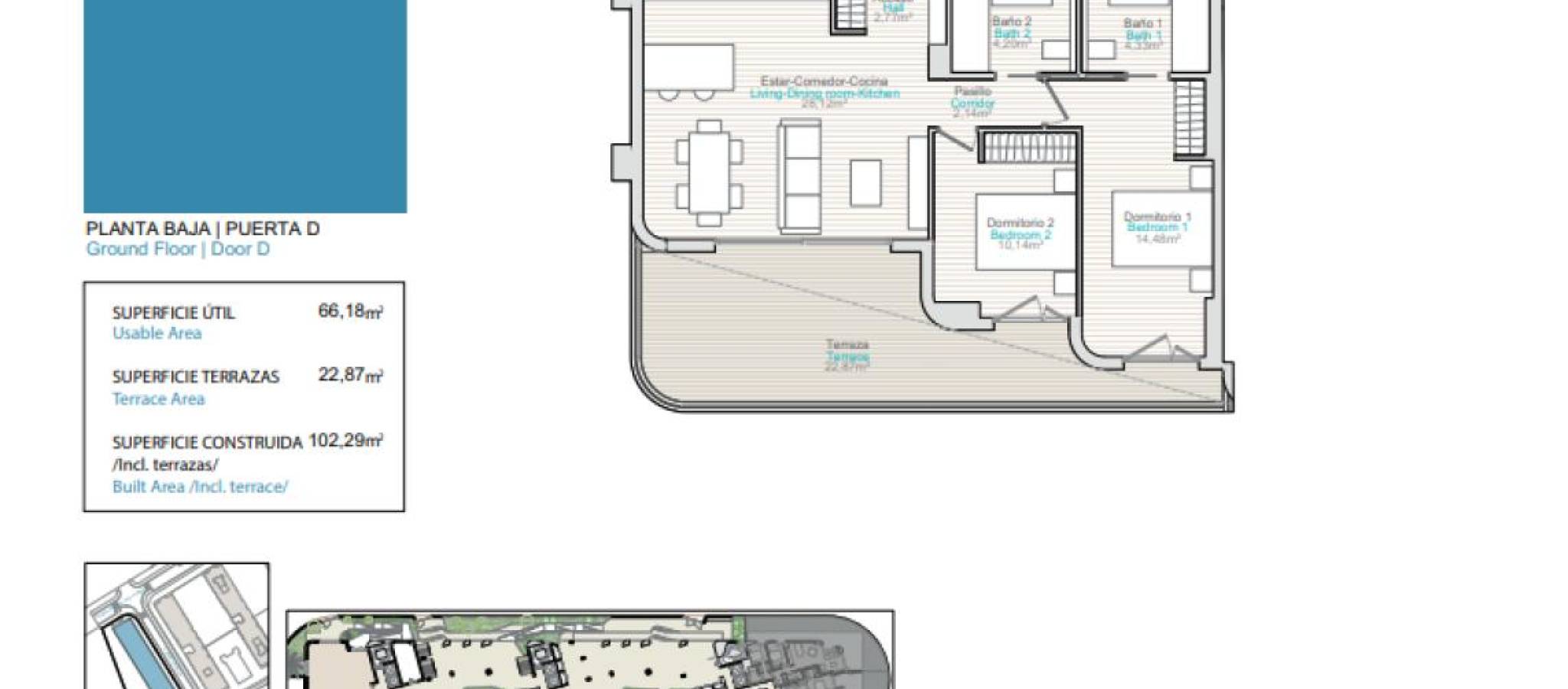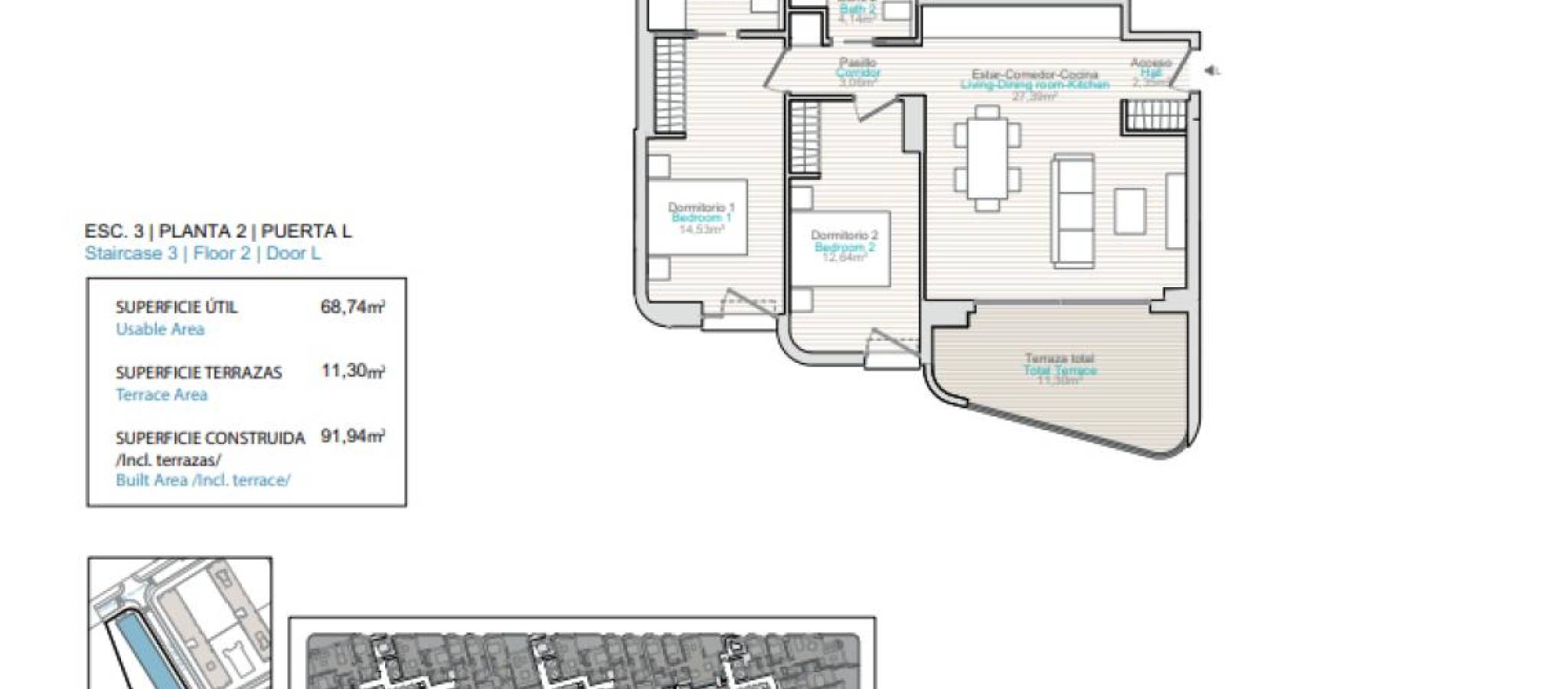 Lev ved havet i en unik setting Oppdag muligheten til å innvie ditt hjem i en privilegert bukt med turkist vann og en sandstrand som inviterer deg til å nyte solen hele året. Et sted der ro og komfort forenes for å tilby en enestående livsstil, omgitt av natur og med alle tjenester innen rekkevidde. Hver bolig er designet for å maksimere naturlig lys og havutsikt, og inkluderer et klimaanlegg med varmepumpe for kjøling og oppvarming, samt varmtvannsproduksjon gjennom aerotermi, som sikrer effektivitet og velvære året rundt. Boliganlegget inkluderer privat garasje med automatisert tilgang, gulv av polert betong, brannvarslings- og slukkesystemer, samt forhåndsinstallasjon for lading av elektriske kjøretøy. Nyt eksklusive fellesområder som gjør hver dag til en opplevelse: Utendørs basseng med solarium, solsenger og parasoller.Social klubb og panoramabasseng i 9. etasje med spektakulær havutsikt.Sikkerhet med videoovervåkning.Fullt utstyrt treningsstudio, badstue og jacuzzi for ditt velvære.Anlagte hage- og fritidsområder for avslapning eller deling med familie og venner. Et hjem for de som søker kvalitet, komfort og privilegiet av å bo ved sjøen.