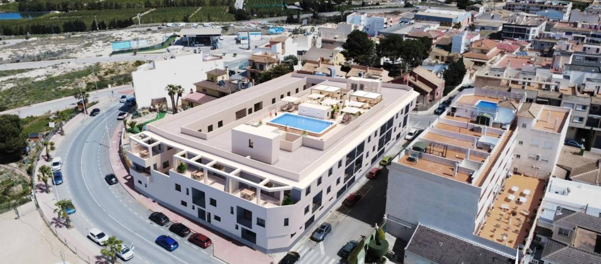 Eksklusivt boligsalg lokalisert i San Miguel de Salinas, kun 10 kilometer fra Middelhavet, i et område kjent for sine saltsjøer og sitt sunne mikroklima. Et ideelt miljø for å nyte den ekte middelhavslivsstilen gjennom hele året. Prosjektet består av to moderne bygninger omgitt av et velstelt, felles hageområde. Totalt rommer det 56 leiligheter med 1, 2 og 3 soverom, alle med privat terrasse og designet for å tilby komfort, energieffektivitet og høy kvalitet i materialer og utførelse. Plasseringen gir enkel tilgang til strender, golfbaner og det kjente kjøpesenteret Zenia Boulevard, Europas største utendørskjøpesenter, kun få minutters kjøretur unna. Moderne og effektive boliger Hver leilighet er designet med tanke på komfort og moderne design med: Private terrasserFunksjonelle og lyse planløsningerHøykvalitets materialerUtmärkt termisk og akustisk isolasjonDesign med fokus på energibesparingFellesområder for hele familien Prosjektet tilbyr fullstendige fellesområder designet for beboernes glede: Hager og avslapningsområderBarneområdeSykkelparkeringSosialt rom i første etasje På taket finnes en spektakulær fritidssone på 350 m² med: Basseng på 70 m² med barneområdePergoaler og parasollerSolstolområdeSanitære fasiliteterTilgang via heiser Et perfekt sted å slappe av og nyte panoramautsikt. Privilegert beliggenhet på Costa Blanca San Miguel de Salinas kombinerer ro, natur og nærhet til alle tjenester. Dets naturlige omgivelser sammen med nærhet til kysten og kommersielle og rekreasjonsområder gjør det til et ideelt sted både å bo og investere. En utmerket mulighet for å bo eller investere Denne promoteringen representerer et perfekt valg som: Vanlig boligAndre hjemInvestering med høyt utleiepotensial Moderne arkitektur, store fellesområder og en strategisk beliggenhet gjør dette prosjektet til en unik mulighet på Costa Blanca. Kontakt oss for mer informasjon eller for å avtale en visning.