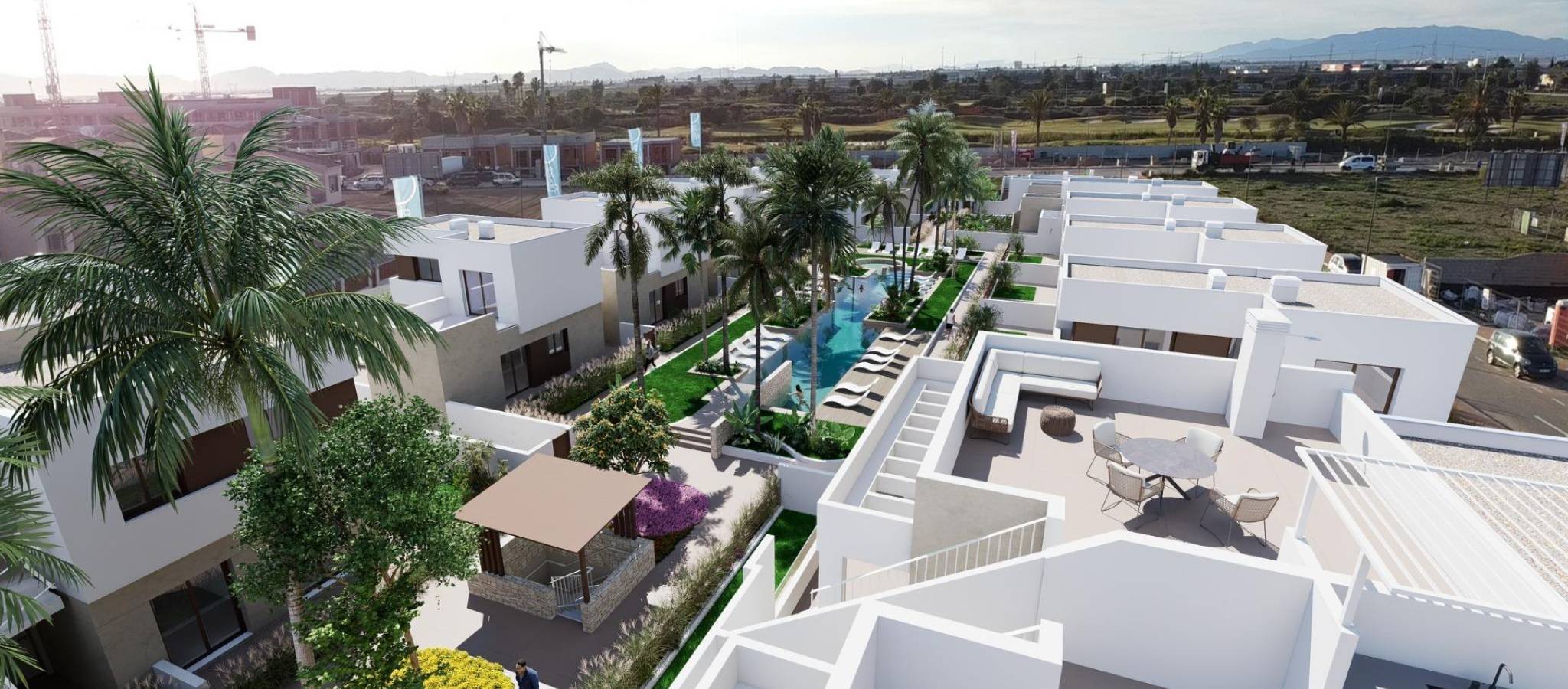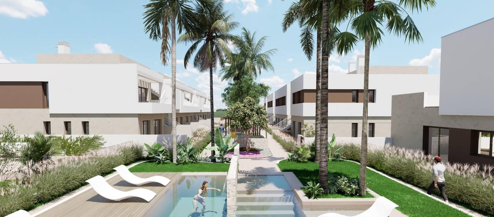 Discover a new residential concept on the Costa Cálida, designed for those seeking the perfect combination of privacy, comfort and social life. This exclusive complex offers detached villas and bungalows, with access to spacious communal areas and a communal swimming pool, providing the best of both worlds: the tranquillity of a private home and the comfort of shared spaces to enjoy with friends, family and neighbours.
