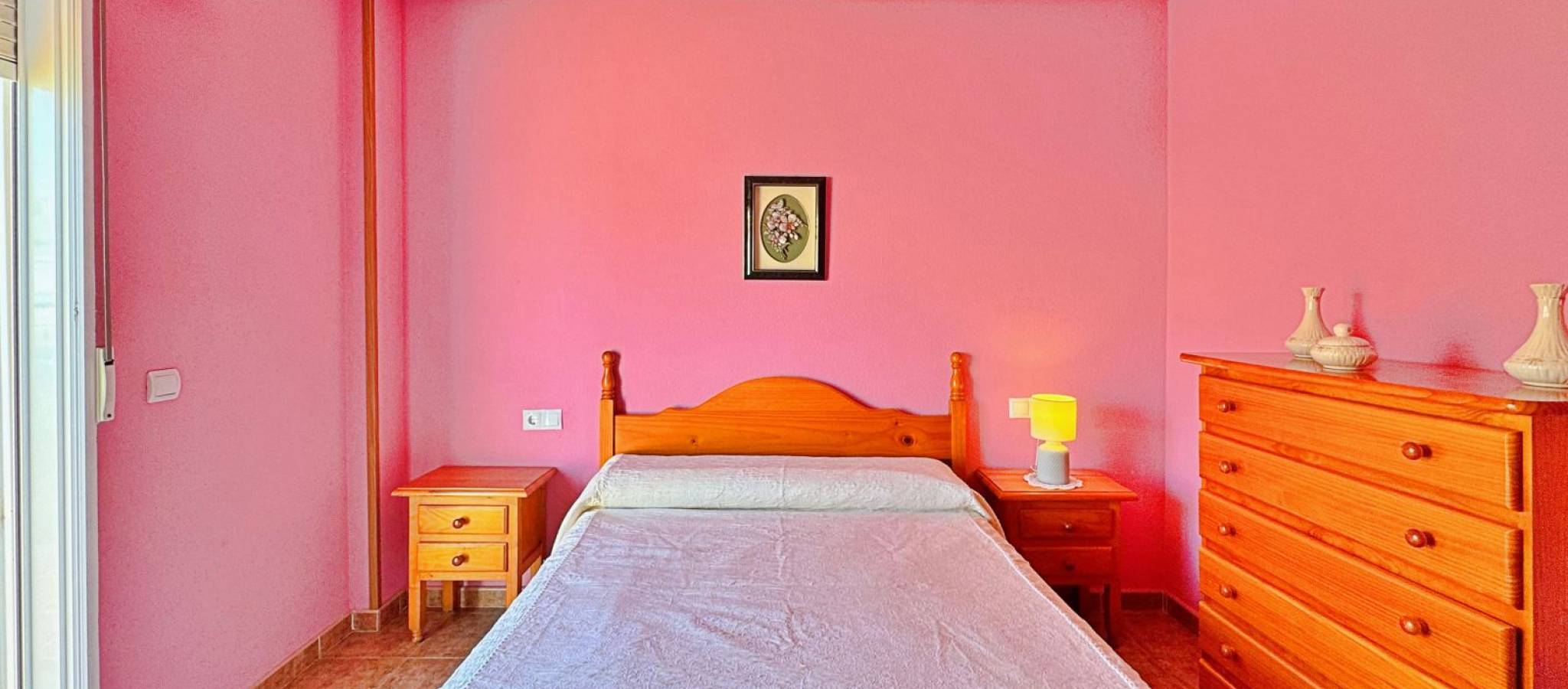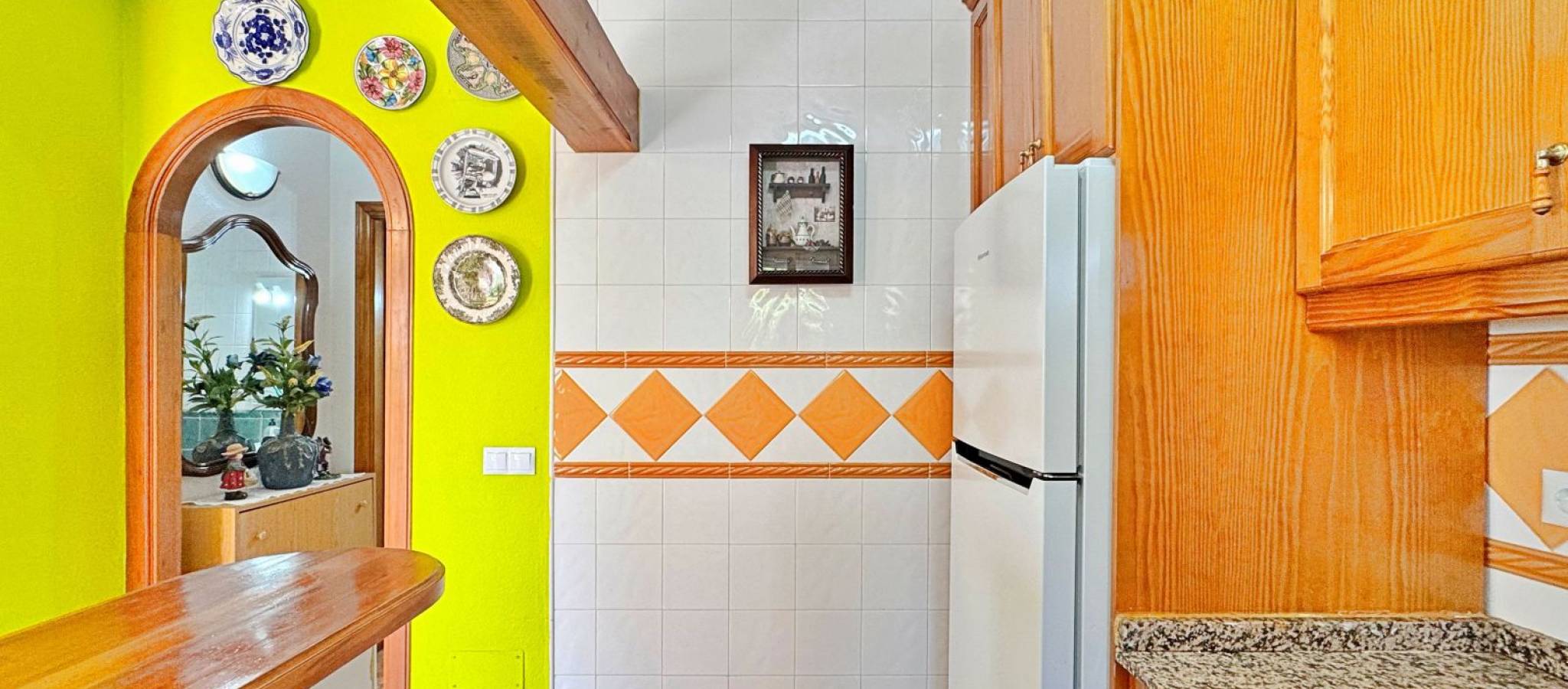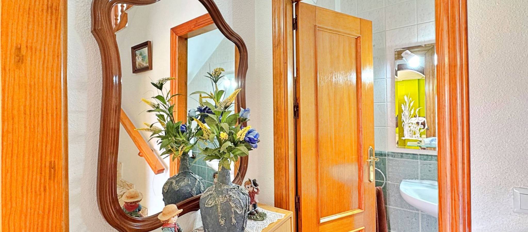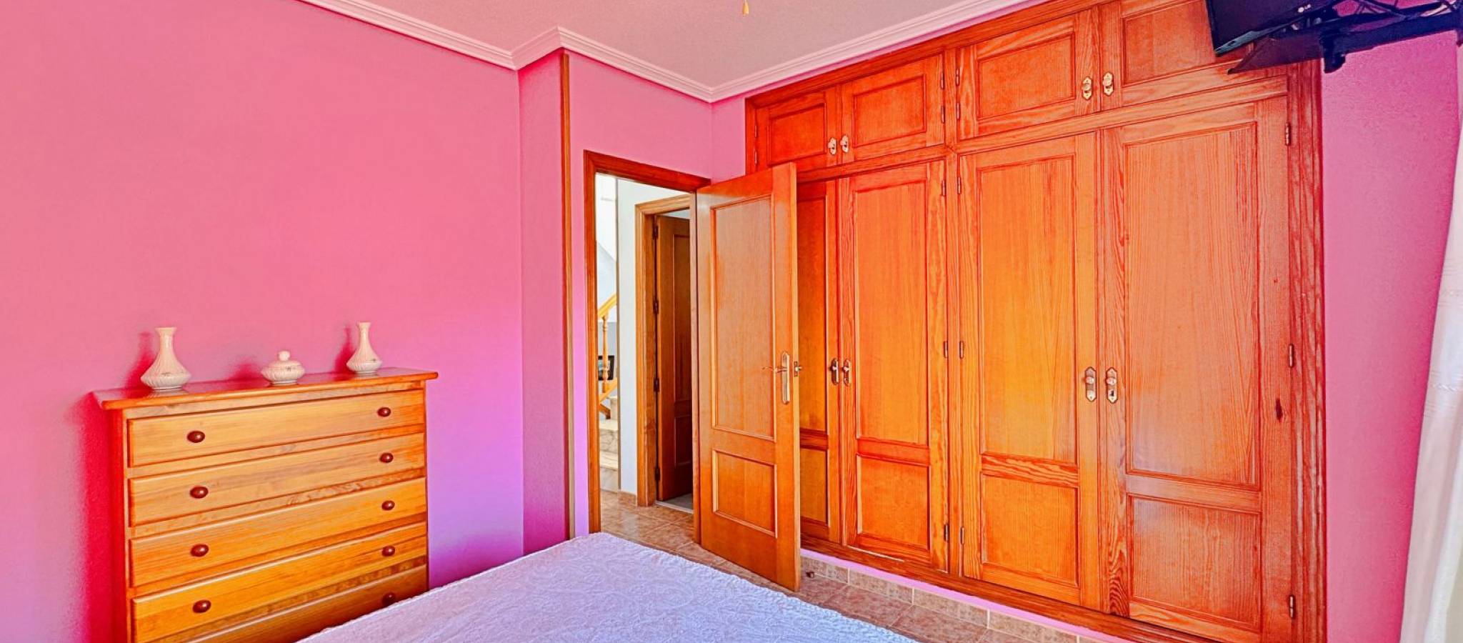 Semi-detached villa located in a private residential complex with a communal swimming pool, in a quiet and well-connected area. The property offers 86 m² built, distributed over two floors, with bright rooms and a layout designed for comfort. On the ground floor, there is a spacious living-dining room with direct access to the terrace, a fully equipped open-plan kitchen with breakfast bar, and a guest toilet. The upper floor includes two double bedrooms with fitted wardrobes, one of them with access to a private terrace, as well as a complete bathroom with shower. The outdoor areas are one of its main highlights: a private 20 m² solarium with open views, perfect for enjoying the Mediterranean climate, and an 80 m² plot with a covered terrace and a paved lateral area with independent access from the street. The property is sold fully furnished and equipped, ready to move into. The complex also offers a communal pool surrounded by green areas, creating a safe and family-friendly environment with all amenities nearby: supermarkets, restaurants, schools and public transport. An excellent opportunity for those looking for a ready-to-enjoy home, whether as a permanent residence, a holiday home or a rental investment on the Costa Blanca.