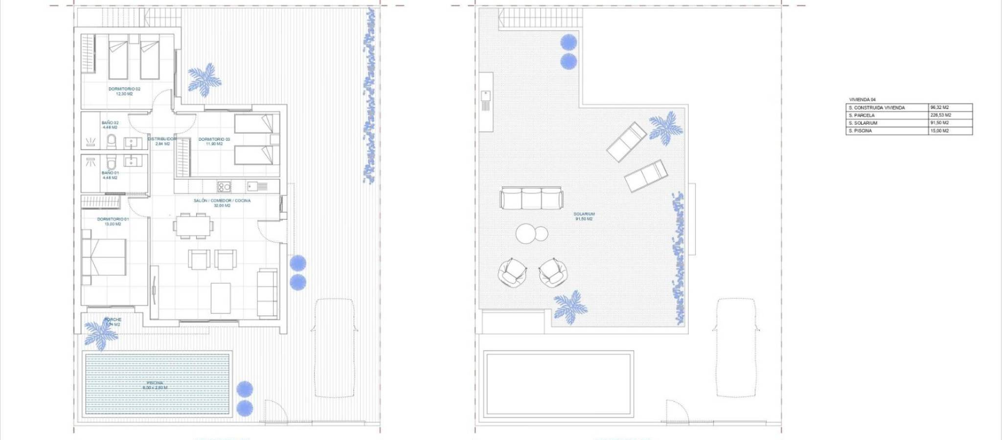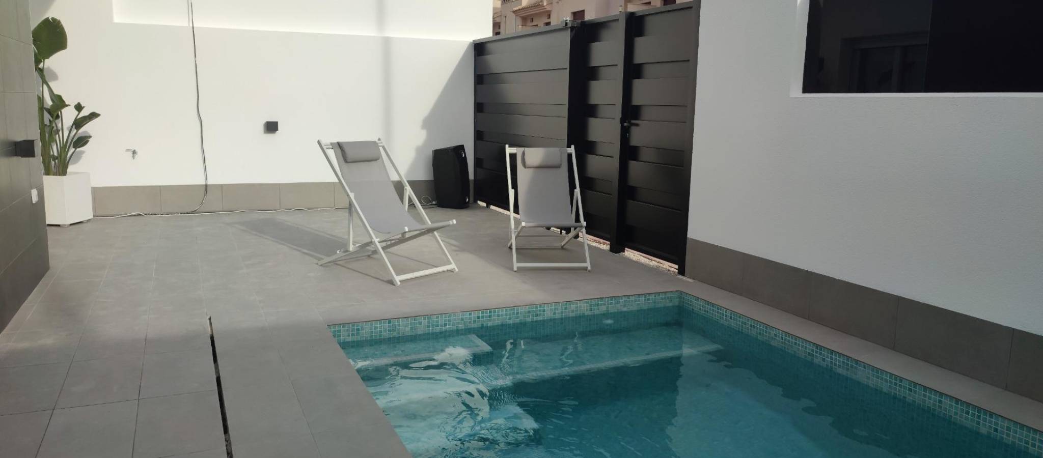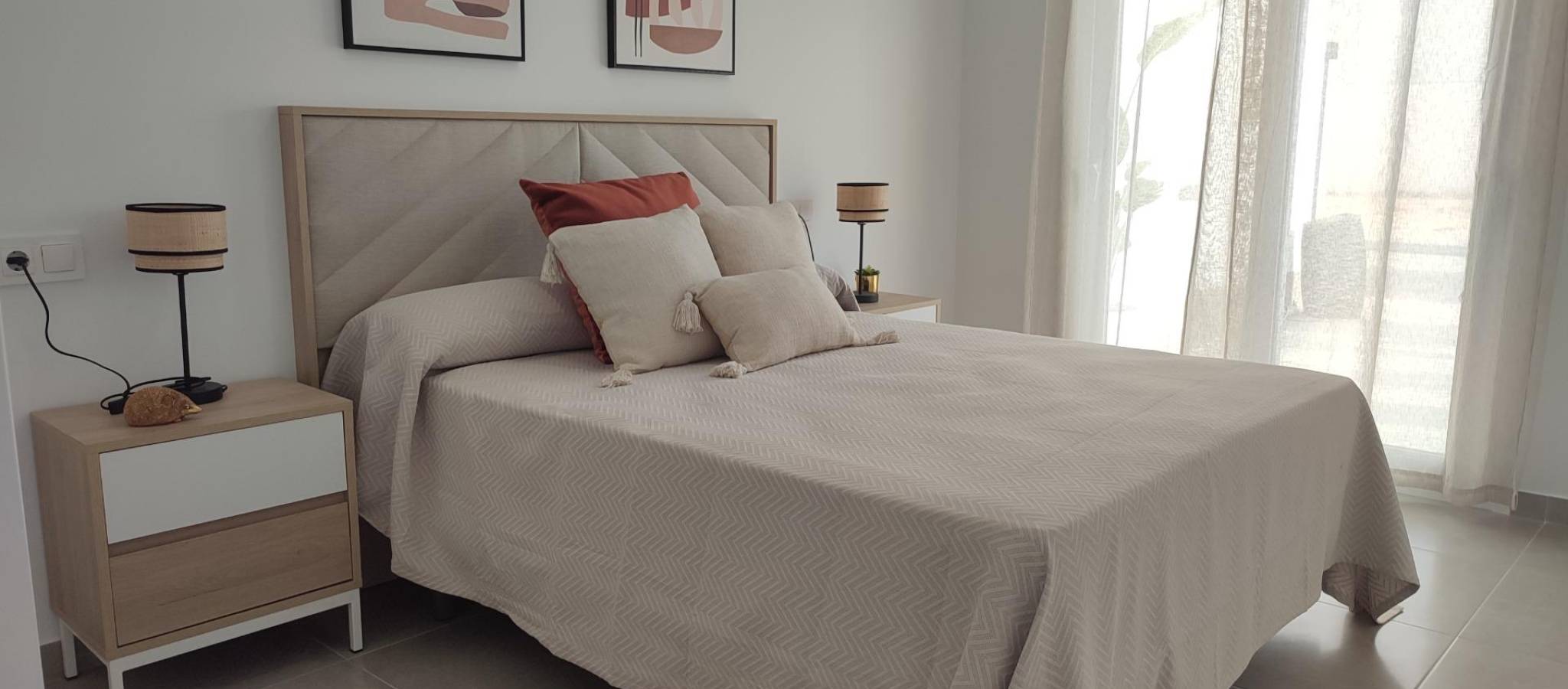 NEW BUILD ONE LEVEL VILLAS IN BALSICAS, MURCIA New Build residential has 6 one level detached villas, with terraced area, private pool, parking on the plot and solarium with Summer kitchen, to enjoy all hours of sunshine every day of the year. Each property has 3 bedrooms and 2 fitted bathrooms. The property has been designed with a contemporary style and an open planned concept, with a fully-fitted kitchen and lounge-dining room. The property will meet the highest standards and will be equipped with: Kitchen completely furnished and equipped with oven, integrated fridge and dishwasher, hob and extractor fan. Kitchen island work zone. Lighting: inside the property (dining room, kitchen, corridors and bathrooms), and as well as in outdoor areas. Lined wardrobes with drawers. Fully fitted bathrooms with toilet, vanity unit, mirror and shower with screen panels. Pre-installation for ducted air conditioning. Solarium with Summer kitchen, with pre-installation for appliances and sliding doors. Private pool with external shower. Parking space on the plot. Balsicas is a perfect place for golf lovers and also for anyone who enjoys green spaces as places of leisure, beauty and tranquillity. Its strategic location makes it possible for the family that decides to live in this complex to have at their fingertips everything that anyone could wish for: a climate where the sun shines almost all year round, nearby beaches, the Mar Menor and its natural muds. with proven healing powers. Complex located 20 minutes from Murcia - Corvera airport and 1 hour from Alicante airport.