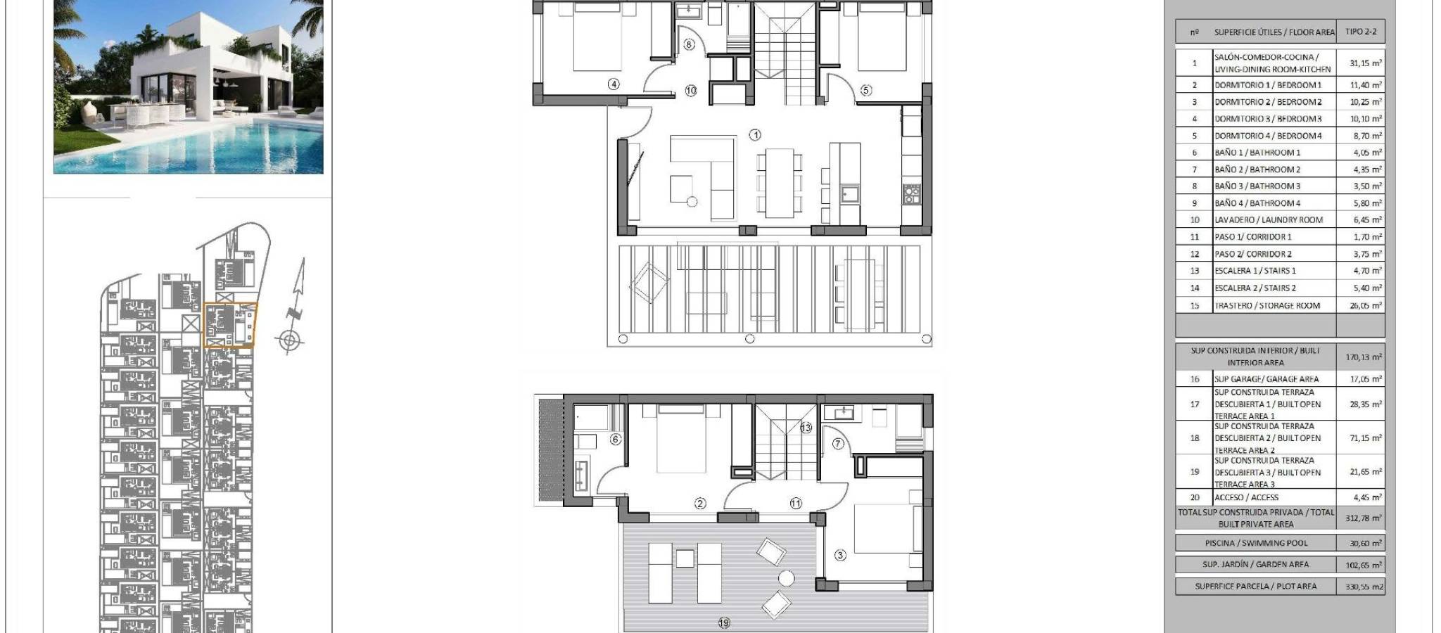New Villas in Finestrat - Luxury, Nature and Sea Views Exclusive Residential in Sierra Cortina, Benidorm-Finestrat Discover this new luxury residential development in Sierra Cortina, Finestrat, one of the most exclusive areas of the Costa Blanca. This development offers 30 villas of avant-garde design, with options of semi-detached and detached villas, all of them with spectacular sea and mountain views. Located in a peaceful setting, yet close to all amenities, this development is ideal for those seeking privacy, comfort and access to Benidorm's best beaches and services. Modern Design and Spacious Living The villas have been designed in a contemporary style, optimising natural light and panoramic views. You will be able to choose from various models with options from 2 to 4 bedrooms, and some designs include basement with English patio, allowing the possibility of adding additional bedrooms. Each home features: 2 floors with private terraces with sea views. Private swimming pool and garden for your enjoyment. Garage on the plot, with space for your vehicle. Open concept kitchen integrated into the living room. Fitted wardrobes and storage space. Utility room for convenience. Privileged location on the Costa Blanca This exclusive residential is located in Sierra Cortina, one of the most prestigious areas of the Costa Blanca, surrounded by nature and with access to first class services. Only 3 km from the sea, this development is located next to two golf courses and close to the Terra Mitica theme park and the luxury hotel Asia Gardens. It also has fast connections to the main roads and airports in the region. Distances to Main Points of Interest Benidorm Beaches - 3 km. Villaitana and Sierra Cortina Golf Courses - 2 km. La Marina Shopping Centre - 2 km. Terra Mitica Theme Park - 1.5 km. Alicante Airport - 40 km. Live in an Exclusive Area with All Amenities Finestrat is a charming municipality in the Marina Baixa, located just a few minutes from Benidorm. Its combination of mountain and sea, together with its modern infrastructure, make it an unbeatable location to live or invest. Don't miss the opportunity to acquire a brand new villa in this privileged location. Contact us today for more information and to arrange a viewing.