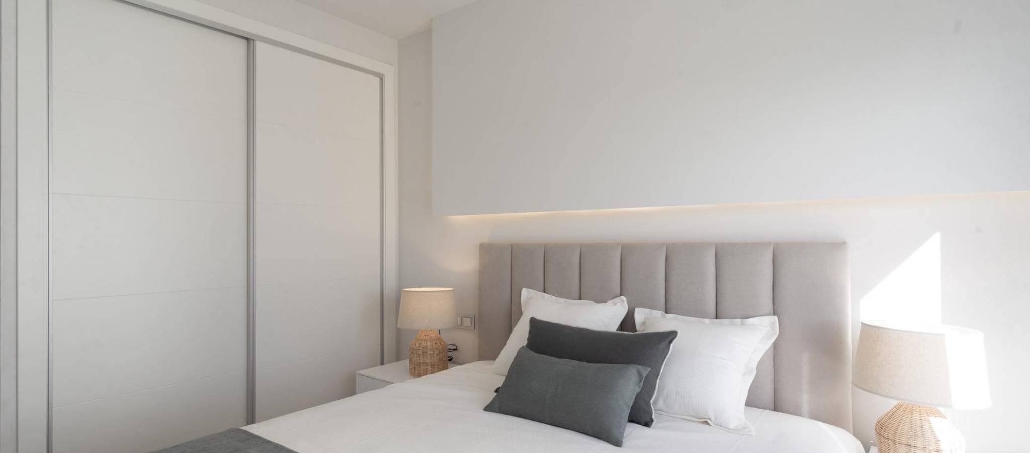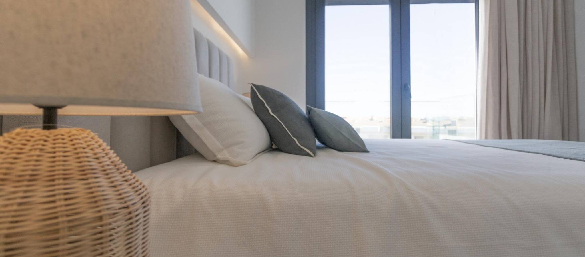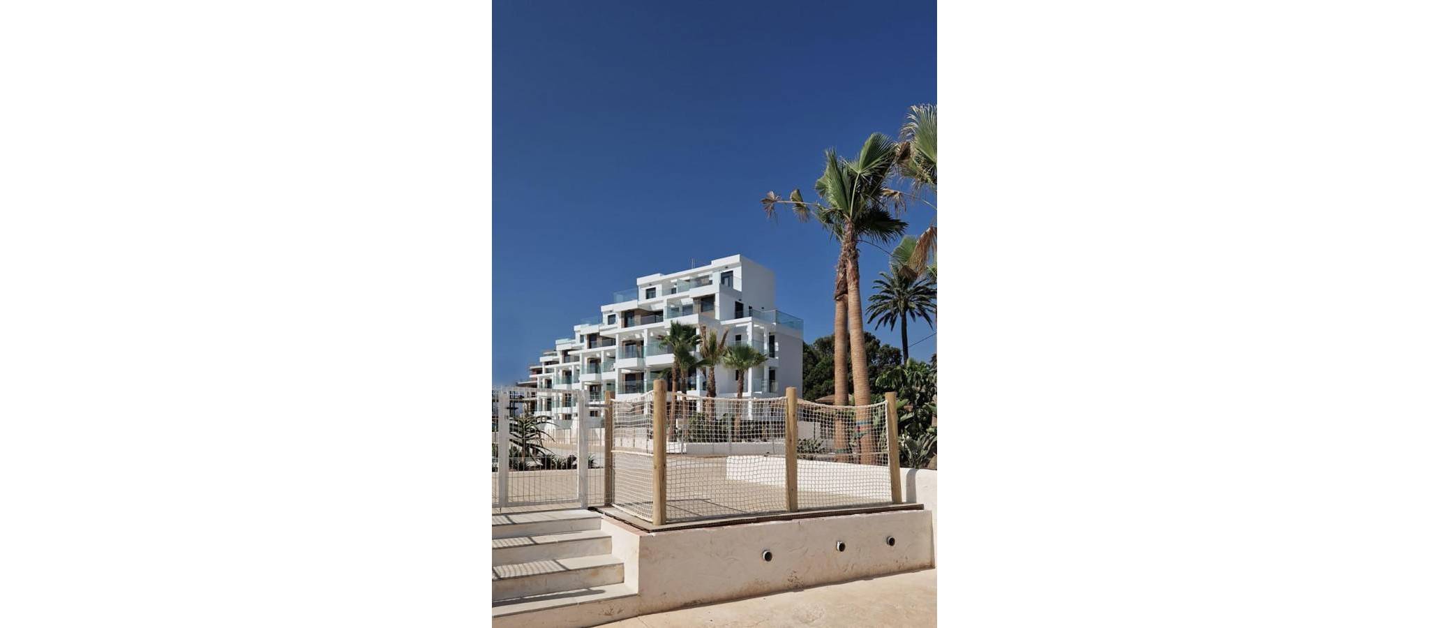 MEDITERRANEAN HOUSING A FEW METERS FROM THE SEA Exclusive complex of Mediterranean construction a few meters from the sea. On the beachfront, in front of L´Estanyo beach (7 km from the town center). Apartments and penthouses with two and three bedrooms, all with sea views. Magnificent common areas with a large garden area and two swimming pools, one for children. In an unbeatable location, in the area known as L´Estanyo that gives its name to its beach, with calm waters, an extensive area of golden sand surrounded by all facilities and services, as well as leisure and restaurant venues.