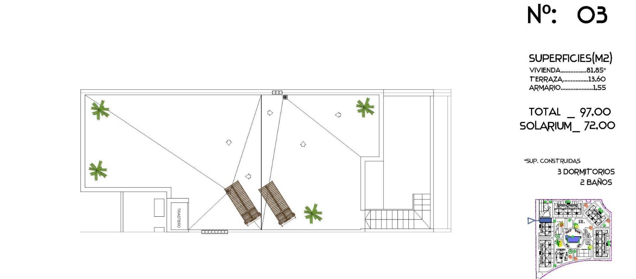 NEW BUILD RESIDENTIAL COMPLEX IN EL RASO New Build closed residential complex of touristic apartments in El Raso, Guardamar del Segura. This new residential complex will consist of 78 touristic apartments and penthouses distributed on the ground floor, first floor, and second floor + solarium. All properties will have a parking space and storage room in the basement, which will be accessible from the community stairs or from the elevator on each floor. The common areas will include a pool area, reception/meeting room, outdoor gym, pétanque area, mini-golf, and spa. DETAILS TO HIGHLIGHT IN OUR NEW DEVELOPMENT: RENTAL-ALLOWED HOUSING: These apartments offer something that no other can in this residential area. You can enjoy your home for 4 months a year for personal use, and the rest of the year it can be rented out, where you can obtain profitability without having to worry about anything, as a specialized rental company will manage everything for you. FULLY FURNISHED HOMES: all the homes in our new project will be fully furnished and ready to live in, with lighting, furniture, appliances, and fully finished bathrooms. VARIOUS TYPES OF HOUSING TO CHOOSE FROM: We offer various types of housing to choose from in different orientations. 2 bedrooms + 2 bathrooms and 3 bedrooms + 2 bathrooms types. All 3-bedroom homes will be corner units, making them even more exclusive for clients. Among these, we offer homes with South, East, and West orientations. All with terraces/porches facing the green area and Laguna de La Mata. UNBEATABLE VIEWS OF THE LAGUNA DE LA MATA: From all the first and second-floor homes in our new development, you can enjoy privileged views of the Laguna de La Mata. Being the last development adjacent to it, you will have a dreamlike panorama of this natural setting. PROXIMITY TO THE BEACH: Just 10 minutes by car or 15 minutes by bike, you can enjoy Moncayo Beach. CLOSE TO SHOPPING CENTERS AND URBAN AREAS: Located just 10 minutes by car from the Habaneras shopping centre, 9 minutes from the dining and entertainment area of Ciudad Quesada, or 8 minutes from the centre of Guardamar del Segura, making our development have an unbeatable location. GOLF COURSES: For lovers of this sport, it's worth mentioning that just 15 minutes by car, you can enjoy one of the best golf courses in Spain, located in the La Finca de Algorfa urbanization. Also, note the beautiful golf courses of La Marquesa and Vistabella, which are 10 and 20 minutes by car respectively. Complex located 30 minutes from Alicante airport and 1 hour Murcia - Corvera airport.