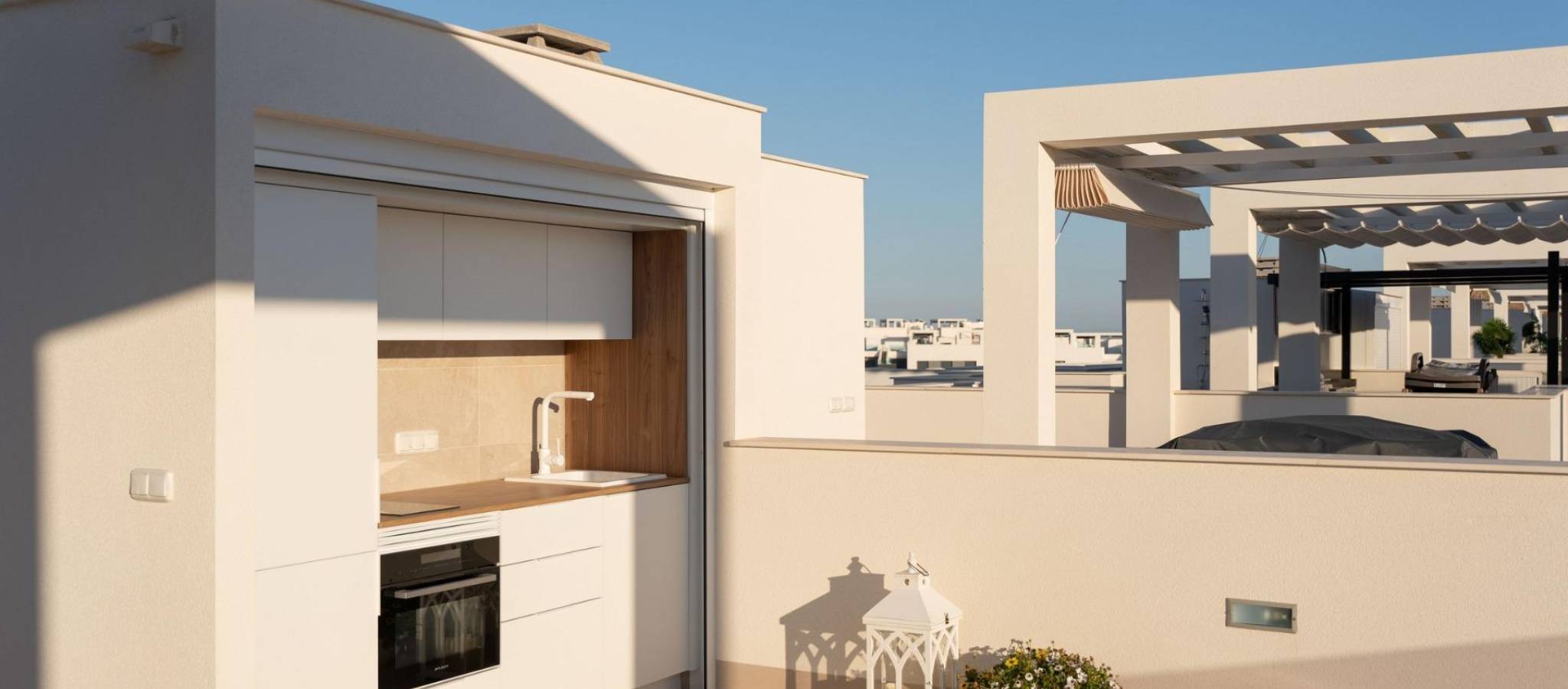 NEW BUILD RESIDENTIAL IN EL RASO, GUARDAMAR DEL SEGURA New Build private residential complex of apartments in El Raso, Guardamar del Segura. Complex consisting of 135 homes with 2 or 3 bedrooms in blocks of 3 or 5 floors plus solarium, designed in a minimalist way and with high quality standards, its modern architecture harmonises with our large open spaces, nature and swimming pools, offering a unique and peaceful atmosphere. Beautiful residential complexes, including a glassed-in GYM-Spa area with views of green areas, swimming pools and from its terrace overlooking the salt lagoon of La Mata, paddle tennis court, etc. Parking space included in the price. Development is located on a unique and unrepeatable plot, bordering the natural landscape of the salt lagoon, enjoy its biodiversity and unique environment, in El Raso de Guardamar del Segura, with all kinds of services and amenities and close to the best beaches of the Mediterranean. At the same time, thanks to the proximity of El Moncayo beach, you will be able to go for a bike ride and enjoy the best climate of the Costa Blanca. Additionally and thanks to the five levels of some of the blocks that make up the residential, all of them facing south, we include in our luxury penthouses, fully equipped kitchen on the solarium, outdoor shower (hot/cold water), and jacuzzi area, to complete the unique experience of living in front of a unique and unrepeatable natural environment. El Raso is a part of Guardamar del Segura. Guardamar del Segura is a town located on the Costa Blanca South. With its 11 kilometres of natural beach and its large pine forest. Guardamar del Segura has a large port with activities throughout the year, it has a large sports centre with paddle tennis, tennis, soccer and a large heated swimming pool that works all year round. It also has a library where there is free wifi and computers. Guardamar del Segura is only 20km away from the Alicante - Elche (El Altet) airport, where there are many flights every day with connections to the main European cities, due to the demand for tourists on the Costa Blanca.