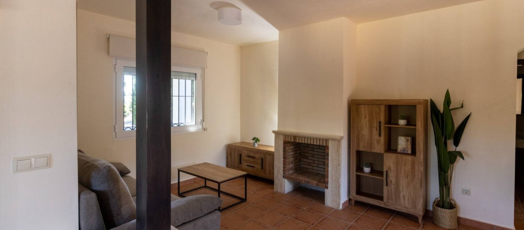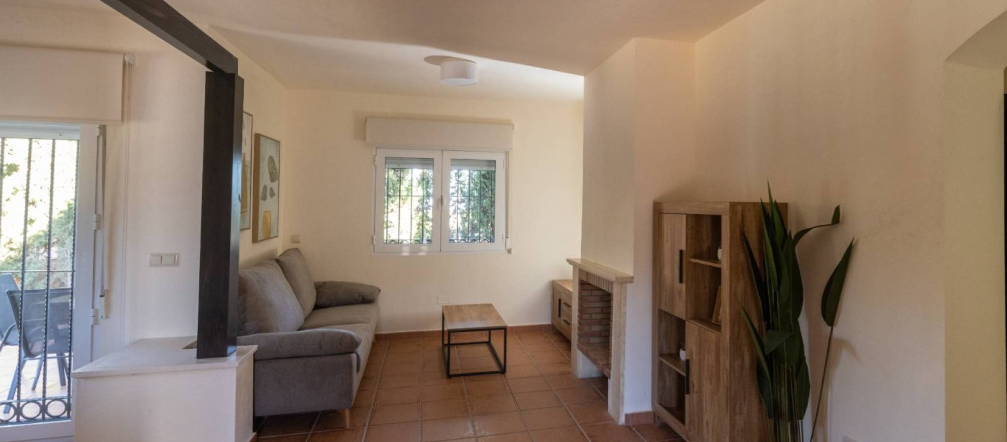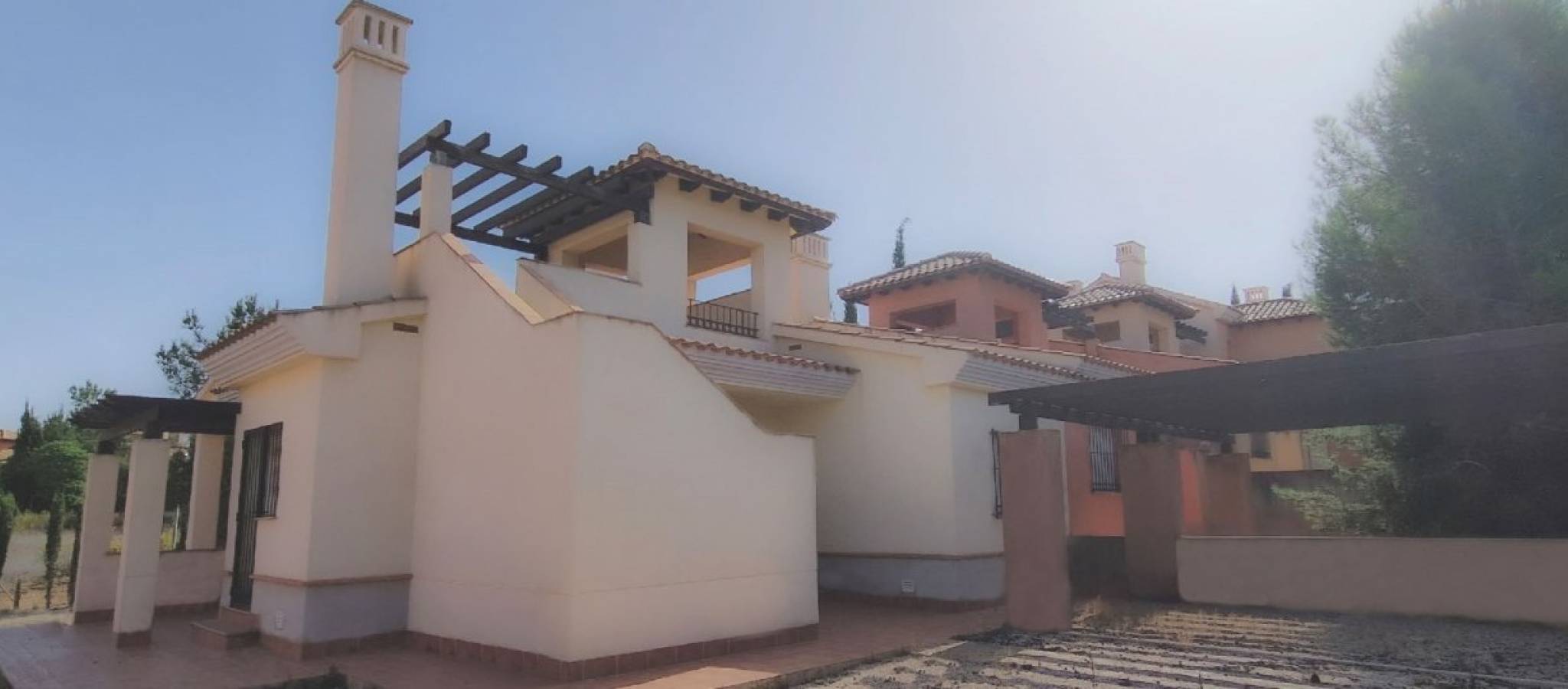 KEY READY SEMI-DETACHED VILLA IN FUENTE ALAMO, MURCIA Residential of townhouses, independent and semi-detached villas in Fuente Álamo, Murcia. There are seven different models of houses to choose from, designed to suit everyone’s taste. Rustic designs combined with top quality materials and a focus on comfortable living space there is something for everyone. The residents of this private community of beautiful, spacious homes will also be able to enjoy their own communal gardens and swimming pools. This unusual design semi-detached villa has 2 bedrooms and 1 bathroom, independent kitchen, living room with patio doors leading onto the covered porch and semi covered roof top terrace. An options for a private pool at an extra cost. Fuente Álamo de Murcia is a town and municipality in the Region of Murcia, southern Spain. It is situated 22 km northwest of Cartagena and 35 km south west of Murcia. The town lies in the basin of the Mar Menor surrounded by the mountains of Algarrobo, Los Gómez, Los Victorias and the Carrascoy. The water from these mountains flows down into the Rambla de Fuente Álamo and then onto the Mar Menor. Fuente Álamo located 30 minutes from Murcia - Corvera airport.