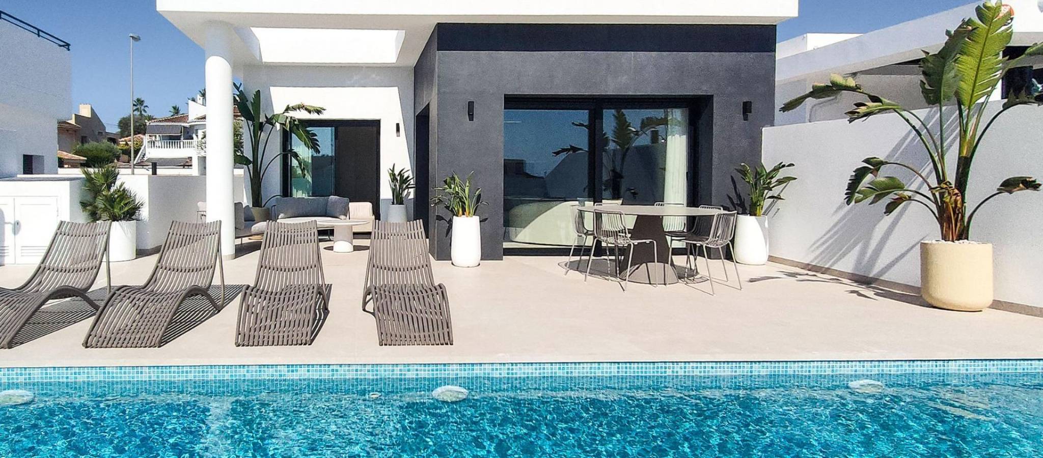 Modern luxury villa with mountain views in Ciudad Quesada, Costa Blanca Contemporary design and exceptional comfort Discover this elegant newly built villa in Ciudad Quesada, one of the most sought-after residential areas on the Costa Blanca. Set on a 300 m² plot with a beautiful garden and a 4x10 m private swimming pool, this villa offers the perfect combination of modern architecture, natural beauty and Mediterranean comfort. The property has 245 m² of interior space spread over two levels, designed to maximise light, space and functionality. Large windows flood the living areas with natural light and offer stunning views of the mountains and surrounding nature. Spacious layout with flexible living options The villa has 4 bedrooms, with the possibility of creating a fifth bedroom or an additional living room, perfectly adapting to your lifestyle. On the main floor, you will find an open-plan living and dining room connected to a modern, fully equipped kitchen with high-end appliances, creating a continuous flow to the terrace and pool area, ideal for entertaining or relaxing outdoors. On the lower level (basement), the remaining bedrooms offer a cool and peaceful environment, with direct access to the garden. The property also includes an enclosed garage, laundry area and high-quality finishes throughout. High-end finishes and sustainable features Every detail of this villa has been carefully designed to offer comfort and efficiency. It includes: Fully equipped kitchen with integrated appliances Bathrooms with furniture, shower screens and electric towel rails Ducted air conditioning (fully installed) Reinforced entrance door for maximum security Prime location in Ciudad Quesada Located in an exclusive and quiet area, this villa enjoys an unbeatable location close to everything. La Marquesa golf course is just 1 km away, making it a paradise for golf lovers. The blue flag beaches of Guardamar del Segura are just 6 km away, while Torrevieja and Orihuela Costa are less than 15 minutes away. Alicante International Airport is about 40 km (35 minutes) away, ensuring excellent connectivity. Experience the Mediterranean lifestyle Surrounded by orange groves, sports clubs, restaurants and all essential amenities, Ciudad Quesada offers a vibrant yet peaceful environment. It is the ideal location for those seeking luxury living under the sun, perfect as a permanent residence, holiday retreat or investment property. Contact us today to arrange a viewing and experience the best of Mediterranean living in your new home in Ciudad Quesada.