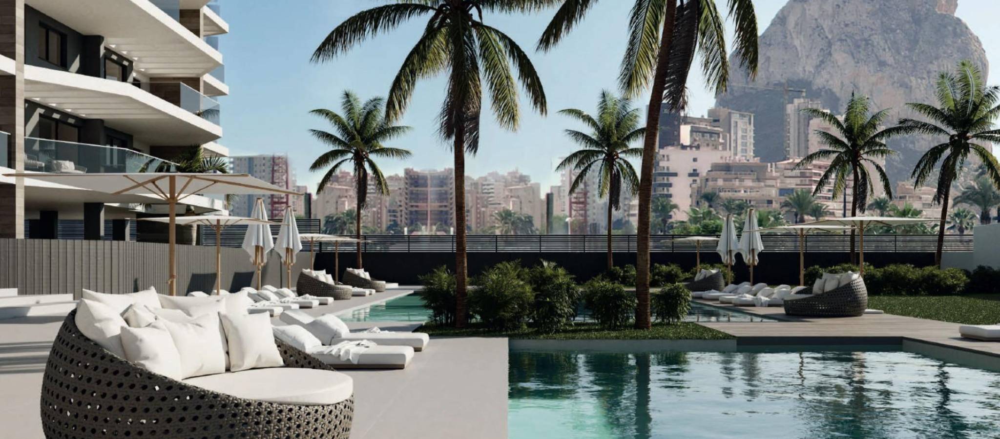 NEW BUILD APARTMENTS IN CALPE New Build residential complex of 2 and 3 bedrooms apartments with large terraces in Calpe. Two towers of 12 floors with beautiful apartments with views of the sea and the salt lake of Calpe. A light-filled house, in harmony with nature, with an open plan kitchen with living room, fitted wardrobes, spacious terraces and sea views. Each apartment has underground parking space. Large common area with 2 large swimming pools, one of them with a beach-type entrance, Sun lounger area with artificial grass, Children's play area, Paddle tennis court, Bicycle parking area, Garden areas. Calpe enjoys a privileged microclimate while the residential located just 200 metres from El Arenal Beach. An ideal spot to revel in the peace, quiet and blue of the sea. With your loved ones, check out everything it has to offer: underwater activities where you can discover the Mediterranean’s flora and fauna while practising all kinds of water sports at international schools. Calpe, one of the towns of La Marina Alta, lies on the northern coast of the province of Alicante, surrounded by the towns of Altea, Benidorm, Teulada-Moraira, Benissa. Calpe has a wonderful mixture of old Valencian culture and modern tourist facilities. It is a great base from which to explore the local area or enjoy the many local beaches. Calpe alone has three of the most beautiful sandy beaches on the coast. Calpe also has two Sailing Clubs: Real Club Náutico de Calpe and Club Náutico de Puerto Blanco. Fishing village of Calpe now transformed into a tourist magnet, the town sits in an ideal location, easily accessed by the A7 motorway and the N332 that runs from Valencia to Alicante; its approximately 1 hour drive from the airport at Alicante and 1,5 hours to Valencias airport.