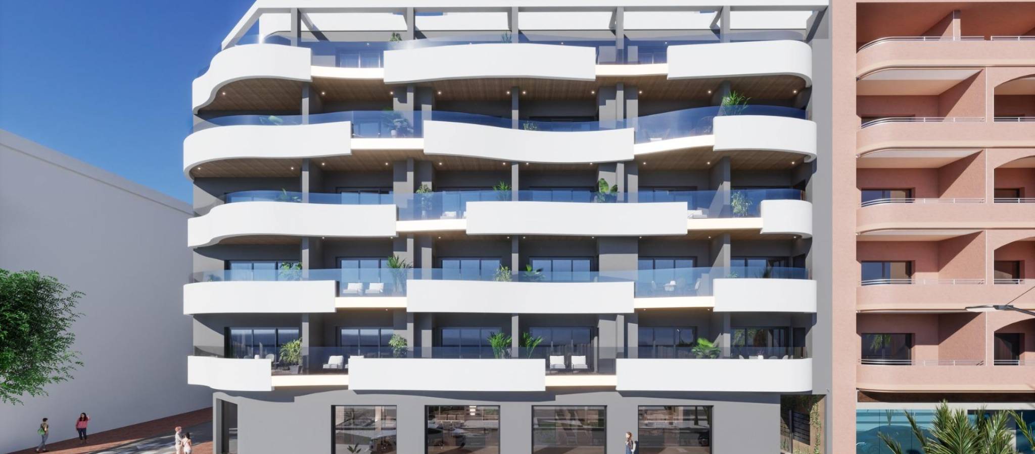 NEW BUILD APARTMENTS IN TORREVIEJA New Build avant-garde design five-storey development in Torrevieja with 34 exclusive properties offers a variety of living options, from stylish apartments to penthouses with breathtaking panoramic views. Every corner of residential has been carefully planned to maximise space and natural light, creating bright and welcoming environments that invite well-being. Residential majestically located in the heart of Torrevieja, consolidating itself as a residential development full of elegance and modernity. Its strategic location ensures that residents will feel part of this amazing city with easy access to a variety of services and attractions. It is a unique opportunity to invest in a sophisticated lifestyle in the heart of Torrevieja! Its unrivalled location, avant-garde design and meticulous attention to detail ensure that this residential development is much more than a place to live: it is a home where dreams take shape and life is lived to the fullest. Torrevieja is a Spanish town in the province of Alicante, on the Costa Blanca. It is known for its typically Mediterranean climate and coastline. It has boardwalks with resorts along its sandy beaches. The small Museum of the Sea and Salt houses exhibitions on the fishing and salt history of the city. In the interior, the Lagunas de La Mata-Torrevieja Natural Park has trails and two salty lagoons, one pink and the other green. Alicante airport located 40 minutes away and Murcia airport about 1 hour away.