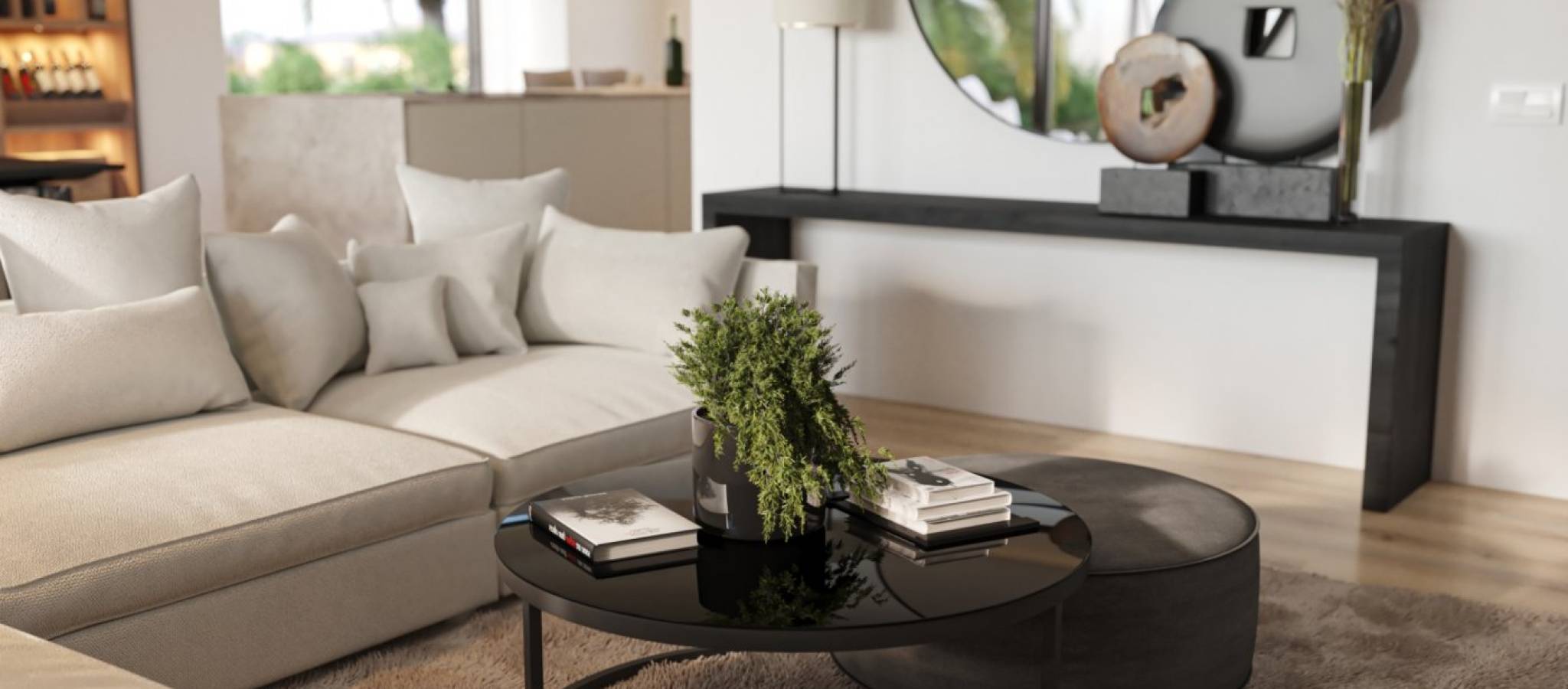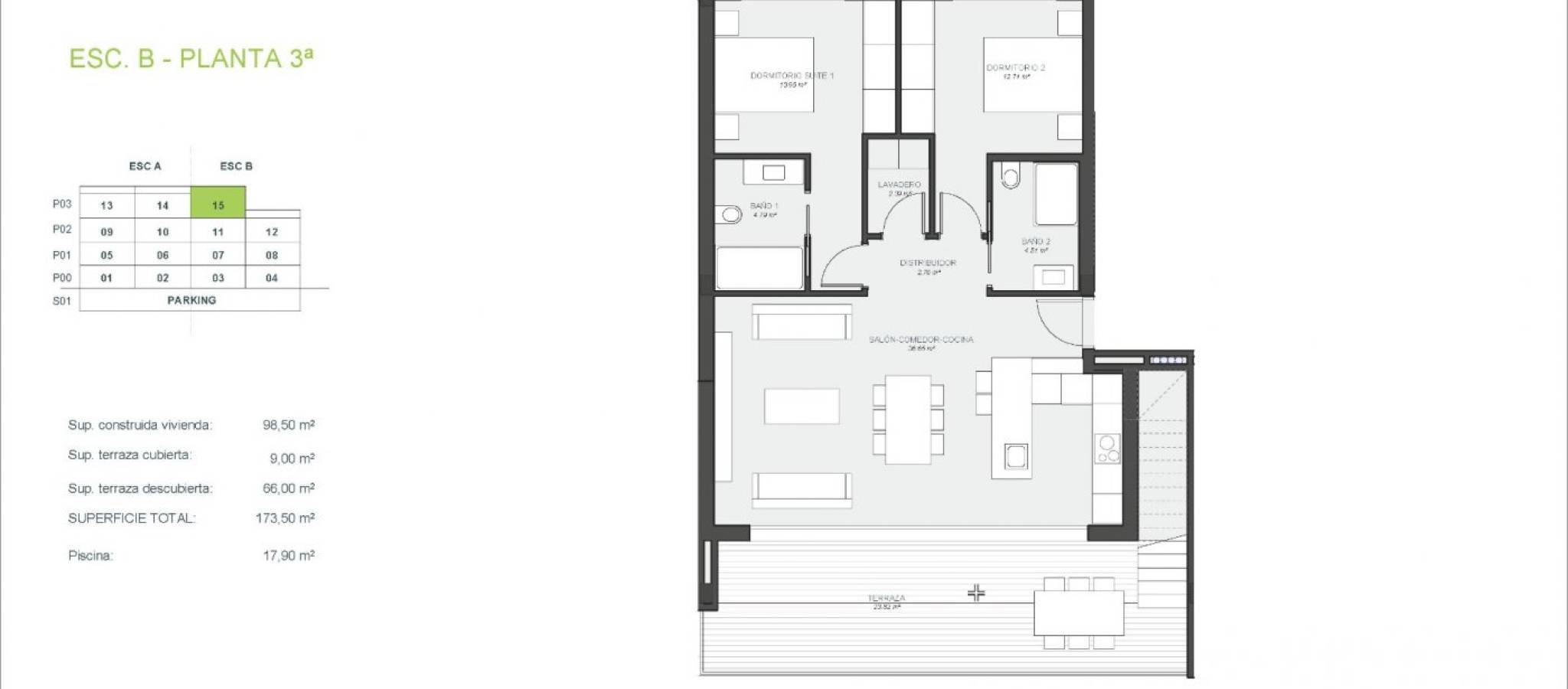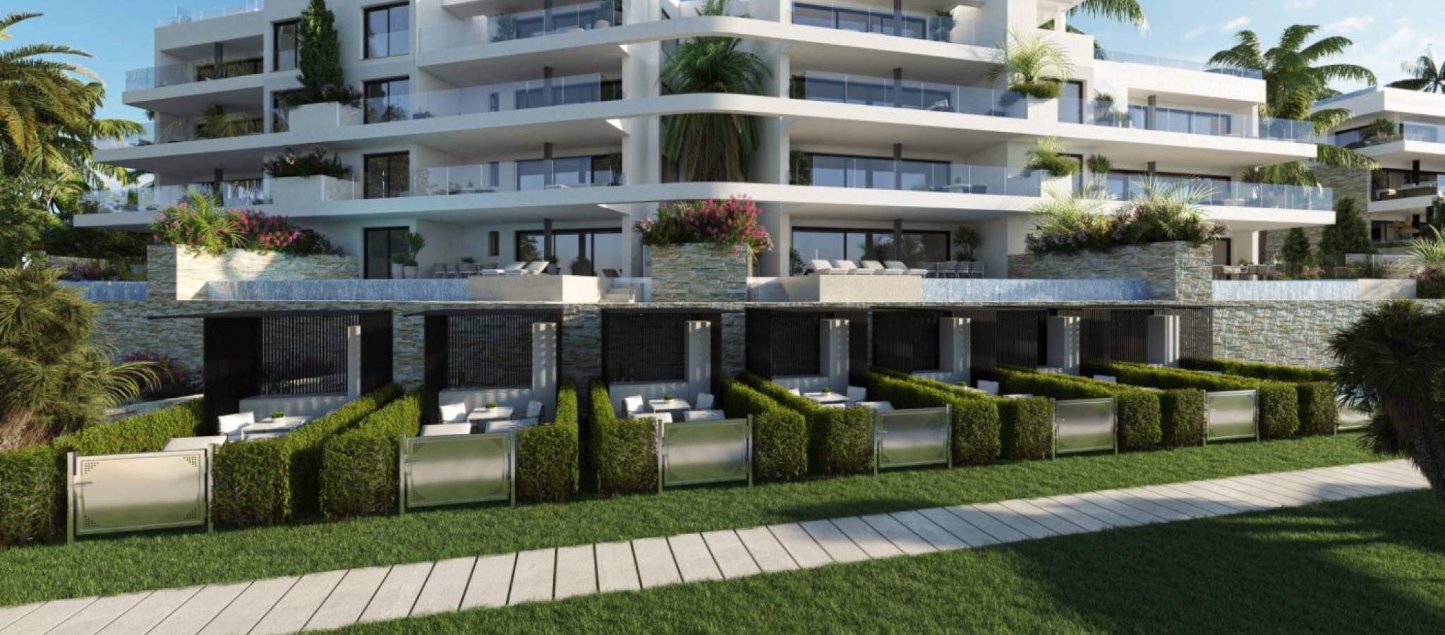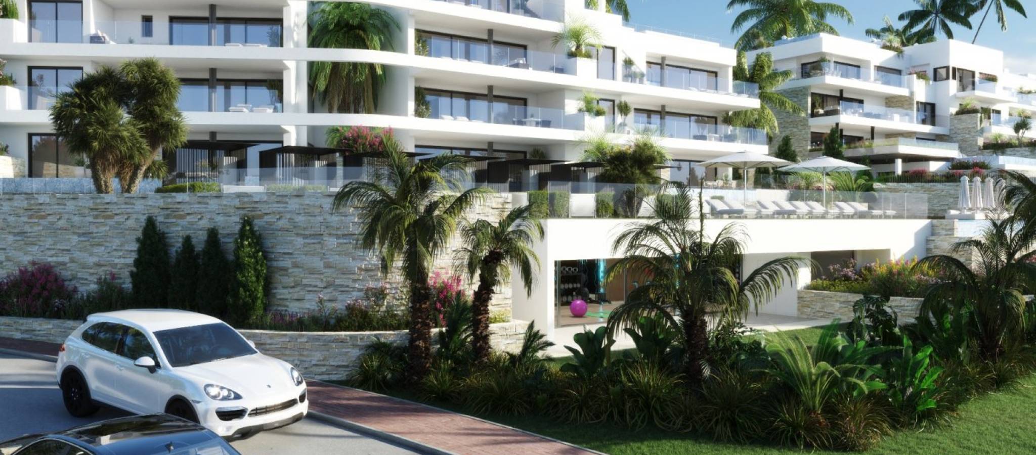 NEW BUILD RESIDENTIAL COMPLEX IN LAS COLINAS GOLF New Build developments consists of 15 luxury apartments with huge terrases overlooking the surrounding natural green area. We have made a combinations of modern and traditional Mediterranean Arhcitecture. Our idea from the beginning has been to make the apartments, with a material description inclutding amongst others, underfloor heating with water, quooker tap, air renewal system, sound reducing ceilings, laquered kitchens, smart home system and much more. When taking the privileged location and views into consideration we believe that complex offers the ideal conditions to meet the criteria of clients with exquisite taste. The thirt floor consists of 3 apartments: 2 apartments comes with 3 bedrooms, 3 bathrooms and a guest toilet and 1 apartment comes with 2 bedrooms, 2 bathrooms. From the apartments you have direct access to big terraces in the same level as the apartment. You have furthermore a staircase taking you to solarium, where each top floor apartment has a private swimming pool, a toilet, an outdoor kitchen with a small lift from the kitchen downstairs and much more. On Las Colinas Golf & Country Club you will furthermore find a wide variaty of amenities for the property owners such as tennis, padel-tennis, fitness, massage, golf, trekking and much more. Inside Las Colinas Golf & Country Club you will also find a number of restaurants as well as a minimarket with fresh baked bread and much more. You will enjoy 200,000 square meters of beautiful Mediterranean landscapes and you will be able to make scenic walks through the lush indigenous, native flora and the extensive fields of orange and lemon groves. Complex located 40 minutes from Alicante airport and 1 hour Murcia - Corvera airport.