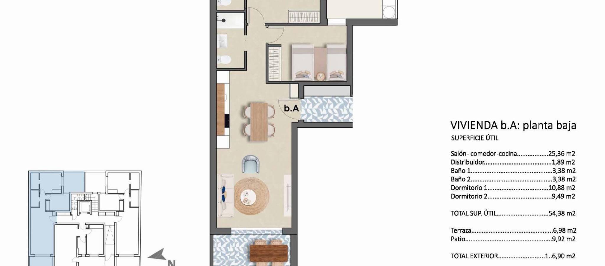 New Mediterranean apartments just 140 metres from the beach in Torre de la Horadada Exclusive seaside living on the Costa Blanca Discover this new residential project in Torre de la Horadada, ideally located just 140 metres from the sea, between El Conde and El Puerto beaches and next to the marina. This exclusive development comprises just 8 modern Mediterranean-style apartments, offering a unique combination of coastal charm and contemporary comfort in one of the most sought-after locations on the southern Costa Blanca. Located in a quiet and picturesque coastal village, these homes are surrounded by essential amenities such as supermarkets, restaurants, cafés and shops, all within walking distance. The area is known for its relaxed atmosphere, crystal clear waters and family-friendly environment. Elegant design and quality finishes Each apartment has 1, 2 or 3 bedrooms and 1 or 2 bathrooms, carefully designed to maximise space and natural light. The interiors feature: Security entrance door for peace of mind Fitted wardrobes in the bedrooms, fully lined and finished Modern bathrooms equipped with furniture, mirrors and shower screens Pre-installation of ducted air conditioning for year-round comfort These high-quality finishes create bright and functional spaces, perfect for both permanent residence and holiday use. Roof-top solarium with swimming pool and chill-out area The highlight of this development is the communal roof-top solarium, which is accessible by stairs or lift. Residents can enjoy a roof-top swimming pool, an outdoor kitchen area, barbecue and pergola-covered dining areas, and a sunbathing area with artificial grass. This exclusive rooftop oasis is the perfect place to relax under the Spanish sun. Prime location and excellent connections Torre de la Horadada is known for its stunning coastline, marina and lively promenade. The development offers easy access to nearby destinations: Beaches: 100 m Lo Romero golf course: 7 km San Pedro del Pinatar: 5 km Murcia-Corvera Airport: 40 minutes (55 km) Alicante Airport: 55 minutes (75 km) The beach house of your dreams awaits With its unbeatable location, elegant design and exceptional community amenities, this new boutique residential project in Torre de la Horadada is the perfect opportunity to enjoy the Mediterranean lifestyle. Contact us today to arrange a viewing and secure your new home just steps from the sea on the Costa Blanca.