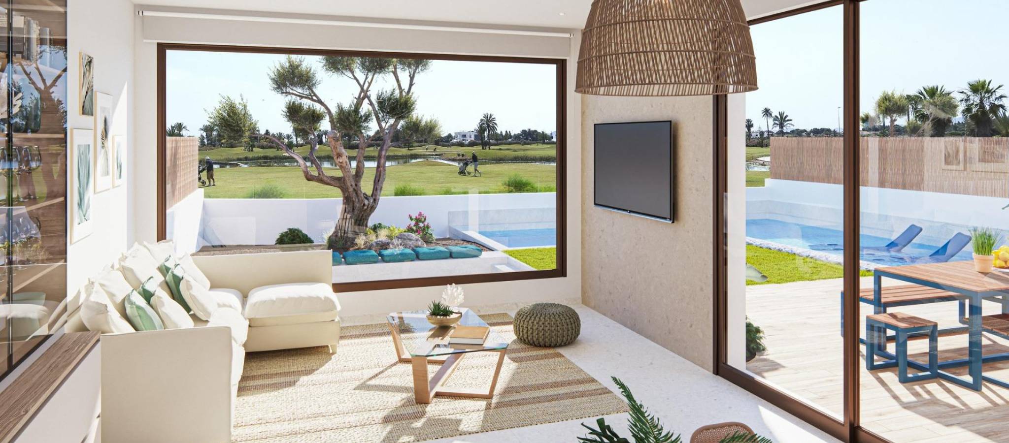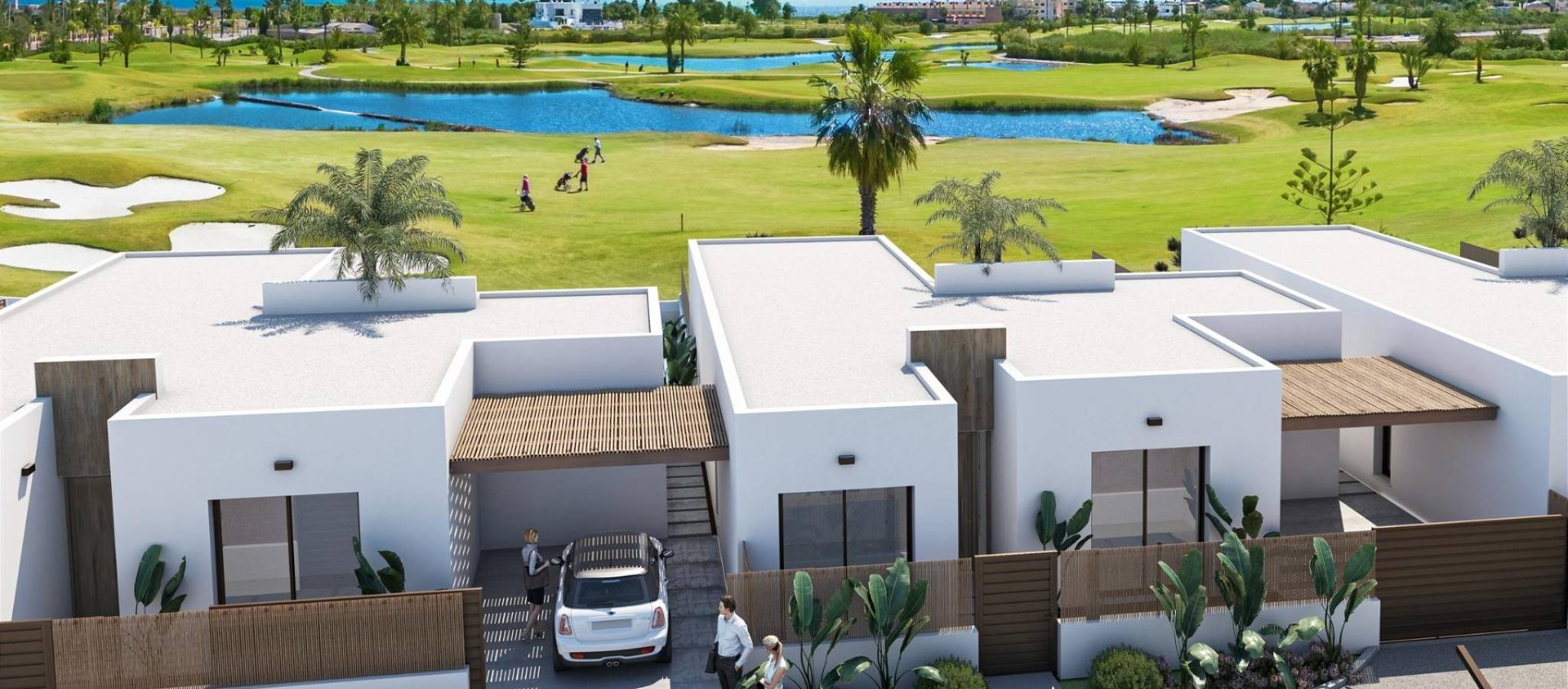 NEW BUILD VILLAS IN LOS ALCAZARES New Build residential is composed of 32 apartments and penthouses with 2 and 3 bedrooms and 9 exclusive villas combining modern design, quality and functionality. The unbeatable location offers amazing views to golf and the Mar Menor sea. Modern villas with 3 bedrooms, 2 bathrooms, open plan kitchen and the lounge area, fitted wardrobes, terrace, private pool and parking space. An options private solarium and basement at an extra cost. Residential located in a frontline of the prestigious golf course “La Serena Golf”. This golf course is well renowned for its lakes and vegetation that interweave with the golf course. The water and lakes are present in 16 of the 18 holes, but all the course is designed to offer the golfer different strategies in each hole. Another aspect that makes this golf course unique is that it’s connected by walking to the city centre, something impossible to find in other golf locations that allow us to enjoy the calm and the beauty of the area without refusing the access to the services that Los Alcázares offers. Residential located in Los Alcázares an exceptional area on the Costa Cálida at only 25 minutes from Murcia airport and 55 min from Alicante airport. The area is connected through highway with the cities of Cartagena, Murcia and Alicante and the rest of the beaches of the Costa Cálida and the Costa Blanca.