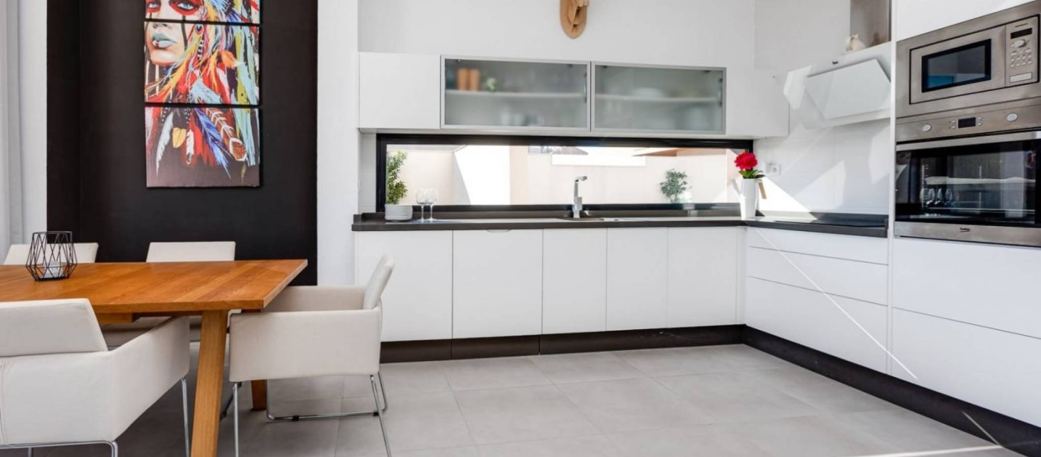 NEW BUILD VILLAS IN PILAR DE LA HORADADA New Build residential of 6 detached villas in Pilar de la Horadada. New Build one level villas has 3 bedrooms, 2 bathrooms, open plan kitchen with the lounge area, fitted wardrobes, private garden with off road parking space. These fantastic houses are covered with natural stone for minimal maintenance, the double height of the living room and large windows provide a lot of natural light. Pilar de la Horadada is the southernmost town and municipality on the Costa Blanca in the province of Alicante. The city is located on the border between the Comunidad Valenciana and the Murcia region. The town of Pilar de la Horadada is a typical Spanish town located just 2 km from the coast and the popular beaches of Torre de la Horadada. In the centre of Pilar de la Horadada you will find all amenities: shops, patisseries, banks, etc. along the main street 'Calle Mayor'. You will also experience a wonderful atmosphere near the local church on the 'Plaza de la Iglesia' where there are several cafes. In Pilar de la Horadada there is also a well-developed cycling and walking path network, and there is also a large offer of various sports activities. Lo Romero 18 hole golf course is just a short drive from town. The airports of Corvera (Murcia) and Alicante are respectively 40 and 55 minutes away.