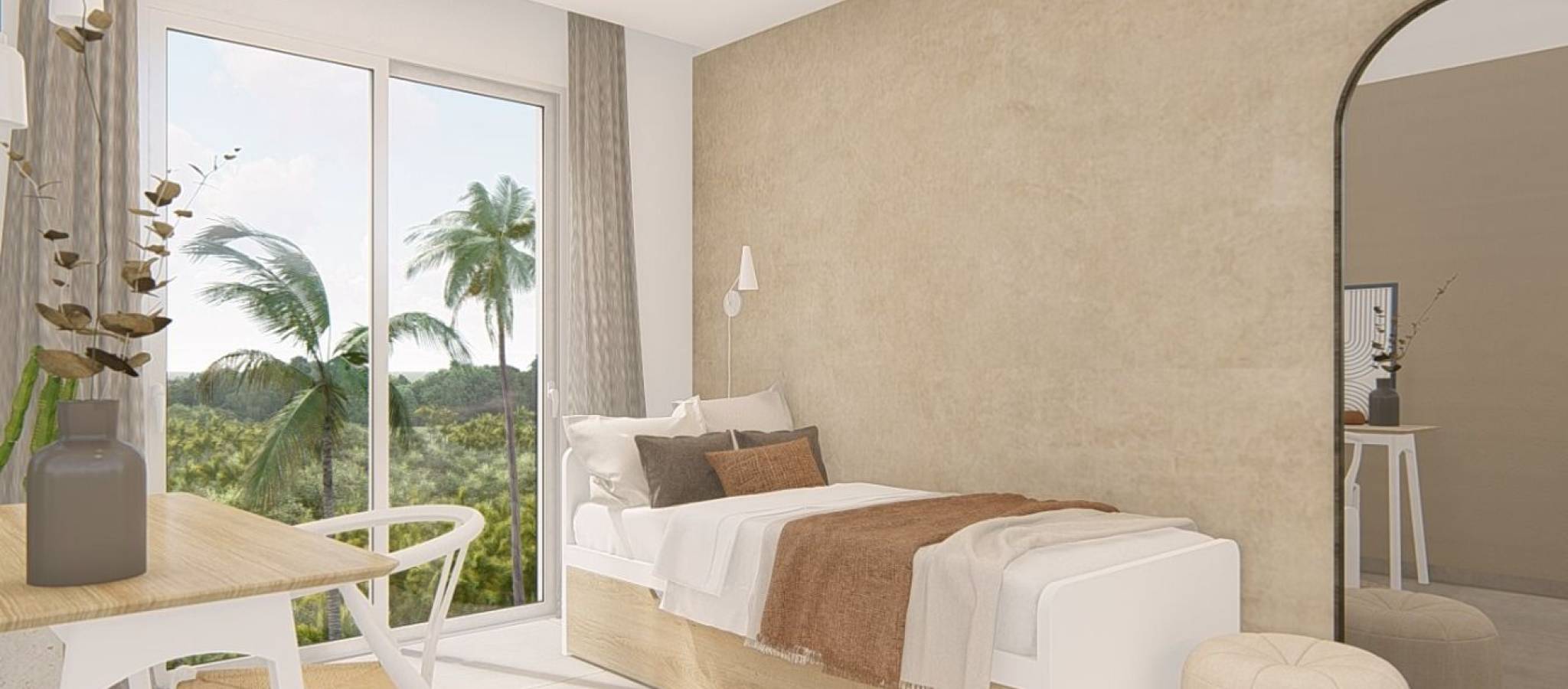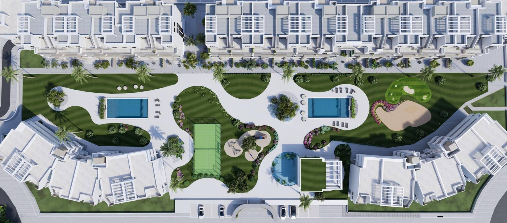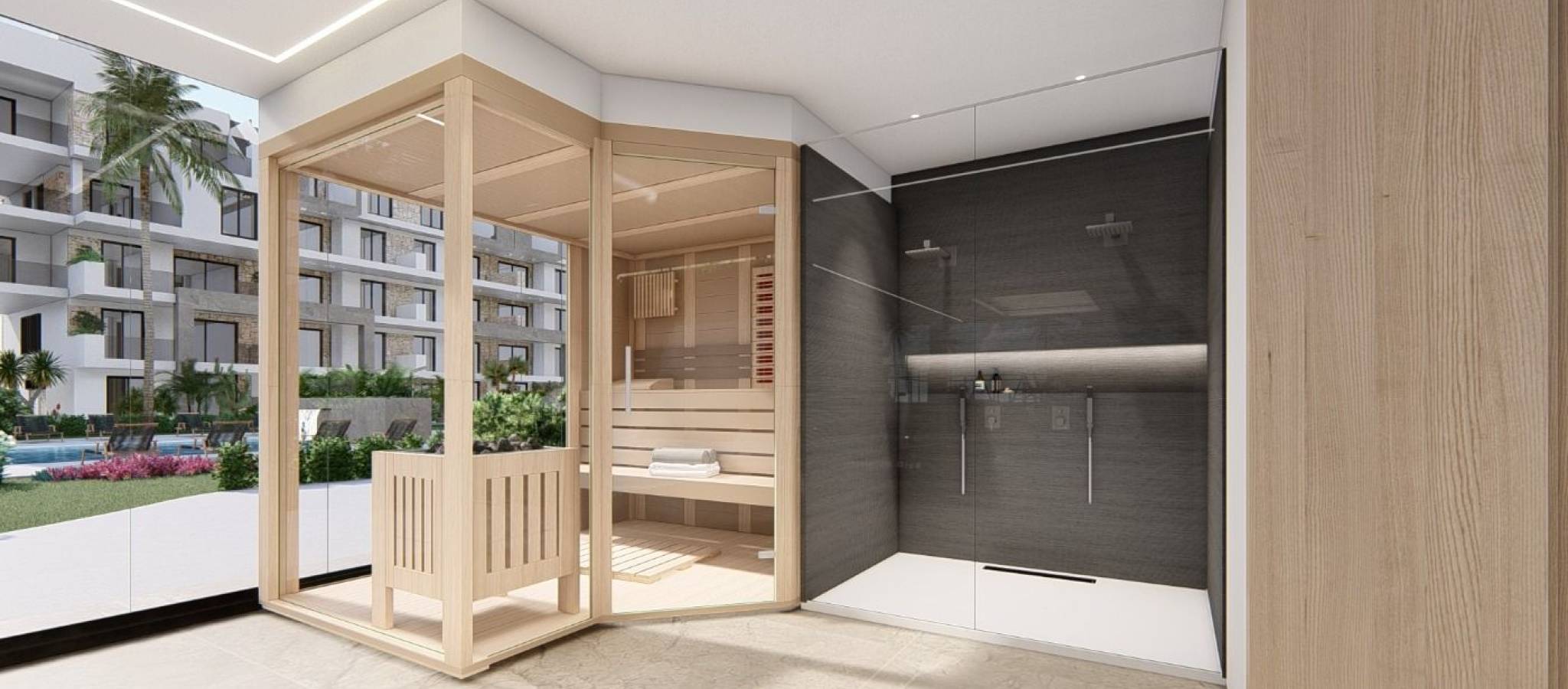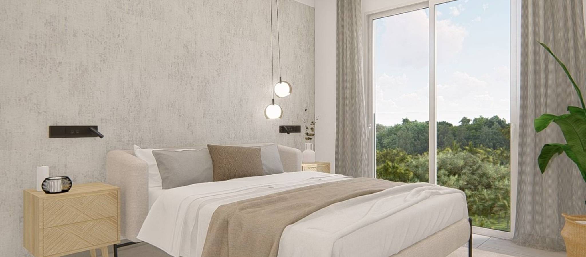 NEW BUILD RESIDENTIAL IN EL RASO, GUARDAMAR DEL SEGURA New Build private residential complex of apartments in El Raso, Guardamar del Segura. Complex consisting of 135 homes with 2 or 3 bedrooms in blocks of 3 or 5 floors plus solarium, designed in a minimalist way and with high quality standards, its modern architecture harmonises with our large open spaces, nature and swimming pools, offering a unique and peaceful atmosphere. Beautiful residential complexes, including a glassed-in GYM-Spa area with views of green areas, swimming pools and from its terrace overlooking the salt lagoon of La Mata, paddle tennis court, etc. Furniture pack included in the price. Parking space included in the price. Development is located on a unique and unrepeatable plot, bordering the natural landscape of the salt lagoon, enjoy its biodiversity and unique environment, in El Raso de Guardamar del Segura, with all kinds of services and amenities and close to the best beaches of the Mediterranean. At the same time, thanks to the proximity of El Moncayo beach, you will be able to go for a bike ride and enjoy the best climate of the Costa Blanca. Additionally and thanks to the five levels of some of the blocks that make up the residential, all of them facing south, we include in our luxury penthouses, fully equipped kitchen on the solarium, outdoor shower (hot/cold water), and jacuzzi area, to complete the unique experience of living in front of a unique and unrepeatable natural environment. El Raso is a part of Guardamar del Segura. Guardamar del Segura is a town located on the Costa Blanca South. With its 11 kilometres of natural beach and its large pine forest. Guardamar del Segura has a large port with activities throughout the year, it has a large sports centre with paddle tennis, tennis, soccer and a large heated swimming pool that works all year round. It also has a library where there is free wifi and computers. Guardamar del Segura is only 20km away from the Alicante - Elche (El Altet) airport, where there are many flights every day with connections to the main European cities, due to the demand for tourists on the Costa Blanca.