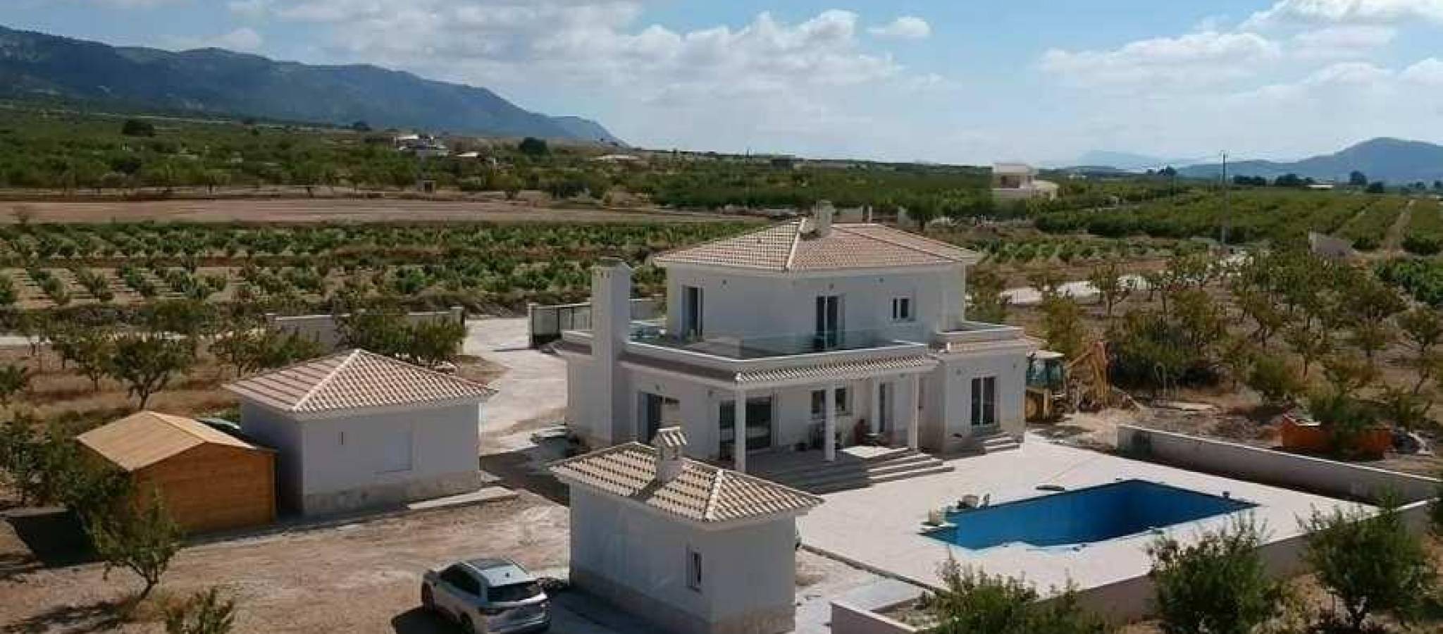 New build villas in Pinoso on rural plots You can choose villas with traditional Spanish touches or super modern, bright and clean finishes. There are several sizes to choose from, with 3 to 6 bedrooms and 1 or 2 floors. Different legal plots available to choose from (rustic with a minimum of 10,000 m2), some within walking distance of the town, some completely private and the most popular ones are 5-10 minutes' drive from a town. We have a plot to suit every taste, all with stunning views and all with mains water + electricity included in the price and high-speed internet available. The published price includes €30,000 for the plot. If the chosen plot costs more, the difference will be paid. From the largest and best builder in the area, we use top quality materials for a perfect finish. All houses include a 2m stamped concrete terrace around the pool (colour and pattern of your choice), 1m around the house, enclosed entrance, 3,000 m² fencing, pre-installation of ducted air conditioning, standard kitchen, security door, German tilt-and-turn windows (or sliding windows if preferred), built-in fireplace (traditional finish), pre-installation of television and internet, gravel path around the house, septic tank. The bathrooms include shower column, shower tray or bathtub, washbasin units (various colours to choose from) with sinks, taps and mirrors, as well as a large selection of wall tiles. Wide selection of ceramic floor tiles, in different colours, wood effect, etc. Kitchens include cupboards with standard doors and handles, stainless steel sink and tap, pre-installation for oven, dishwasher and extractor fan. Choice of several granite worktops. Appliances not included. Marble staircase (cream, white or grey) and railings included, plus railings for the front porch. You can customise the house to your liking, most internal changes are free of charge, and you can choose finishes for tiles, kitchen worktops, marble for stairs or shelves, etc. The houses can be extended and we can even build your own design. You can add various extras such as a larger swimming pool, single or double garage, guest house, etc., at an additional cost. The town of Pinoso is approximately 45 minutes inland from Alicante and the white sandy beaches of the Costa Blanca and close to the border of Murcia, Alicante. It has a population of just under 8,000. Pinoso, also known as El Pinos, owes its name to the pine trees that cover the mountains in the area. Pinoso offers a rural Spanish lifestyle, with no traffic lights and almost no traffic. Practically the only traffic jams are caused by tractors taking grapes to the winery. The fields are planted with vines, almond trees and olive trees. In February, the fields are filled with pink almond blossoms. Pinoso has many bars, restaurants and shops, a new 24-hour medical centre, dentists, two primary schools and one secondary school, and a theatre. There is an excellent sports centre with outdoor swimming pools, tennis courts, football pitches and a gym, a library and many other facilities, including a beautiful picnic area among the pine trees, with barbecues, seating areas and running water.