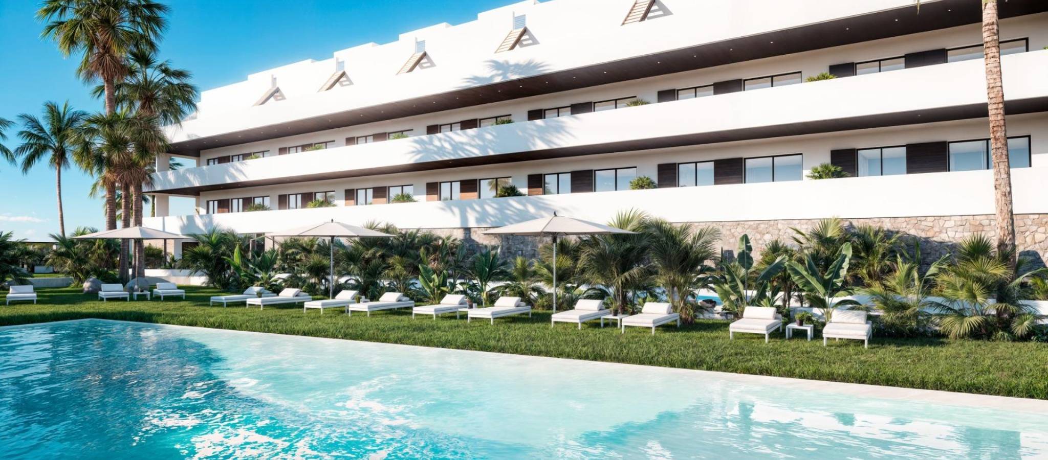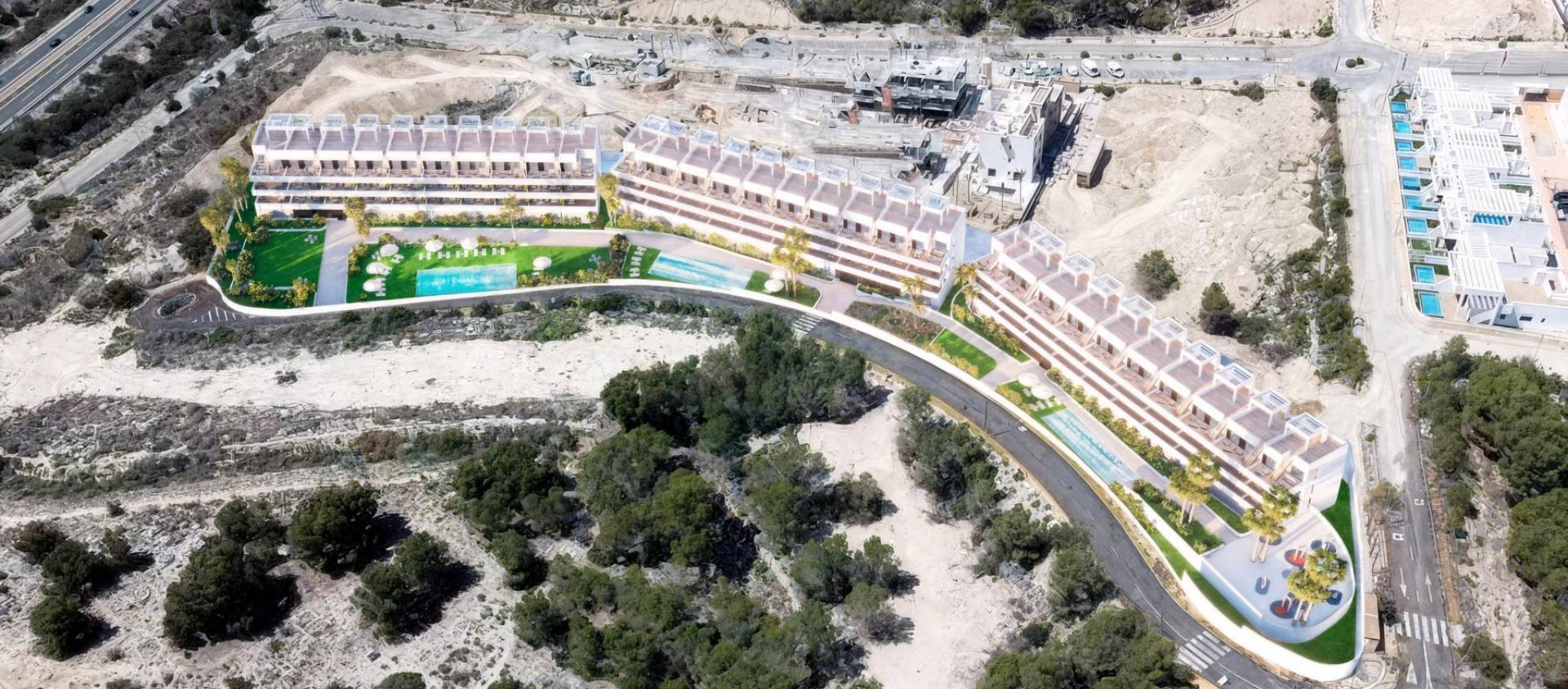 Exclusive New Build Residences with Sea Views in Finestrat, Alicante Prime Location with Panoramic Views of Benidorm and the Mediterranean Discover a unique and luxurious new development in Finestrat, Alicante, offering an exclusive lifestyle on the Costa Blanca. This gated residential complex features 99 modern apartments with 2 bedrooms and 2 bathrooms, just 2.3 km from the beaches of Benidorm, with breathtaking views of the Mediterranean Sea and the city skyline. Set in an elevated position, the development enjoys a peaceful natural environment while remaining close to the lively urban centre of Benidorm. Finestrat is a highly sought-after area that combines tranquility, nature, and proximity to all essential services. Premium Amenities for a Mediterranean Lifestyle Designed with comfort and leisure in mind, the residential complex includes: Three communal swimming pools for relaxation and enjoyment Indoor and outdoor gyms for fitness enthusiasts Children’s playground and padel court for family fun Landscaped green areas and walking paths for peaceful strolls All apartments are built with top-quality materials and finishes, such as: Aluminium windows with thermal break and double glazing for energy efficiency and noise insulation LED lighting throughout the home Furnished bathrooms with backlit mirrors Armoured entrance door for maximum security Outstanding Connectivity and Services The development offers excellent connections to key points of interest: Alicante International Airport – only 55 km (around 40 minutes by car) La Marina Shopping Centre – just 3 km away, featuring shops, restaurants, and entertainment options Levante and Poniente beaches – under 10 minutes by car Puig Campana Natural Park – ideal for hiking, cycling, and outdoor activities Renowned theme parks such as Terra Mítica and Aqualandia – within 5 km Close to leading medical centres and public and private schools Modern Design and Natural Light Each home is designed to make the most of natural light through expansive windows that frame stunning views of Benidorm and the sea. The interiors offer open-plan layouts, functional spaces, and superior insulation for year-round comfort. Whether you are seeking a permanent home, a vacation property, or a sound investment, this new development in Finestrat delivers a blend of serenity, luxury, and proximity to the vibrant city of Benidorm. Secure Your Dream Property on the Costa Blanca Don't miss this opportunity to own a beautiful new apartment in one of the most desirable areas of Alicante. Contact us today to request more information, schedule a visit, or reserve your new home in Finestrat.