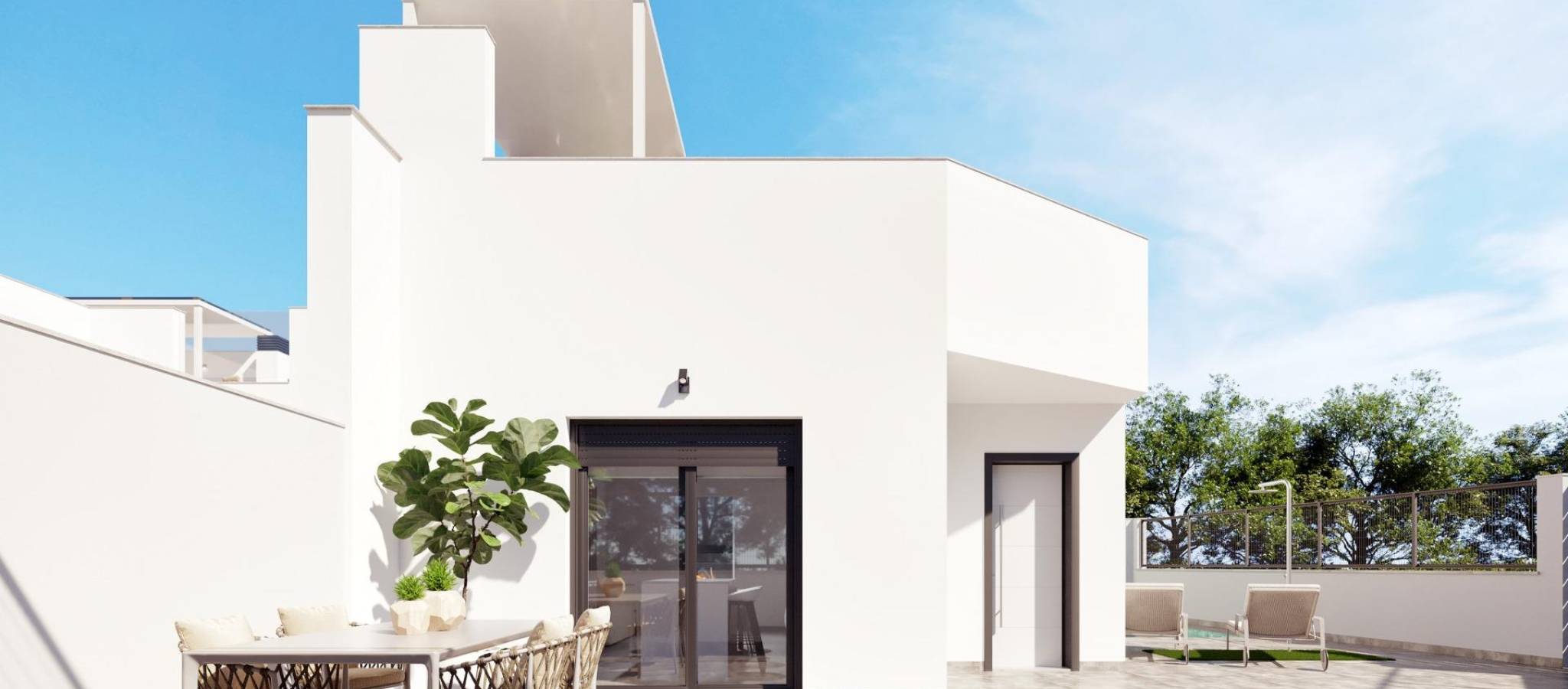 NEW BUILD RESIDENTIAL IN TORRE-PACHECO New build development of 8 townhouses and quads located in Torre-Pacheco Modern properties with 2 bedrooms and 2 bathrooms, open plan kitchen with living room, fitted wardrobes, terrace, private solarium, garden with the pool and parking space. These exclusive homes are designed with elegant and functional interiors, fully equipped kitchens, electrical appliances included. The bathrooms have a vanity unit with washbasin and light. The bedrooms include lined wardrobes with drawer units and each property has pre-installation for ducted air conditioning. The exteriors are no less impressive, including a private swimming pool and a large solarium with summer kitchen so you can enjoy the sun all year round. In addition, the properties have pre-installation for electric car chargers. Located next to Club de Golf, Torre Pacheco, where you will find all amenities including bars, restaurants, supermarkets and banks and a 15min drive to the lovely beaches of the Mar Menor. Torre Pacheco is surrounded by award winning golf courses and the whole region is regarded as one of the healthiest places to be in Spain. This ideal location gives you so much more for your money. Within walking distance to local amenities and many bars and restaurants. Motorway network nearby to enable you to travel to other areas quickly and easily. Murcia international airport is 20 minutes away.