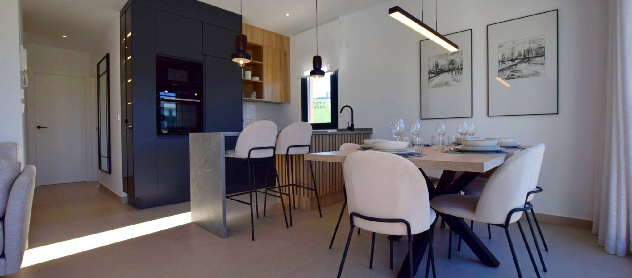 NEW BUILD APARTMENTS IN CONDADO DE ALHAMA GOLF COURSE New Build residential complex of villas and apartments in Condado de Alhama. Beautiful 8 apartments are distributed between ground, first, second and third floor, with two properties on each floor and a lift to move from one to other level. There are a several community swimming pools, outdoor parking space for each apartment, storage area and terrace with Summer kitchen. The top floor properties have a solarium. The two ground floor apartments have 3 bedrooms and 2 fully-fitted bathrooms and the rest of the properties have 2 bedrooms and 2 fitted bathrooms as well. The properties have been designed with a contemporary style and an open planned concept, consisting of a fitted kitchen and a living-dining room. The development is located in Condado de Alhama, Murcia, within a luxury resort, with sports areas and surrounded by nature, all services, and several Golf Courses. The property will meet the highest standards and will be equipped with: Community swimming pools with ample green areas. Kitchen completely furnished and equipped with oven and microwave elevated and in column, integrated fridge and dishwasher, induction hob and extractor fan. Lighting: inside the property (dining room, kitchen, corridors and bathrooms), as well as in outdoor areas. Lined wardrobes with drawers and shelves. Fully fitted bathrooms with vanity unit, suspended toilet, mirror, wall-mounted shower and shower screens. Pre-installation for ducted air conditioning. Summer kitchen on the terraces. Solarium on the top floors. Outdoor parking space with storage area. Lift (from ground floor to 3rd floor). Condado de Alhama Golf Resort is a fantastic Golf Resort with many facilities and services . A shopping centre, a sports centre, a variety of bars and restaurants, supermarkets and over 25 communal swimming pools and gardens. Condado de Alhama Golf Resort has its own Jack Nicklaus designed golf course and is only 15 minutes from the beautiful beaches of Bolnuevo and Mazarron. Mazarron has over 35 km of coastline, much of which is unspoilt coastline. Numerous beaches in the Bay of Mazarron have been awarded the Blue Flag for their quality. Condado de Alhama Golf Resort is only 20 minutes from the new Corvera International Airport.