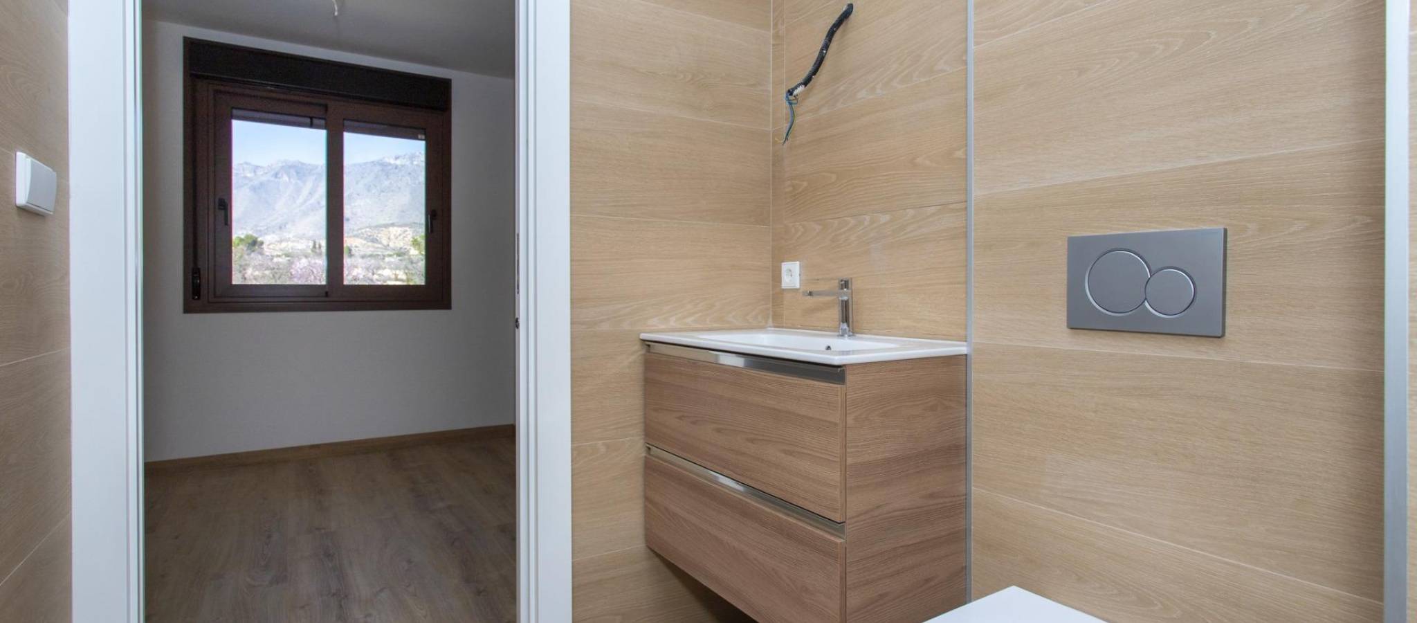 NEW BUILD BUNGALOWS IN HONDON DE LAS NIEVES New Build 4 bungalows located in Hondón de las Nieves (Alicante) All bungalows have 3 bedrooms with fitted wardrobes, 2 bathrooms, large living room, fitted kitchen and terrace. The properties are available on the ground floor with front and rear terrace/garden and on the top floor with terrace and private solarium. The first floor properties have photovoltaic panels on the roof for energy saving. The kitchens are fully furnished and finished with granite or synthetic agglomerate worktops (silestone or simular). The bathrooms are finished with high quality sanitary ware and taps with built-in cistern. These homes have pre-installation for ducted air conditioning with heat pump, forced ventilation with heat recovery, aerothermal system for domestic hot water, the most modern thermal and acoustic insulation, aluminium exterior carpentry with thermal bridge break and shutters. Hondón de las Nieves is a town in the Valencian Community, Spain. It is located in the southwest of the province of Alicante, in the region of Vinalopó Medio. The beaches and Alicante Airport are closely just 30 minutes drive away.