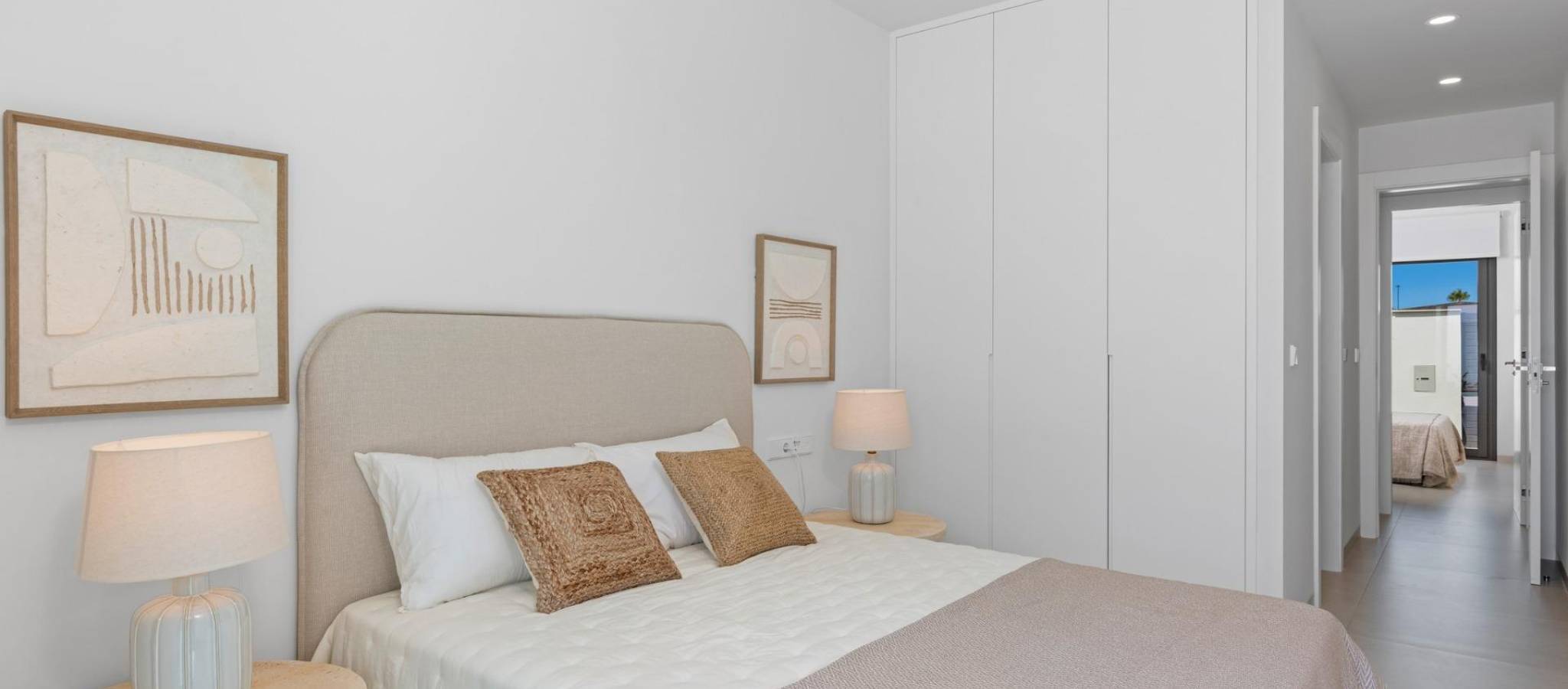 New Build Villas Near Serena Golf in Los Alcazares Modern Villas in a Prime Coastal and Golf Location This exclusive new build residential project offers modern villas located in Los Alcazares, just a short distance from the prestigious Serena Golf and only 1.2 km from the sandy beaches of the Mar Menor. Set in one of the most attractive areas of the Region of Murcia, these homes combine contemporary design, comfort and an excellent location close to the sea, golf and all daily services. Los Alcazares is a well established coastal town known for its relaxed lifestyle, long promenade, water sports and mild climate throughout the year. Single Level Design with Private Outdoor Spaces The development features stylish villas with 3 bedrooms and 2 bathrooms, available in two different built sizes of approximately 106 sqm and 130 sqm. The larger model also includes an additional guest toilet. All villas are designed on a single floor, offering practical and comfortable living. The open plan kitchen, dining and living area connects directly to a terrace and private garden with swimming pool, creating an ideal space for indoor and outdoor living. Each property also includes a private solarium and on plot parking. High Quality Finishes and Modern Equipment These villas are built with high quality materials and equipped with modern features. The fully fitted kitchens are available in white gloss or wood finish and include quartz worktops, stainless steel sink, induction hob with integrated extractor, oven, microwave, washing machine, integrated fridge and dishwasher. Bathrooms are fitted with furniture, mirrors, lighting and electric towel heaters. Additional features include electric blinds in bedrooms, LED lighting throughout the property and a complete ducted air conditioning system by Fujitsu. Private Pool and Energy Efficient Comfort Each villa includes a private swimming pool finished with blue ceramic tiles, integrated steps and white LED lighting. The pool is prepared with pre installation for a heat pump. The combination of efficient climate control, modern construction and thoughtful design ensures comfort all year round. Excellent Connectivity and Key Distances The villas are within walking distance of the town centre of Los Alcazares and very close to Serena Golf. The beach is approximately 1.2 km away. Cartagena city is around 20 km away, offering a rich cultural and gastronomic scene. Murcia Corvera International Airport is about 22 km away, and Alicante Airport is approximately 90 km. Several golf courses and marinas are also nearby, making this location ideal for both permanent living and holidays. Your Ideal Home by the Sea and Golf If you are looking for a modern new build villa near the beach and golf in Los Alcazares, contact us today for more information or to arrange a private viewing.