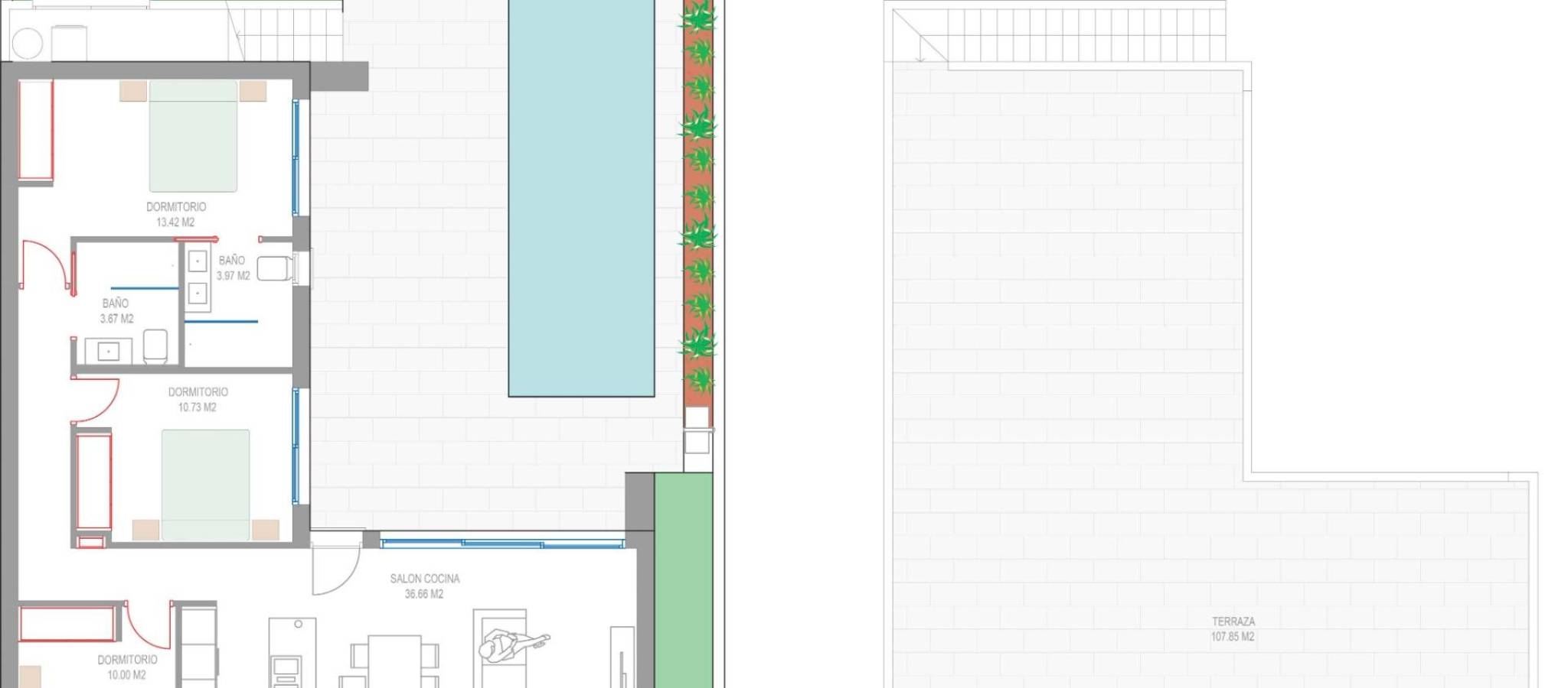 Here you can enjoy all of the facilities that San Javier has to offer such as the local shops, bars and restaurants as well as being near to shopping centres, the airport of Murcia and all of the beautiful places to be found along the Mar Menor.
