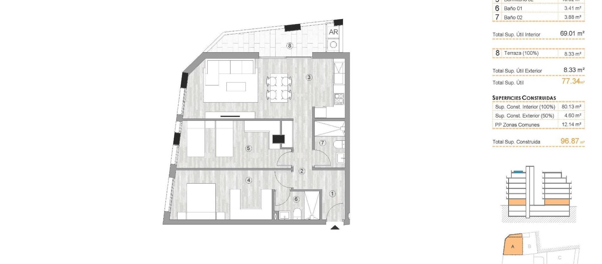 New Build Apartments in the Heart of Torrevieja Just 400 m from Playa del Cura Prime Location in Central Torrevieja This new residential building enjoys an unbeatable location in the center of Torrevieja, only 400 m from Playa del Cura. Surrounded by shops, supermarkets, restaurants and daily services, it offers everything you need within walking distance. The area also provides access to parks, leisure zones and green areas, creating a perfect balance between urban convenience and moments of relaxation. Modern Homes With 2 and 3 Bedrooms The development offers a selection of 2 and 3 bedroom apartments, including penthouses, some of them with private solariums. Each home is designed with a contemporary style, featuring open plan layouts, large terraces and integrated American style kitchens. Bathrooms come fully equipped with furniture, shower screens and underfloor heating. The kitchens include appliances, and each apartment has preinstallation for ducted air conditioning. Optional underground parking and storage rooms are available. Resort Style Facilities for Wellbeing Residents can enjoy a range of exclusive amenities. The ground floor features a fully equipped gym, ideal for daily workouts. The rooftop solarium provides a true relaxation oasis with sunbeds, a Finnish sauna and a mini pool. Both the elevator and stairs connect directly to the rooftop for maximum convenience and accessibility. Living in a Unique Natural and Coastal Environment Torrevieja is known for its warm Mediterranean climate, with an average annual temperature of 20ºC, making it a perfect place to live year round. The city is famous for its natural salt lagoons and the protected Natural Park of La Mata and Torrevieja, located only 4 km from the development. Its pink and green lakes, scenic walking routes and rich biodiversity offer a healthy and inspiring lifestyle. Distances to Key Points of Interest Playa del Cura 0.4 km Torrevieja Marina 1 km La Mata Natural Park 4 km Villamartin Golf 8 km Alicante Airport 45 km Murcia Airport 60 km Experience the Mediterranean Lifestyle Do not miss the opportunity to own a modern home in one of the Costa Blanca’s most desirable coastal cities. Contact us today to arrange a visit and secure your place in this exceptional new development.
