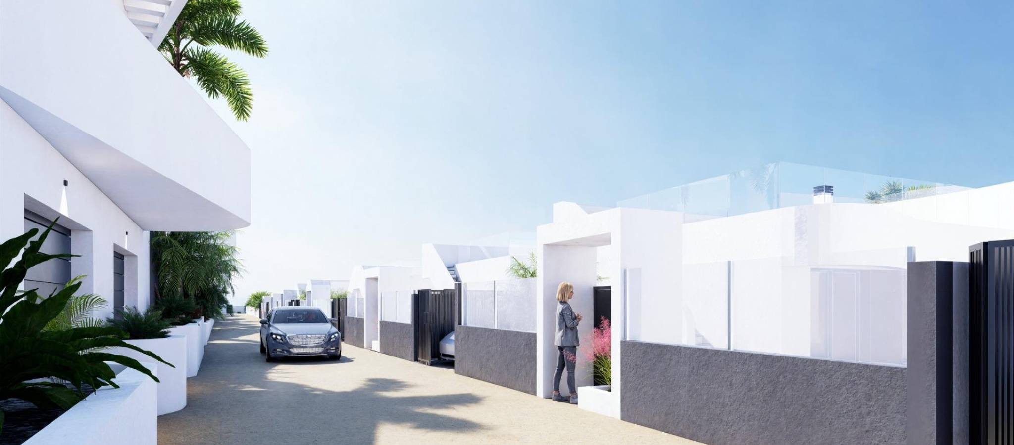 New Build Villas in La Finca Golf Resort Algorfa Exclusive New Development in a Prestigious Golf Setting This new residential development of 53 modern villas is located in the renowned La Finca Golf Resort in Algorfa, one of the most sought after areas of the Costa Blanca South. Surrounded by lush green landscapes, citrus groves and the rolling fairways of the golf course, this location offers tranquillity, privacy and a high quality Mediterranean lifestyle, while remaining close to essential services and the coast. Choice of Villa Models and Layouts The project offers a wide selection of detached and semi detached villas in three different sizes of approximately 98 m2, 111 m2 or 135 m2. Homes are available on one or two levels and all feature three bedrooms and two bathrooms. The larger models also include a guest toilet. Villas on one level enjoy a spacious private rooftop solarium, while two level homes feature a large open terrace on the upper floor. Some units include a basement and others offer this option at an additional cost. All villas come with a private swimming pool and parking space within the plot. Ibiza Style Design and Outdoor Living The villas stand out for their elegant Ibiza style design with soft curved lines and bright white finishes that blend perfectly with the natural surroundings. Spacious outdoor areas are designed to enjoy the mild climate all year round, offering ideal spaces for relaxing, entertaining and making the most of outdoor living in a peaceful golf environment. High Quality Specifications and Comfort All homes are built to a high standard and include a reinforced security entrance door, fully fitted kitchens, pre installation for ducted air conditioning and an aerothermal system for domestic hot water. These features ensure comfort, energy efficiency and modern living, whether as a permanent residence or a holiday home. La Finca Golf Resort and Algorfa Lifestyle La Finca Golf Resort is known for its championship golf course, luxury hotel, spa facilities, restaurants and sports areas, all within a secure and well maintained environment. Algorfa is a charming Spanish town offering local shops, traditional restaurants and a relaxed atmosphere, while nearby towns provide a wider range of services and amenities. Key Distances and Connections La Finca Golf Course is located within the resort. Guardamar del Segura beaches are approximately 14 km away. Shopping centres in Torrevieja and Orihuela Costa are around 15 km. Almoradi, Benijofar and Ciudad Quesada are between 5 and 10 km. Alicante International Airport is approximately 35 km away. A Smart Investment on the Costa Blanca With over 300 days of sunshine per year, excellent road connections and proximity to golf, beaches and shopping areas, these villas are ideal for living, holidays or investment. Contact Us Today Secure your new villa in La Finca Golf Resort today. Contact us now for more information or to arrange a private viewing.