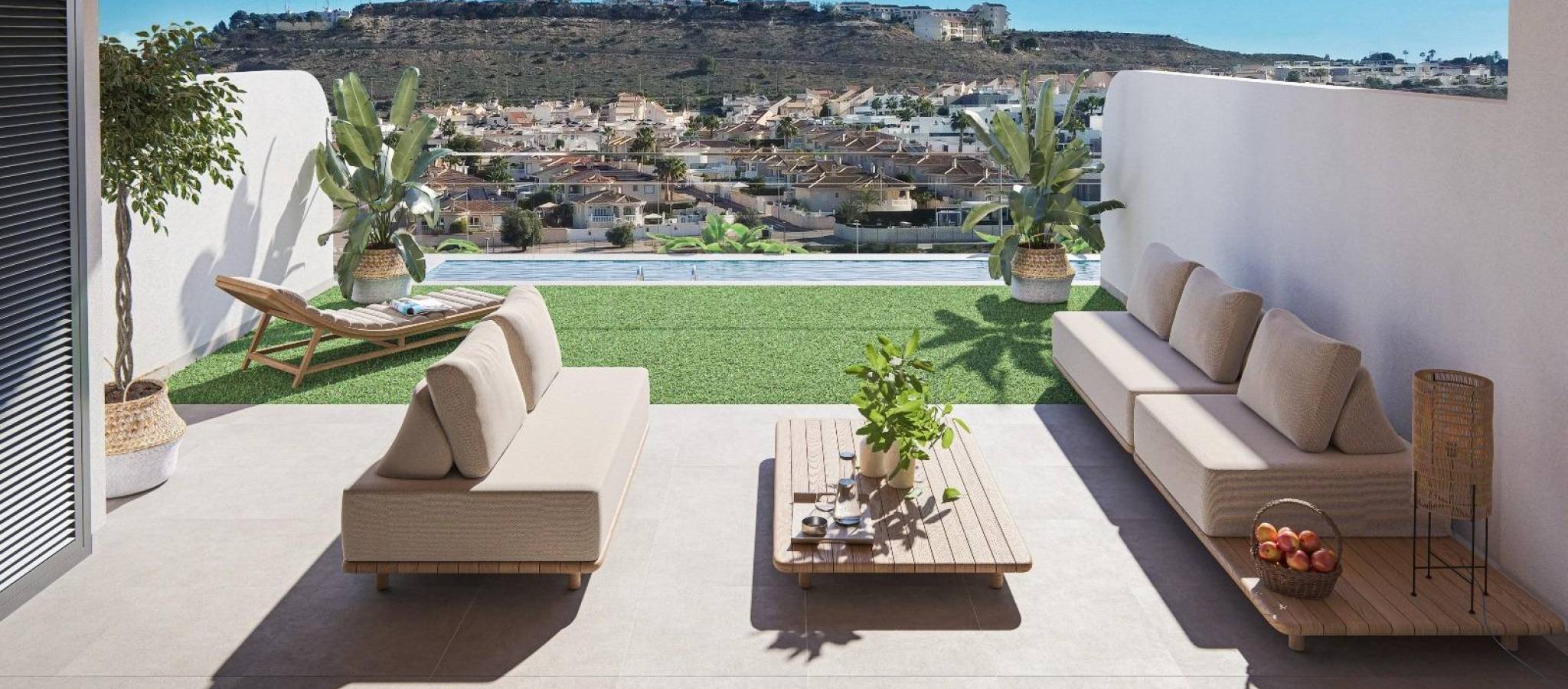New Build Apartments in Benijofar Modern Living in a Prime Location Exclusive New Development on the Costa Blanca South This new residential development consists of 18 modern apartments located at the entrance of Benijofar, within walking distance of the town centre. Set in one of the fastest growing areas of the Costa Blanca South, the project combines contemporary architecture, quality materials and a strategic location, ideal for both permanent living and investment. Apartment Types to Suit Every Lifestyle The development offers spacious apartments with three bedrooms and two bathrooms, including one ensuite. Buyers can choose between ground floor homes with large terraces and private gardens, middle floor apartments with generous terraces, or penthouses with terrace and private solarium. The solarium include pre installation for a summer kitchen, perfect for enjoying the Mediterranean climate. Modern Design and High Level Comfort Each apartment has been carefully designed to provide bright and open living spaces with a modern and functional layout. The homes feature an open plan living and dining area, a fully fitted kitchen with upper and lower cabinets, and high quality finishes throughout. The bedrooms are spacious and comfortable, while the bathrooms are fitted with modern materials and elegant details. The residential complex includes a communal swimming pool and landscaped gardens, creating a relaxing environment for residents. All homes are equipped with pre installation for ducted air conditioning and heating, exterior carpentry with thermal break and double glazing, aerothermal system for hot water, and a reinforced security entrance door. Each apartment also includes a private parking space and storage room in the basement, with lift access to all floors. Benijofar A Charming Town with Full Services Benijofar is a well established Spanish town that offers a perfect balance between traditional charm and modern living. The town centre features local shops, supermarkets, pharmacies, restaurants and a welcoming atmosphere all year round. Nature lovers can enjoy nearby green areas and walking routes, while golf courses and leisure facilities are just a short drive away. Excellent Connections and Key Distances Guardamar del Segura beaches are approximately 9 km away. La Finca Golf and La Marquesa Golf courses are around 6 km from the development. Water parks in Rojales and Torrevieja are located at approximately 4 km and 12 km. Zenia Boulevard shopping centre is about 17 km away. Alicante International Airport is approximately 35 km, offering regular flights across Europe. An Ideal Home or Investment Opportunity Thanks to its modern design, excellent location and strong rental demand in the area, these apartments are ideal as a permanent residence, holiday home or smart investment on the Costa Blanca. Contact Us Today Discover your new apartment in Benijofar. Contact us now for more information or to arrange a private viewing.