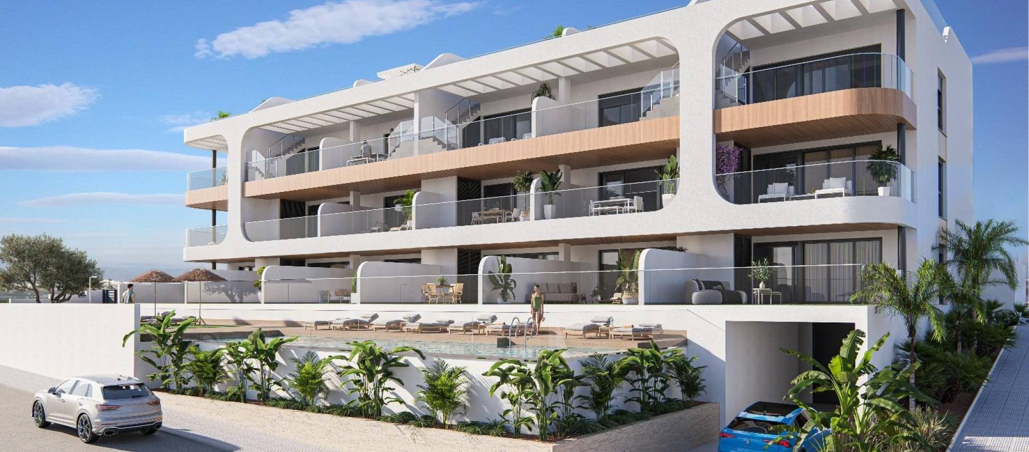 New Build Apartments in Benijofar Modern Living in a Prime Location Exclusive New Development on the Costa Blanca South This new residential development consists of 18 modern apartments located at the entrance of Benijofar, within walking distance of the town centre. Set in one of the fastest growing areas of the Costa Blanca South, the project combines contemporary architecture, quality materials and a strategic location, ideal for both permanent living and investment. Apartment Types to Suit Every Lifestyle The development offers spacious apartments with three bedrooms and two bathrooms, including one ensuite. Buyers can choose between ground floor homes with large terraces and private gardens, middle floor apartments with generous terraces, or penthouses with terrace and private solarium. The solarium include pre installation for a summer kitchen, perfect for enjoying the Mediterranean climate. Modern Design and High Level Comfort Each apartment has been carefully designed to provide bright and open living spaces with a modern and functional layout. The homes feature an open plan living and dining area, a fully fitted kitchen with upper and lower cabinets, and high quality finishes throughout. The bedrooms are spacious and comfortable, while the bathrooms are fitted with modern materials and elegant details. The residential complex includes a communal swimming pool and landscaped gardens, creating a relaxing environment for residents. All homes are equipped with pre installation for ducted air conditioning and heating, exterior carpentry with thermal break and double glazing, aerothermal system for hot water, and a reinforced security entrance door. Each apartment also includes a private parking space and storage room in the basement, with lift access to all floors. Benijofar A Charming Town with Full Services Benijofar is a well established Spanish town that offers a perfect balance between traditional charm and modern living. The town centre features local shops, supermarkets, pharmacies, restaurants and a welcoming atmosphere all year round. Nature lovers can enjoy nearby green areas and walking routes, while golf courses and leisure facilities are just a short drive away. Excellent Connections and Key Distances Guardamar del Segura beaches are approximately 9 km away. La Finca Golf and La Marquesa Golf courses are around 6 km from the development. Water parks in Rojales and Torrevieja are located at approximately 4 km and 12 km. Zenia Boulevard shopping centre is about 17 km away. Alicante International Airport is approximately 35 km, offering regular flights across Europe. An Ideal Home or Investment Opportunity Thanks to its modern design, excellent location and strong rental demand in the area, these apartments are ideal as a permanent residence, holiday home or smart investment on the Costa Blanca. Contact Us Today Discover your new apartment in Benijofar. Contact us now for more information or to arrange a private viewing.