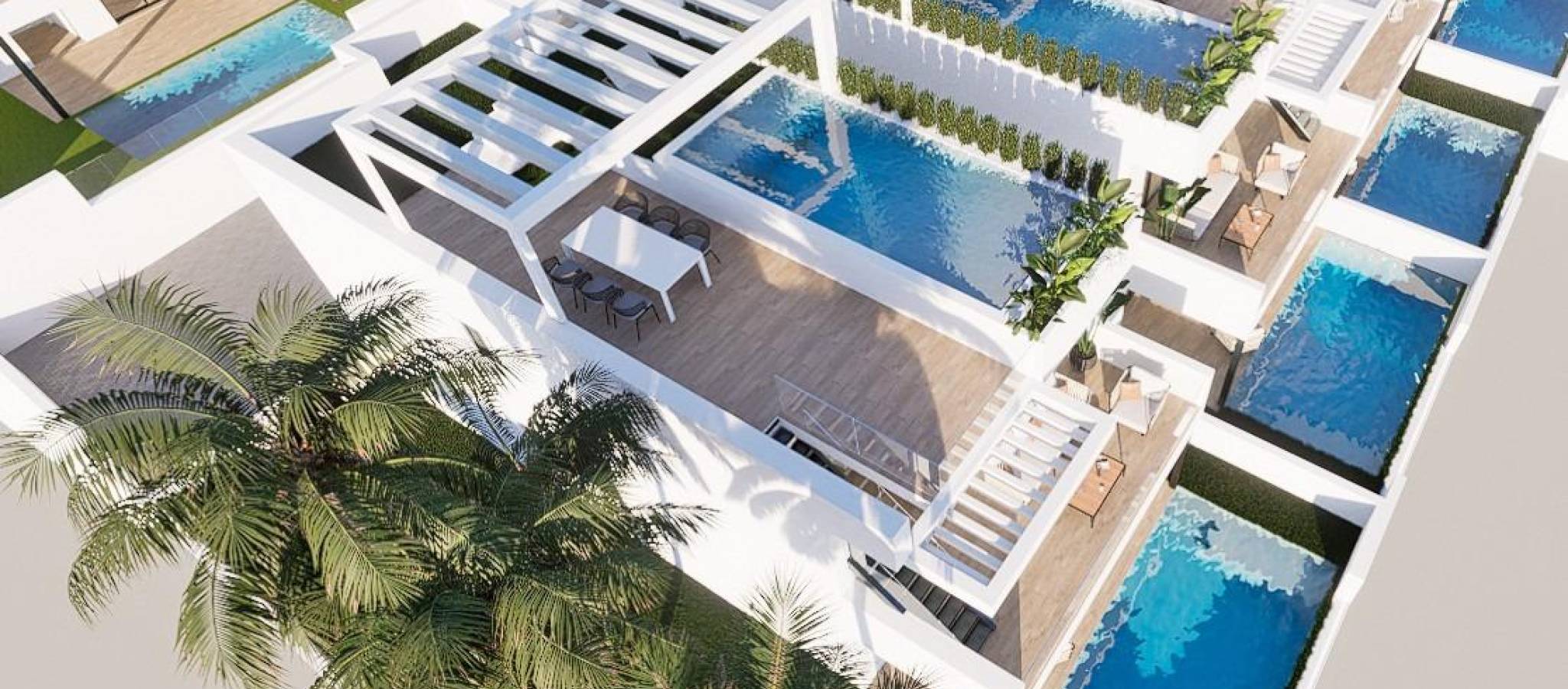 RESIDENTIAL COMPLEX OF NEW CONSTRUCTION IN FINESTRAT New construction residential complex in Finestrat located in one of the best areas to live on the Costa Blanca. The new construction complex consists of 60 bungalows with 2 or 3 bedrooms and 2 bathrooms with access to the common areas and the pool. Some units also have a private pool. All bungalows have a parking space. Some units have magnificent views of the sea and the Benidorm skyline. Finestrat is located in the Marina Baixa region of the Costa Blanca, close to neighboring Benidorm and about 40 kilometers from the city of Alicante and the international airport. Benidorm is only a five minute drive from the properties and offers all the services you may need, including shops, bars, restaurants, supermarkets, banks, pharmacies and several international private schools. Near the beaches of Levante, Poniente and Cala de Finestrat, with more than 6 km in length that are among the best in Europe awarded by the European Union with Blue Flags. All the leisure services such as the Aqua Natura, Terra Mítica, Terra Natura, Aqualandia and Mundomar theme parks, the Sierra Cortina and Villaitana golf courses, hiking and climbing in Puig Campana an incomparable natural setting or the enjoyment of water sports.