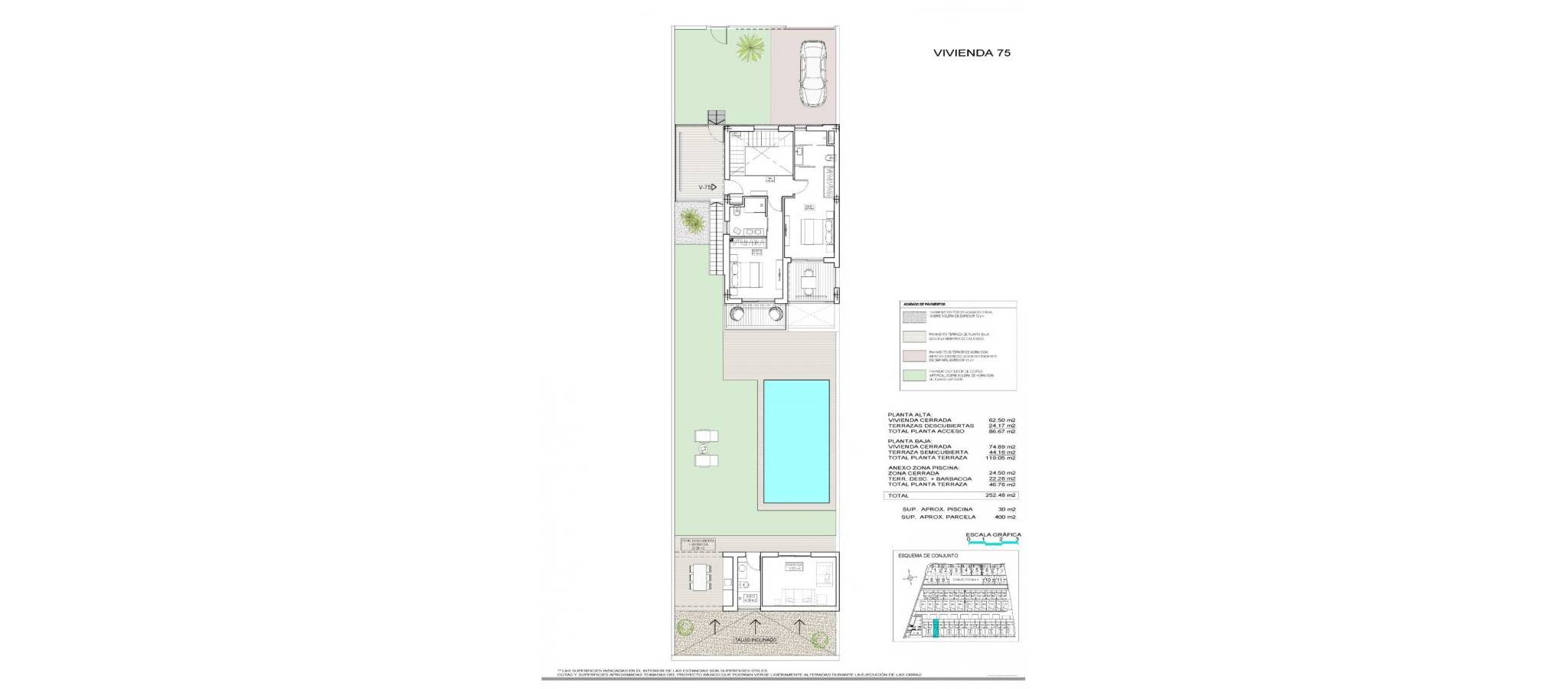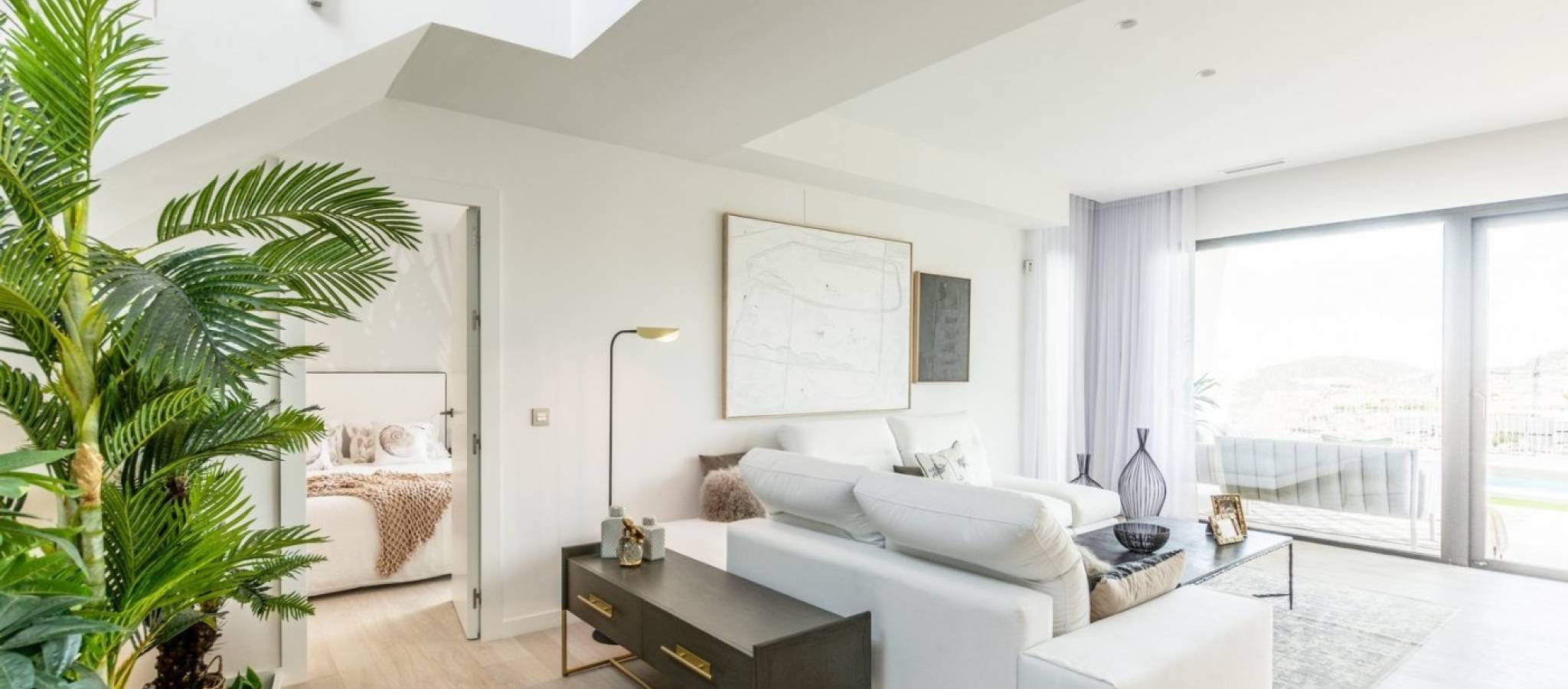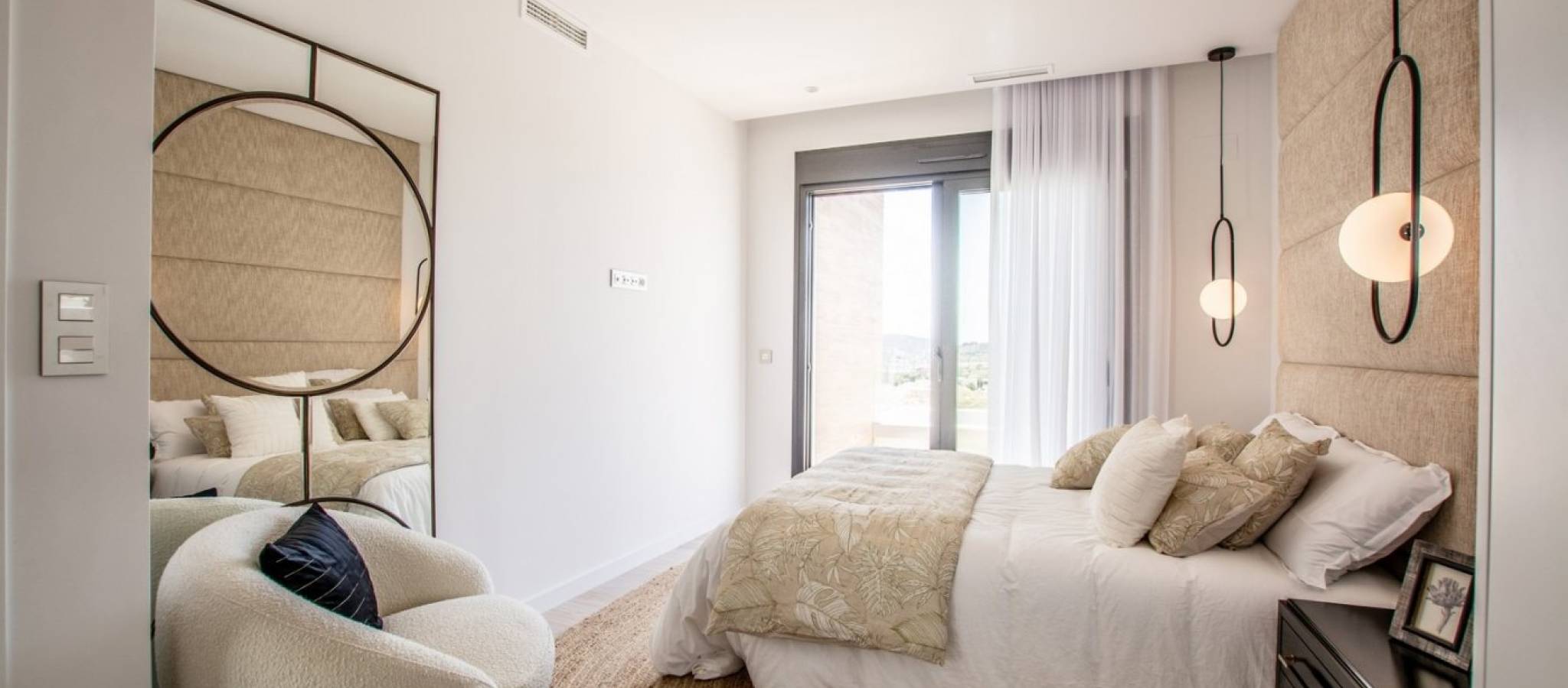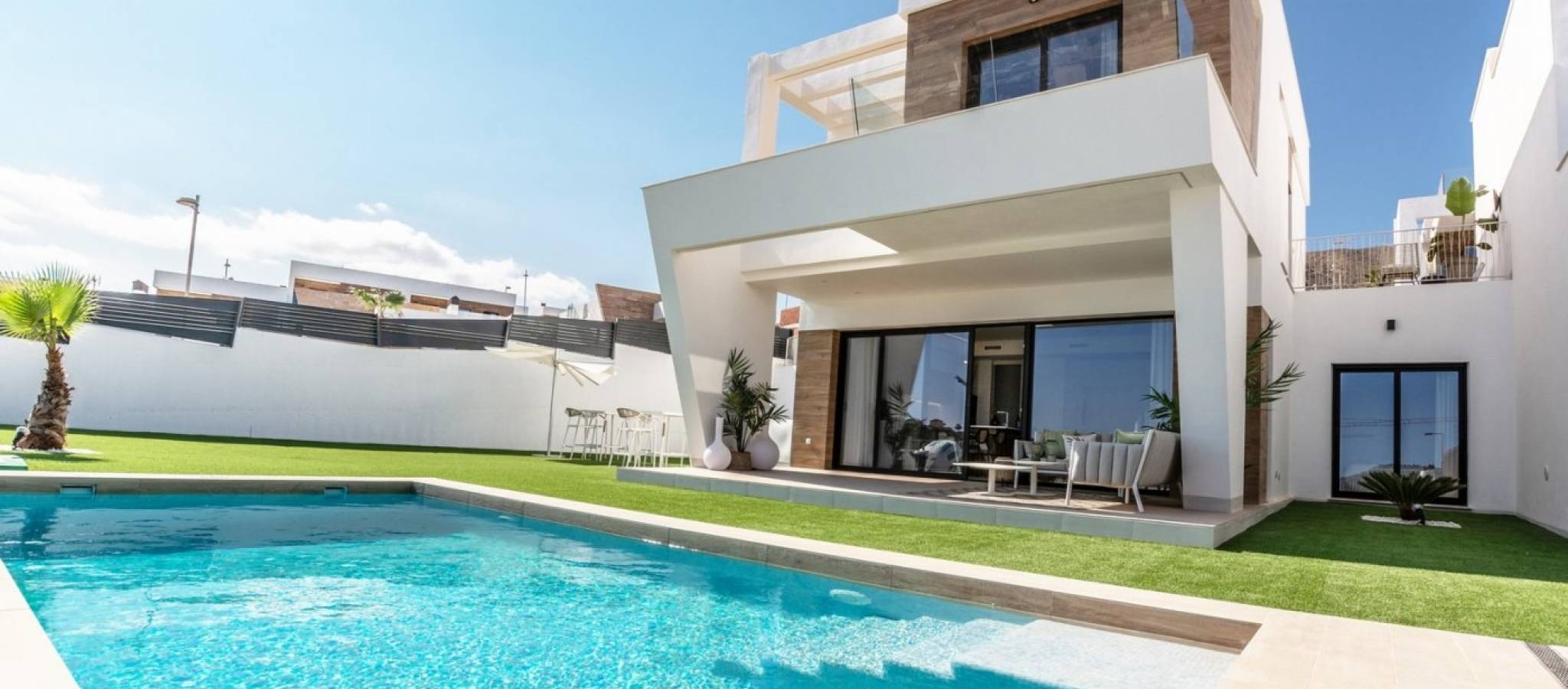 NEW BUILD VILLAS WITH PRIVATE POOL AND GUEST HOUSE New Build an exclusive residential complex of villas located in Finestrat close to the marvellous beaches of Benidorm. New model of beautiful villa with a guest house on the plot. There are 17 villas of this type for sale. The villa is built on two floors. On the ground floor, there is a bright living room, with large windows and direct access to the pool and garden, bedroom and bathroom. On the first floor, there are two suite-style rooms, with access to an open terrace. A guest house is built on one level, consisting of a bedroom and a bathroom, in addition to this, there is a cozy terrace with access to the main villa, pool and garden. Residential located 5 min by car from all the services that Benidorm can offer and in an environment with an average annual temperature of 20ºC and 300 days of sunshine a year, 44 km away from Alicante airport, 3 km from the sea and 200 meters to the golf.
