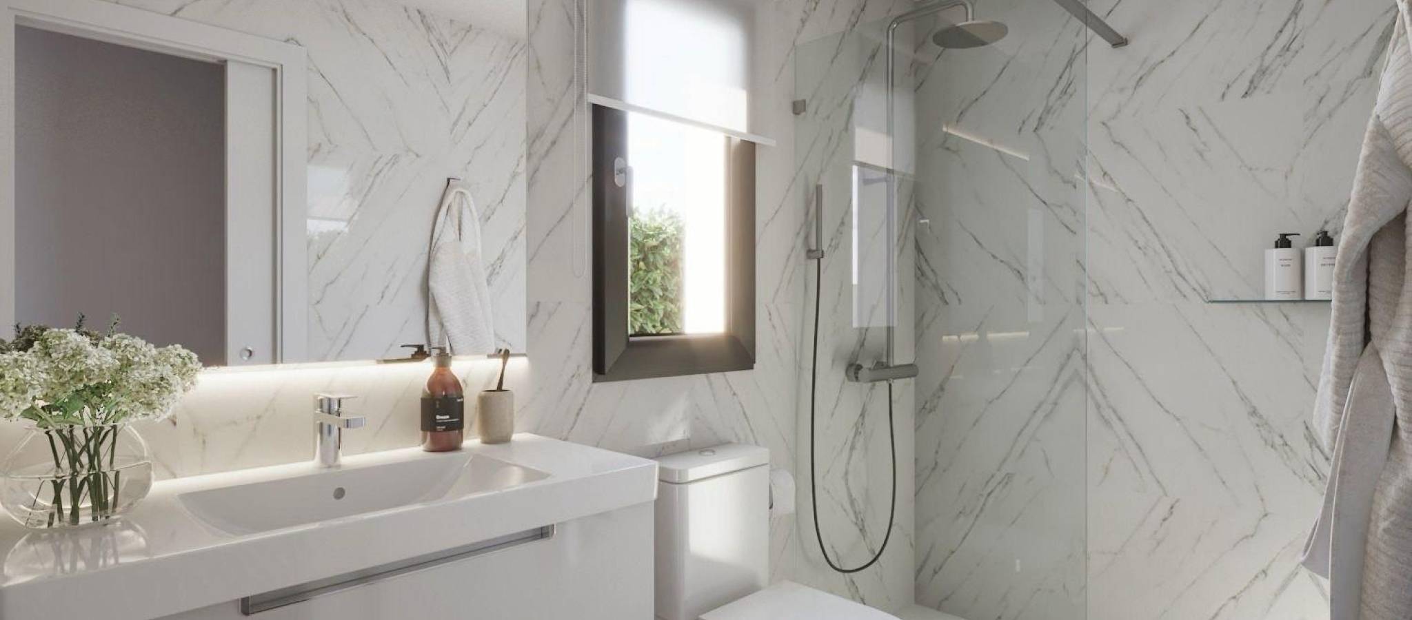 Newly built detached villas with private pools in the Mazarrón Country Club Modern villas in a quiet residential setting Discover this exclusive development of detached villas located in the Mazarrón Country Club area of Murcia. Set in a quiet residential setting and surrounded by nature, this location offers the perfect balance between tranquillity and accessibility. The Country Club is known for its relaxed atmosphere, wide streets and proximity to both the coast and the town of Mazarrón, making it an attractive option for permanent living or holidaying. Single-storey design with private outdoor spaces Each villa is carefully designed on a single storey, offering comfort and ease of living. The layout includes three spacious bedrooms and two bathrooms, one of which is en suite. The master bedroom has a walk-in wardrobe. The bright open-plan living area combines the lounge, dining room and kitchen, with direct access to the terrace and garden. Large windows allow natural light to flow throughout the house and create a seamless connection between indoor and outdoor living. The private garden features a private swimming pool and a terrace ideal for sunbathing or al fresco dining. Each property also includes parking within the plot, ensuring convenience and security. Private solarium with open views Accessible via an external staircase, the private rooftop solarium offers an additional outdoor area to enjoy the Mediterranean climate all year round. The solarium is equipped with water and electricity connections, allowing for the future installation of a summer kitchen, outdoor shower or relaxation area. This elevated space is perfect for relaxing, entertaining guests or enjoying the panoramic views of the surrounding landscape. High-quality finishes and modern comfort These newly built villas are constructed with high-quality materials and modern finishes to ensure durability and comfort. Features include fitted wardrobes in all bedrooms, pre-installation for ducted air conditioning, and pre-installation for the kitchen, offering buyers the opportunity to customise the interior to suit their personal style. The contemporary design and practical layout make these homes suitable as a permanent residence, holiday home or smart investment. Convenient location near Mazarrón and the coast The development is located approximately 9 km from the beaches of Mazarrón and only 5 km from the town of Mazarrón, where all essential amenities can be found, including shops, restaurants, medical centres and schools. The area also benefits from easy access to the motorway, allowing for smooth connections to nearby towns and cities. Key distances to points of interest Town of Mazarrón: 5 km Beaches of Mazarrón and Bolnuevo: 9 km Mazarrón marina: 14 km Golf courses: 20 km Murcia Corvera Airport: 45 km Cartagena town: 35 km Your new home on the Costa Cálida Enjoy privacy, comfort and outdoor living in one of these exclusive new-build villas at Country Club Mazarrón. Contact us today for more information or to arrange a viewing and secure your place in this attractive residential area.