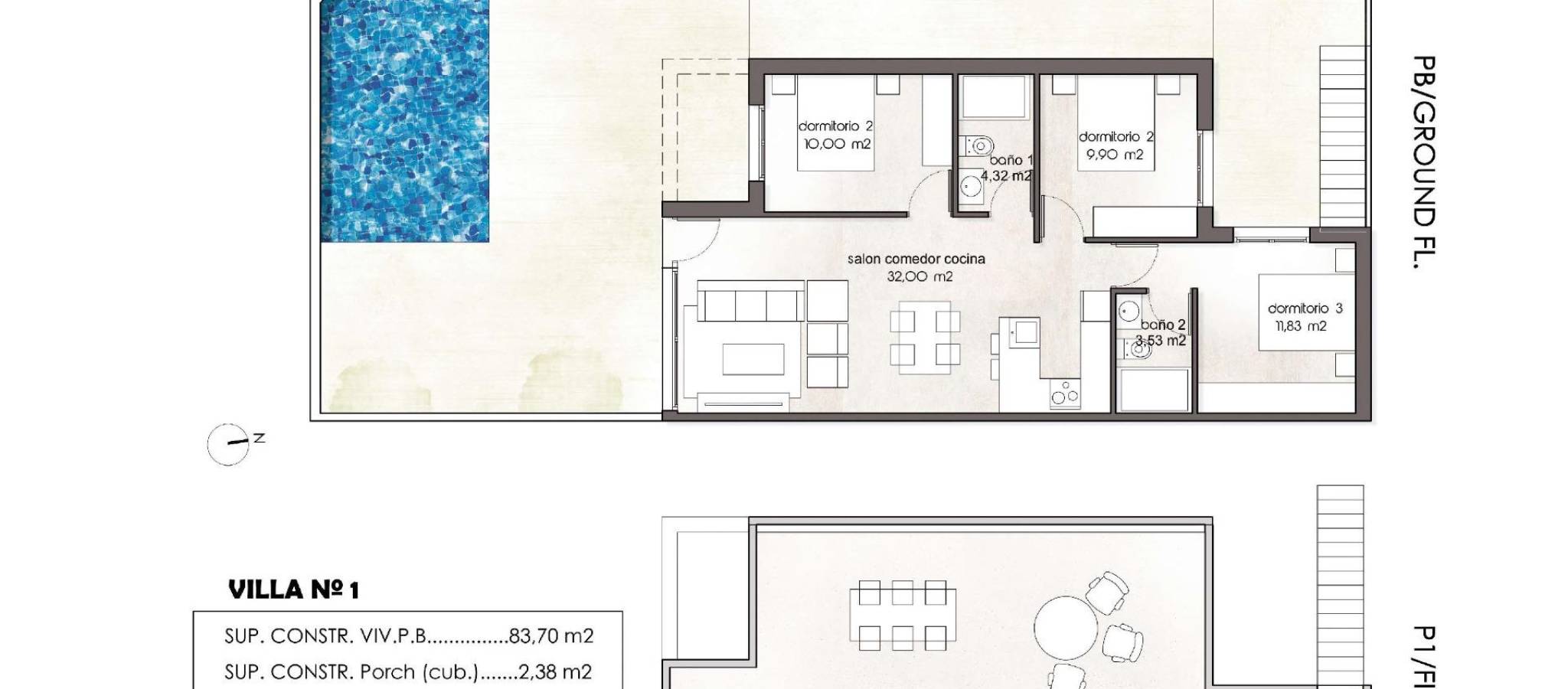 NEW BUILD SEMI-DETACHED VILLAS IN PILAR DE LA HORADADA New Build semi-detached villas located in Pilar de la Horadada. Villas build on 1 floor and has private solarium, 3 bedrooms, 2 bathrooms, open plan kitchen with the living room, garden with parking space. An options for a private pool at an extra cost. Properties located a few meters from all services and the centre. Pilar de la Horadada is a typical Spanish village in the most southern part of the Costa Blanca. The large main street has supermarkets, lots of shops, restaurants and bars and some lovely squares. The beautiful beaches of Torre de la Horadada and Mil Palmeras with fine sand promenade is just 5 minutes away. In Pilar de la Horadada there is also a well-developed cycling and walking path network, and there is also a large offer of various sports activities. Lo Romero 18 hole golf course is just a short drive from town. The airports of Corvera (Murcia) and Alicante are respectively 40 and 55 minutes away.