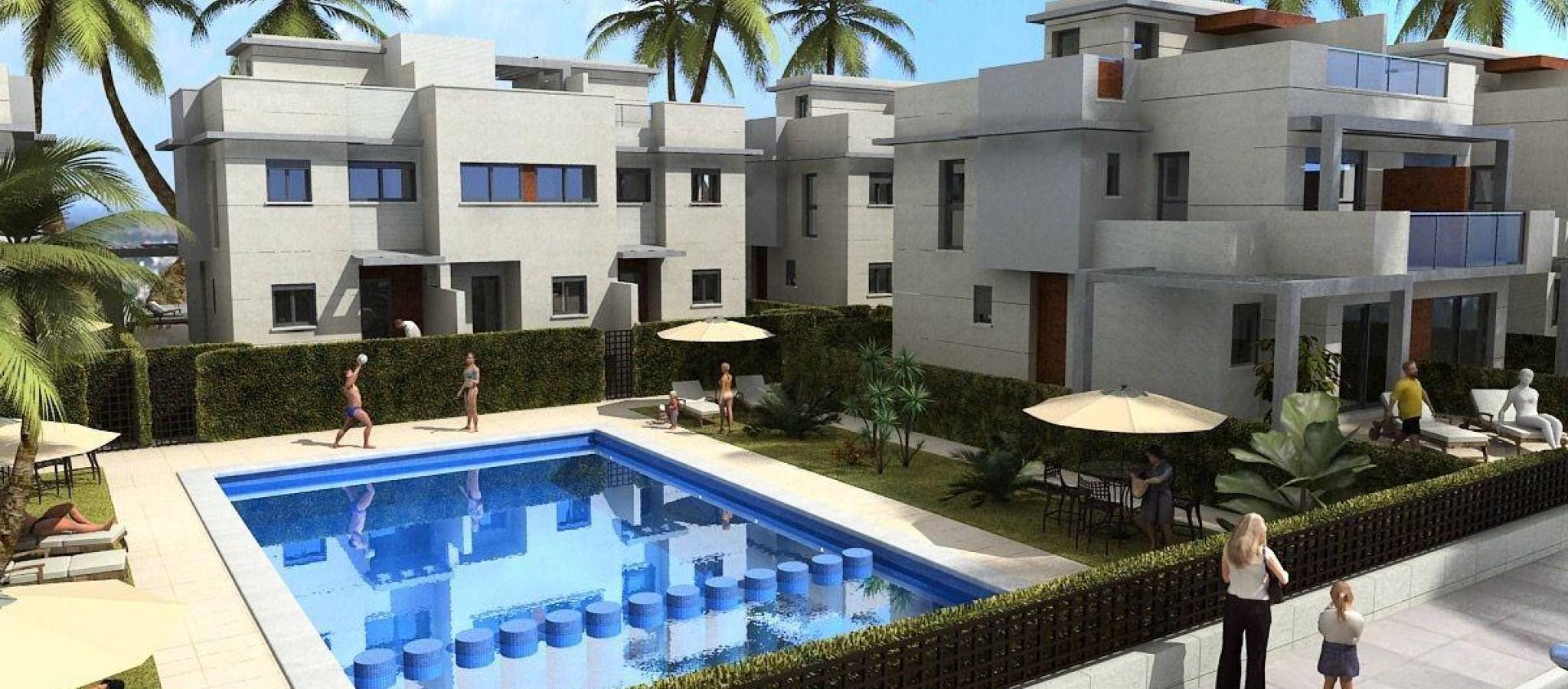 Modern Semi Detached Villas with Sea Views in Puerto de Mazarron Exclusive New Homes Near the Beach Discover these fantastic new build semi detached villas located in the sought after area of Mar de Plata, El Alamillo, in Puerto de Mazarron. Set just 350 meters from the beach, these modern homes enjoy beautiful sea views from their private solariums, offering a unique opportunity to embrace the Mediterranean lifestyle on the Costa Calida. The neighborhood is quiet, residential and well established, ideal for year round living or as a holiday retreat. Spacious Layout with Private Solarium Each villa offers a built area of 101 sqm on a corner plot of 126 sqm, distributed over two floors plus a solarium. On the ground floor you will find a bright living room, an independent kitchen with access to the rear of the plot, one double bedroom and one full bathroom. The first floor features two bedrooms, one with access to two terraces with open views, and the other with an ensuite bathroom, plus an additional family bathroom. The top floor is dedicated to a private solarium of 31 sqm with stunning sea views, perfect for sunbathing, outdoor dining or relaxing with friends. Outdoor Space and Community Pool The exterior includes a corner plot with space for private parking on the side and a laundry area at the rear. The residential complex also offers a communal swimming pool, creating a pleasant environment for families and residents to enjoy leisure time in a secure and friendly setting. High Quality Specifications These homes are built with quality materials and include a reinforced entrance door, pre installation for ducted air conditioning, bathrooms with furniture, mirrors and shower screens, hot water system powered by aerothermal energy, electric blinds in bedrooms and main facade openings, and aluminum exterior carpentry with double glazing. The kitchen is delivered without furniture, allowing buyers to personalize it to their taste. Life in Puerto de Mazarron Puerto de Mazarron is one of the most attractive coastal towns in the Region of Murcia, known for its beautiful beaches, crystal clear waters, charming marina and relaxed atmosphere. The area offers excellent services, shops, restaurants, schools, medical centers and outdoor leisure options. Nearby natural spaces such as the Sierra de las Moreras are perfect for hiking and cycling, while water sports enthusiasts can enjoy sailing, diving and kayaking. Distances to Points of Interest Playa Negra 0.35 km Mazarron Marina 2 km Mazarron Park Shopping Center 5 km Camposol Golf 25 km Hacienda del Alamo Golf 35 km Cartagena 35 km Murcia City 70 km Murcia Corvera Airport 45 km Your Coastal Home Awaits These new build semi detached villas in Puerto de Mazarron combine sea views, modern design and an unbeatable location close to the beach and all services. Contact us today for more information or to arrange your private viewing.