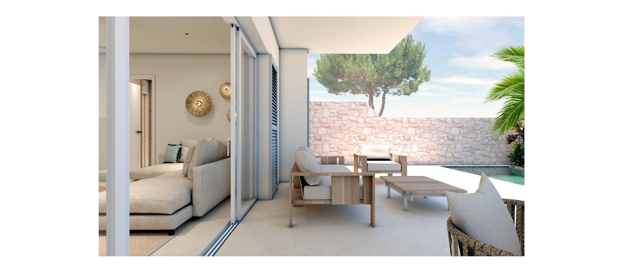 NEW BUILD RESIDENTIAL COMPLEX IN TORRE DE LA HORADADA New Build residential complex of bungalow apartments in Torre de la Horadada only 450m from the beach. All properties has 3 bedrooms, 2 bathrooms, open plan kitchen with the lounge area, fitted wardrobes and terrace. Beautiful bungalows on the ground floor has private garden with the pool, bungalow on the top floor has private solarium with the pool. All properties has private parking. Torre de la Horadada is located south of Alicante in a beautiful location on the coast. The beautiful beaches of Torre de la Horadada and Mil Palmeras have fine sand beautiful promenade. There are lots of restaurants, bars and shops, also water sports, diving and snorkelling. It is well connected just 40 minutes from Alicante and Murcias Corvera airports, with large commercial shopping centres and multiple golf courses all within easy reach.