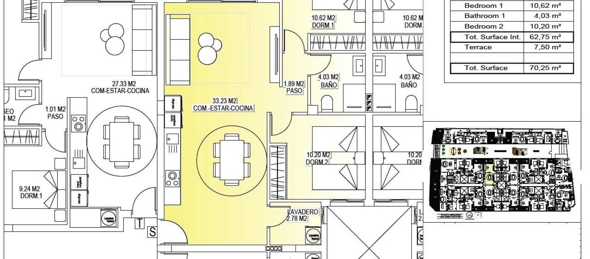 Modern New Build Apartments in the Center of San Miguel de Salinas Contemporary Living in a Healthy Mediterranean Environment Located in the charming town of San Miguel de Salinas, just 10 km from the Mediterranean Sea, this new residential development offers the perfect balance between modern comfort and natural surroundings. The area is well known for its nearby salt lakes and exceptional microclimate, considered one of the healthiest in Europe. This peaceful yet vibrant town allows residents to enjoy the authentic Mediterranean lifestyle while being within walking distance of shops, restaurants, supermarkets and all essential services. San Miguel de Salinas sits slightly inland on the Costa Blanca South, offering open views, fresh air and easy access to beaches, golf courses and shopping areas. Stylish Apartments Designed for Comfort and Efficiency The project consists of two modern buildings separated by a landscaped communal garden area. A total of 56 contemporary apartments are available with 1, 2 or 3 bedrooms, each featuring a private terrace. Every home has been designed with comfort, aesthetics and energy efficiency in mind, using high quality materials and modern insulation systems. Each apartment includes: Armored entrance door Bathrooms with vanity units Pre installation of ducted air conditioning Energy certificate rating A The layout and orientation of the homes ensure natural light throughout the day, creating bright and welcoming interiors ideal for both permanent living and holiday use. Exceptional Communal Areas for Relaxation and Social Life The ground floor communal space is designed as the social heart of the development, surrounded by landscaped gardens, seating areas, bicycle parking and a children’s playground. It is an ideal meeting point for residents of all ages. On the rooftop, an impressive 350 m2 leisure area awaits. This space includes a 70 m2 swimming pool with a separate children’s splash area, pergolas, sun loungers and shaded areas, allowing residents to relax while enjoying panoramic views. The rooftop is easily accessible by one of the three lifts and includes sanitary facilities for added comfort. Excellent Location Close to Key Points of Interest Mediterranean beaches 10 km Zenia Boulevard Shopping Center 9 km Villamartin Golf 6 km Las Colinas Golf 8 km Torrevieja Marina 12 km Alicante Airport 60 km Murcia Corvera Airport 55 km A Smart Investment in Costa Blanca South This residential complex combines modern architecture, quality finishes and a prime central location, making it an excellent choice for living, holiday enjoyment or rental investment. Contact us today for more information or to arrange a visit to these modern apartments in San Miguel de Salinas.