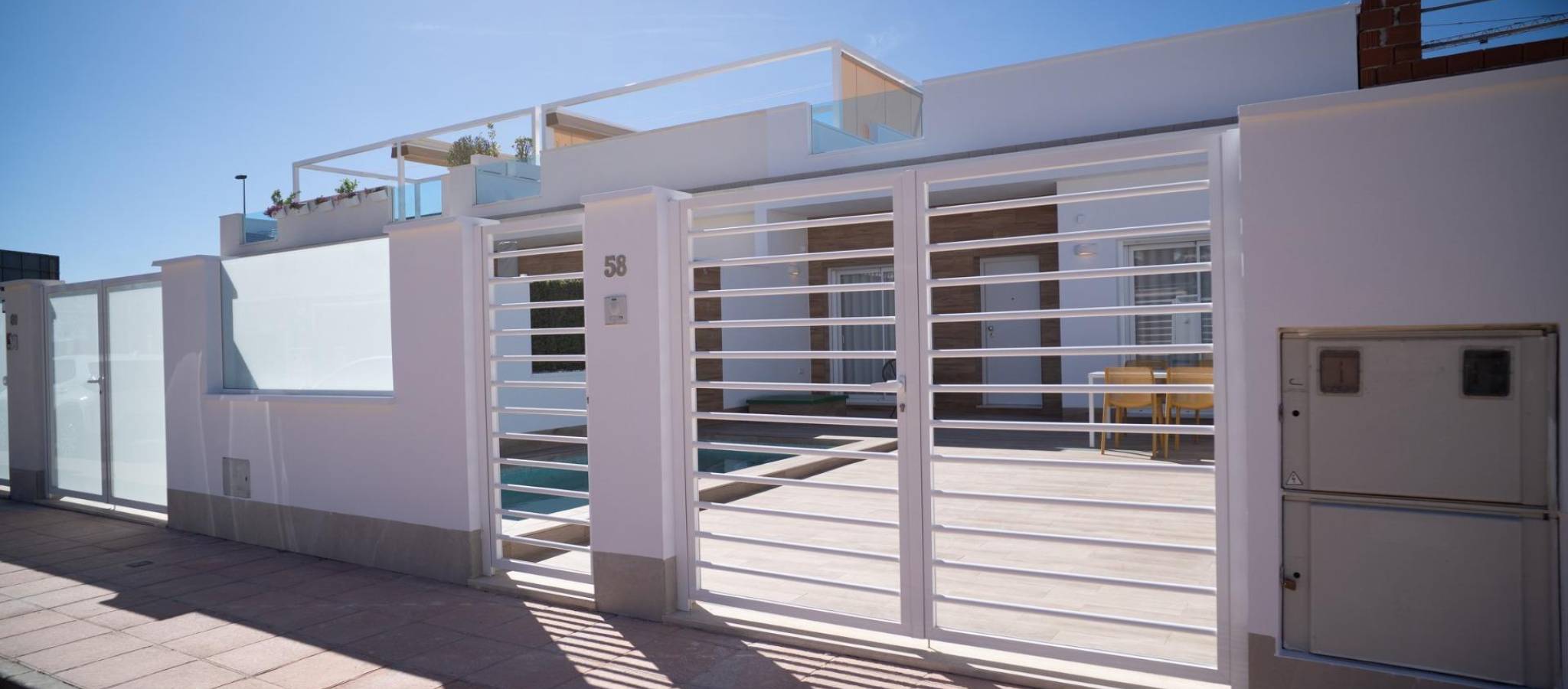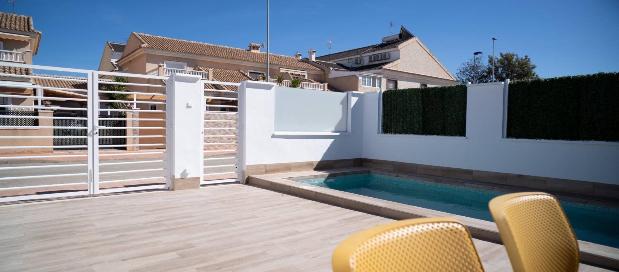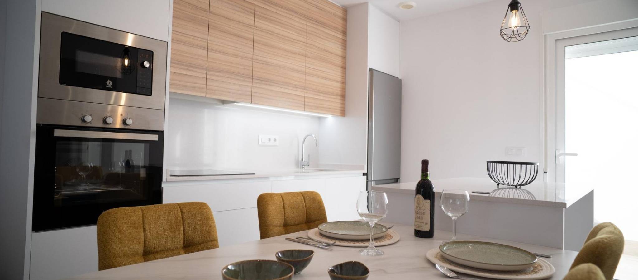 NEW BUILD TOWNHOUSES IN SAN JAVIER New Build luxury complex of 24 one level villas or on 2 floors with private pool, terraced area and solarium with Summer kitchen that allows you to enjoy all hours of sunshine, every day of the year. Each villa has 2 or 3 bedrooms and 2 fitted bathrooms on one level or 3 bedrooms and 3 fitted bathrooms on two levels. Designed with a contemporary style and open planned concept, comprising a fully-fitted kitchen and lounge-dining room. The development is located in San Javier (Murcia), near the beach, surrounded by services, parks, sports facilities and several Golf Courses. The property will meet the highest standards and will be equipped with: Private swimming pool with shower. Kitchen completely furnished and equipped with oven, microwave, fridge, integrated dishwasher, hob and extractor fan. Lighting: inside the property (dining room, kitchen, corridors and bathrooms) as well as in outdoor areas. Lined wardrobes with drawers. Fully fitted bathrooms with toilet, vanity unit, mirror and shower with screen panels. Pre-installation for ducted air conditioning. Solarium with Summer kitchen. Parking space on the plot. San Javier is close to all amenities with easy access to the beach, water sports, shops and the transport network. Here you can enjoy all of the facilities that San Javier has to offer such as the local shops, bars and restaurants as well as being near to shopping centres, the airport of Murcia and all of the beautiful places to be found along the Mar Menor. Corvera/Murcia airport is 30 minutes away and Alicante airport is 45 minutes away.