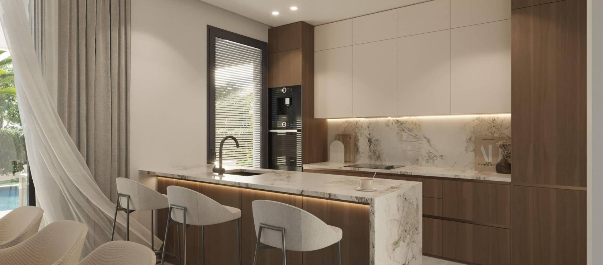New Villas in Finestrat - Luxury, Nature and Sea Views Exclusive Residential in Sierra Cortina, Benidorm-Finestrat Discover this new luxury residential development in Sierra Cortina, Finestrat, one of the most exclusive areas of the Costa Blanca. This development offers 30 villas of avant-garde design, with options of semi-detached and detached villas, all of them with spectacular sea and mountain views. Located in a peaceful setting, yet close to all amenities, this development is ideal for those seeking privacy, comfort and access to Benidorm's best beaches and services. Modern Design and Spacious Living The villas have been designed in a contemporary style, optimising natural light and panoramic views. You will be able to choose from various models with options from 2 to 4 bedrooms, and some designs include basement with English patio, allowing the possibility of adding additional bedrooms. Each home features: 2 floors with private terraces with sea views. Private swimming pool and garden for your enjoyment. Garage on the plot, with space for your vehicle. Open concept kitchen integrated into the living room. Fitted wardrobes and storage space. Utility room for convenience. Privileged location on the Costa Blanca This exclusive residential is located in Sierra Cortina, one of the most prestigious areas of the Costa Blanca, surrounded by nature and with access to first class services. Only 3 km from the sea, this development is located next to two golf courses and close to the Terra Mitica theme park and the luxury hotel Asia Gardens. It also has fast connections to the main roads and airports in the region. Distances to Main Points of Interest Benidorm Beaches - 3 km. Villaitana and Sierra Cortina Golf Courses - 2 km. La Marina Shopping Centre - 2 km. Terra Mitica Theme Park - 1.5 km. Alicante Airport - 40 km. Live in an Exclusive Area with All Amenities Finestrat is a charming municipality in the Marina Baixa, located just a few minutes from Benidorm. Its combination of mountain and sea, together with its modern infrastructure, make it an unbeatable location to live or invest. Don't miss the opportunity to acquire a brand new villa in this privileged location. Contact us today for more information and to arrange a viewing.