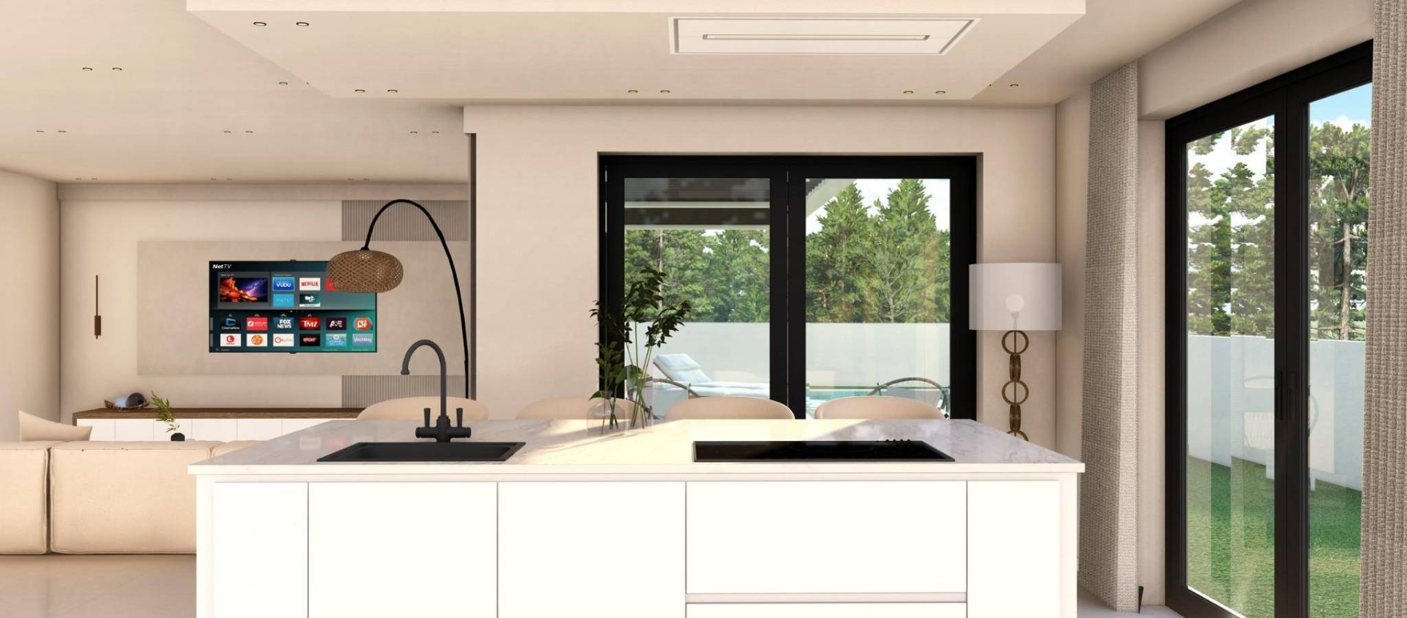 Luxury New Build Villas with in Finestrat near Benidorm Exclusive Collection of Sustainable Independent Villas This prestigious development features 36 independent villas in the sought after Bahia Golf urbanization in Finestrat, just 3.5 km from the Mediterranean coast. Designed to combine luxury, comfort and sustainability, these modern homes offer an exceptional lifestyle on the Costa Blanca, surrounded by nature yet close to all services. Each villa offers 3 or 4 spacious bedrooms, private landscaped gardens and a private infinity pool. Selected units enjoy stunning sea views, while all properties are positioned on generous plots of more than 500 m2 with built areas starting from 222 m2. Flexible Layouts with Basement and Rooftop Solarium Buyers can choose from four different layouts, all carefully designed to maximize space and natural light. Every villa includes a basement level with private parking, storage room, laundry area and two bedrooms with en suite bathrooms connected to an English patio for natural light and ventilation. The ground floor features one or two additional en suite bedrooms, a guest toilet and an open plan kitchen connected to the living and dining area, with direct access to the terrace and pool. A rooftop solarium crowns each property, offering panoramic mountain or sea views and the option to install a jacuzzi. High Quality Finishes and BREEAM Energy Efficiency These villas are built according to BREEAM certification standards, ensuring excellent energy performance and environmental responsibility. Premium specifications include: Double glazed aluminium windows with thermal break and electric shutters Fully installed ducted air conditioning Motorized vehicle access gate Private swimming pool and landscaped garden Modern kitchen by PORCELANOSA equipped with appliances Designer bathrooms with furniture, mirrors and walk in showers Porcelain tiles by PORCELANOSA Prime Location Close to Beaches, Golf and Shopping Finestrat is a charming town located between the mountains and the sea, offering tranquility while being just minutes from vibrant Benidorm. The area combines natural beauty with excellent infrastructure, international schools, restaurants and shopping centers. Distances to Key Points of Interest Benidorm beaches 3.5 km La Marina Shopping Centre 1 km Puig Campana Golf 3 km Benidorm Old Town 4 km Alicante Airport 55 km Access to A7 motorway 2 km Live the Mediterranean Dream in Finestrat These villas offer the perfect balance between luxury, nature and connectivity on the Costa Blanca. Contact us today to receive more information or to arrange a private viewing of these exceptional new build homes in Finestrat.