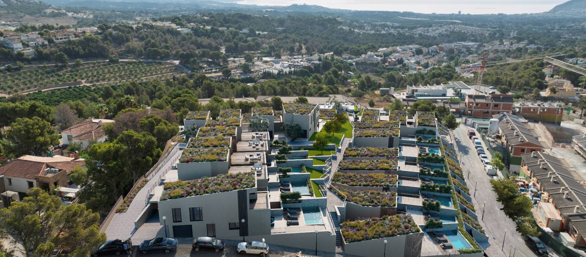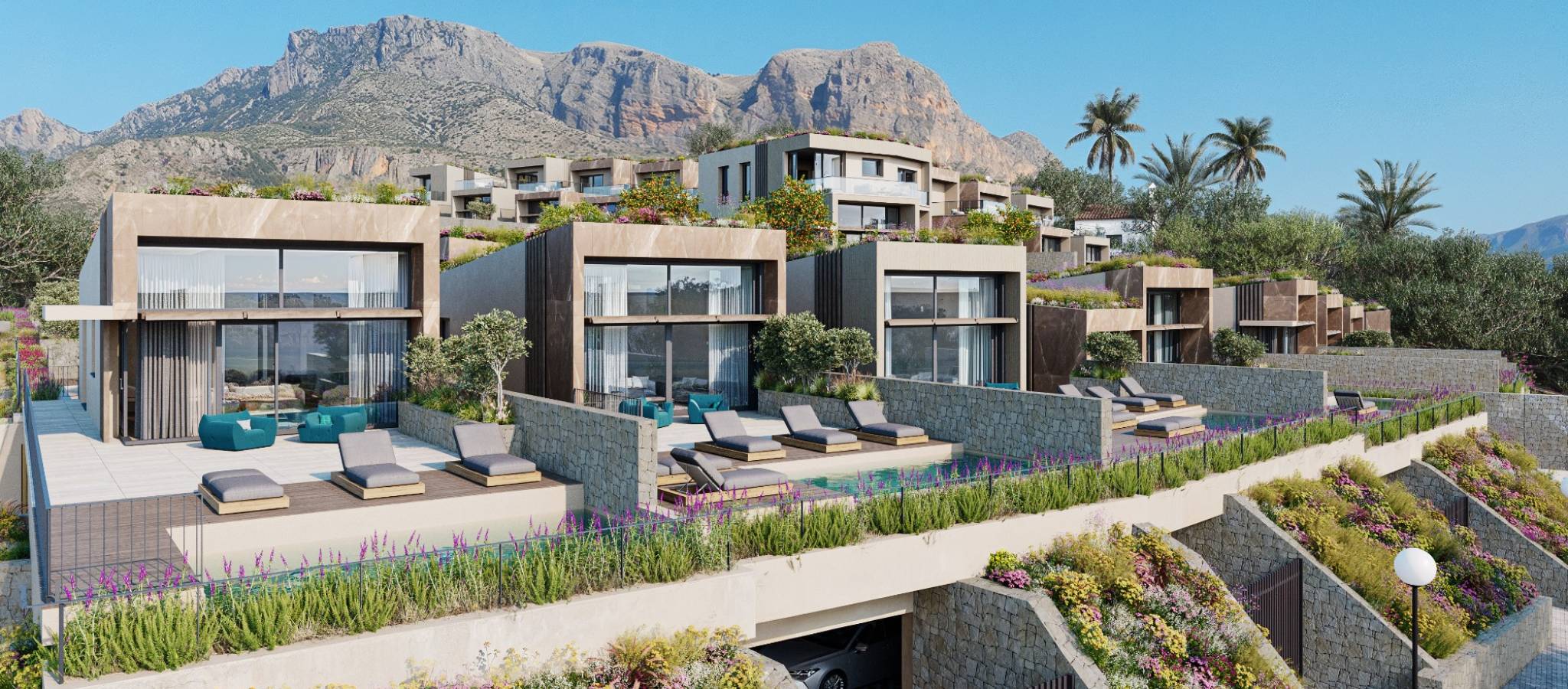 An exclusive residential development of 24 contemporary detached villas located in La Nucía on the Costa Blanca, offering high-end family homes with modern design, private pools and Mediterranean sea views.