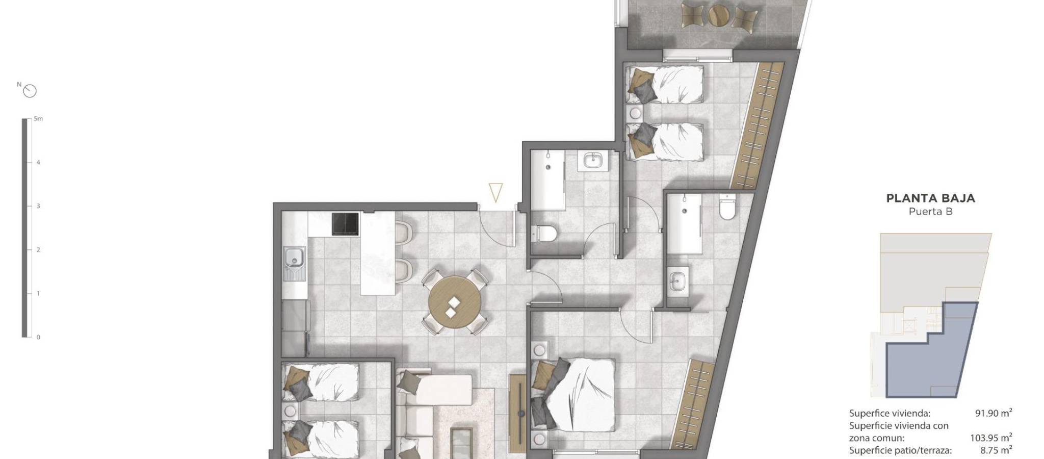 New Development Apartments in Central Guardamar del Segura, Costa Blanca Prime Location Near the Beach Discover this exceptional new-build residential complex located in the heart of Guardamar del Segura, a charming coastal town renowned for its natural dunes, pine forests, and golden sandy beaches. Ideally situated just 1 km from the beach and within walking distance to shops, restaurants, supermarkets, and leisure services, this project offers the perfect balance of convenience and Mediterranean lifestyle. Stylish Homes Designed for Comfort This modern development consists of 2 and 3-bedroom apartments with 2 bathrooms (including one en-suite). Buyers can choose between ground-floor units with terrace and patio, middle-floor apartments with terrace, or penthouses with private solarium, ideal for enjoying the sun and sea breeze year-round. Each property includes an open-plan kitchen integrated with a spacious living room, fitted wardrobes, and a private rooftop storage room. Optional parking spaces on the ground floor are available for added convenience. Premium Qualities and Energy Efficiency Designed to offer modern comfort and efficiency, the homes include high-quality finishes: Fully equipped bathrooms with vanity unit, mirror, and screens Security reinforced entrance door Aerothermal hot-water system Double-glazed windows with thermal break Elevator with access to all floors Beautiful Communal Spaces The complex features attractive green areas, a community swimming pool, and a communal rooftop solarium, providing residents with relaxing outdoor spaces in the sun. Enjoy the Best of Guardamar Guardamar del Segura offers 11 km of natural beaches, a marina with year-round activities, sports facilities with padel, tennis, football, and an indoor heated pool, as well as parks, markets, and cultural venues. With its laid-back coastal atmosphere and full range of services, it is an ideal location for both permanent living and holiday escapes. Key distances: Beach: 1 km Alicante-Elche Airport: 20 km La Marquesa Golf: 8 km Torrevieja Marina: 14 km Guardamar Marina: 2 km Secure Your New Home in the Costa Blanca Don’t miss the opportunity to live in one of the most desirable areas of the Costa Blanca. Contact us today to schedule a visit and discover your future home in Guardamar del Segura.