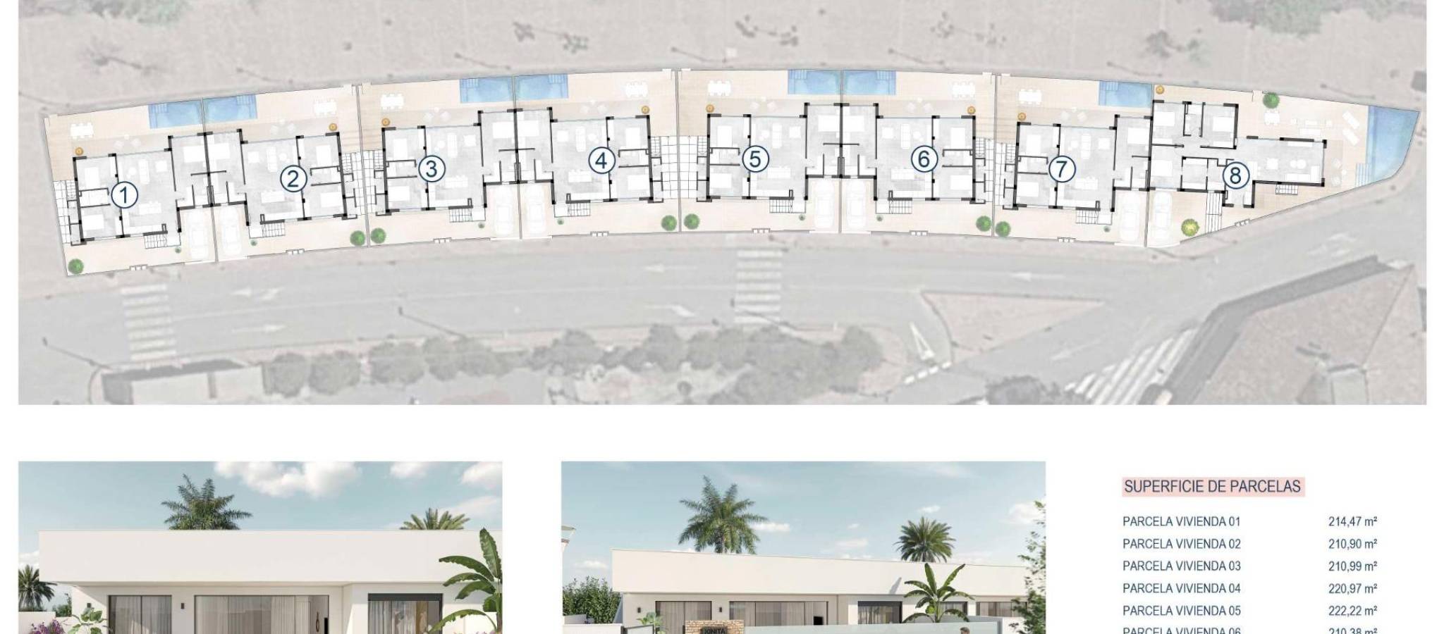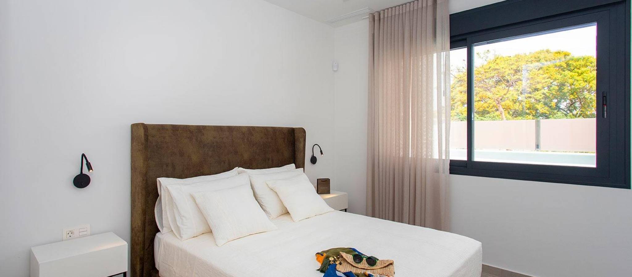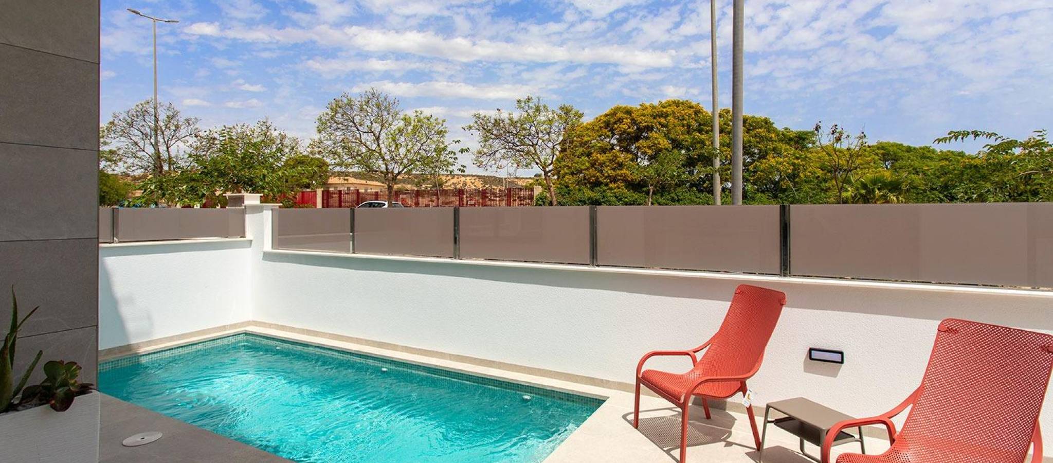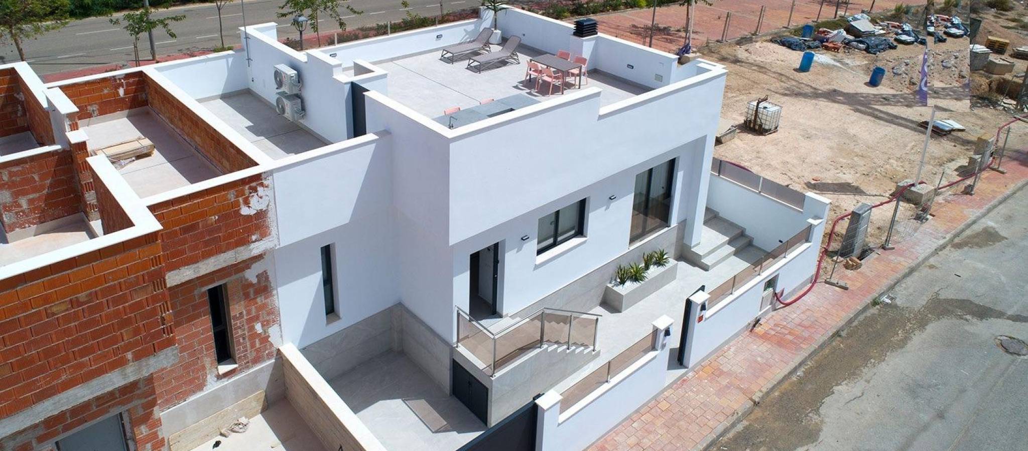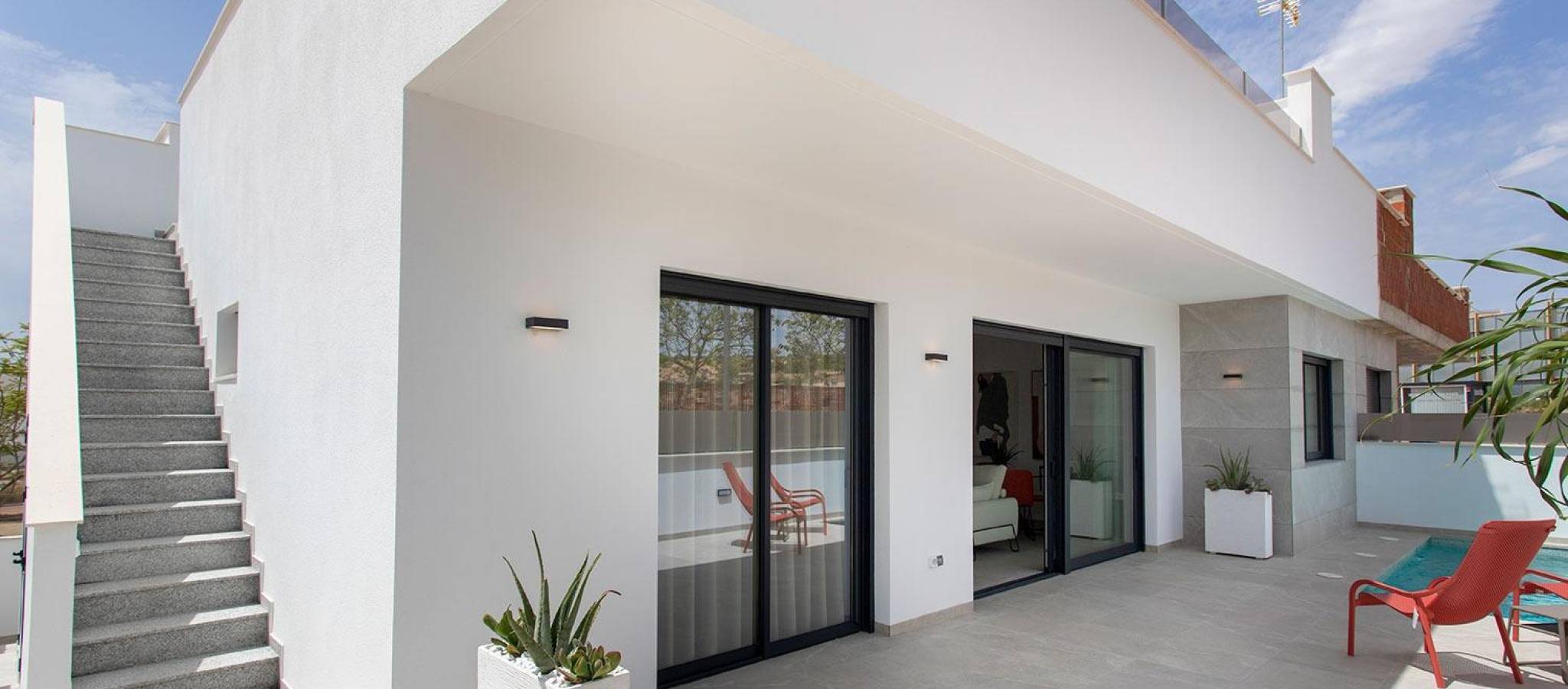 New Build Semi Detached Villas in Sucina: last unit Fully Equipped and Ready to Move In Exceptional Opportunity in Sucina This is your chance to secure the last available unit in this modern new build development, previously used as the show home. It is key ready and delivered fully equipped with furniture, appliances, interior and exterior lighting, air conditioning, electric car charger and an outdoor summer kitchen with fridge. A unique turnkey opportunity in one of the most charming towns of the Costa Calida. Contemporary Design Focused on Light and Comfort These semi detached villas stand out for their elegant and pure contemporary design, with layouts created to maximize natural Mediterranean light. The main living areas feature an open plan concept where the kitchen and living room merge seamlessly, connected by a stylish central island. This space flows directly to the porch and the pool terrace, creating a harmonious indoor outdoor lifestyle ideal for sunny days. Single Level Living With Private Pool and Solarium The villa includes 3 bedrooms and 2 bathrooms on one floor, plus a convenient exterior guest toilet for the pool area. The master bedroom is exceptionally bright and offers an en suite bathroom, walk in wardrobe and direct access to the main terrace. The property also boasts an impressive 82 m2 solarium, perfect for sunbathing or creating an outdoor lounge. Built on a 211 m2 plot, the villa includes off road parking within the plot. Prime Location Close to All Services Located just a short walk from the center of Sucina, the villa provides immediate access to daily amenities such as shops, restaurants and supermarkets. Sucina is a traditional Spanish town that has grown in popularity in recent years due to its relaxed lifestyle, authentic atmosphere and proximity to the coast. The beautiful beaches of the Costa Calida and the Mar Menor are only a few minutes away. Distances to Key Points of Interest Murcia Airport 25 km Alicante Airport 75 km Beaches of the Mar Menor 15 km Nearest Golf Course 4 km Port of San Pedro del Pinatar 20 km Live a High Quality Mediterranean Lifestyle Built with excellent materials and designed for comfort, these villas offer an exceptional opportunity to enjoy open spaces, natural light and pure air all year round. Contact us today to arrange a visit and secure this exclusive key ready home in Sucina.